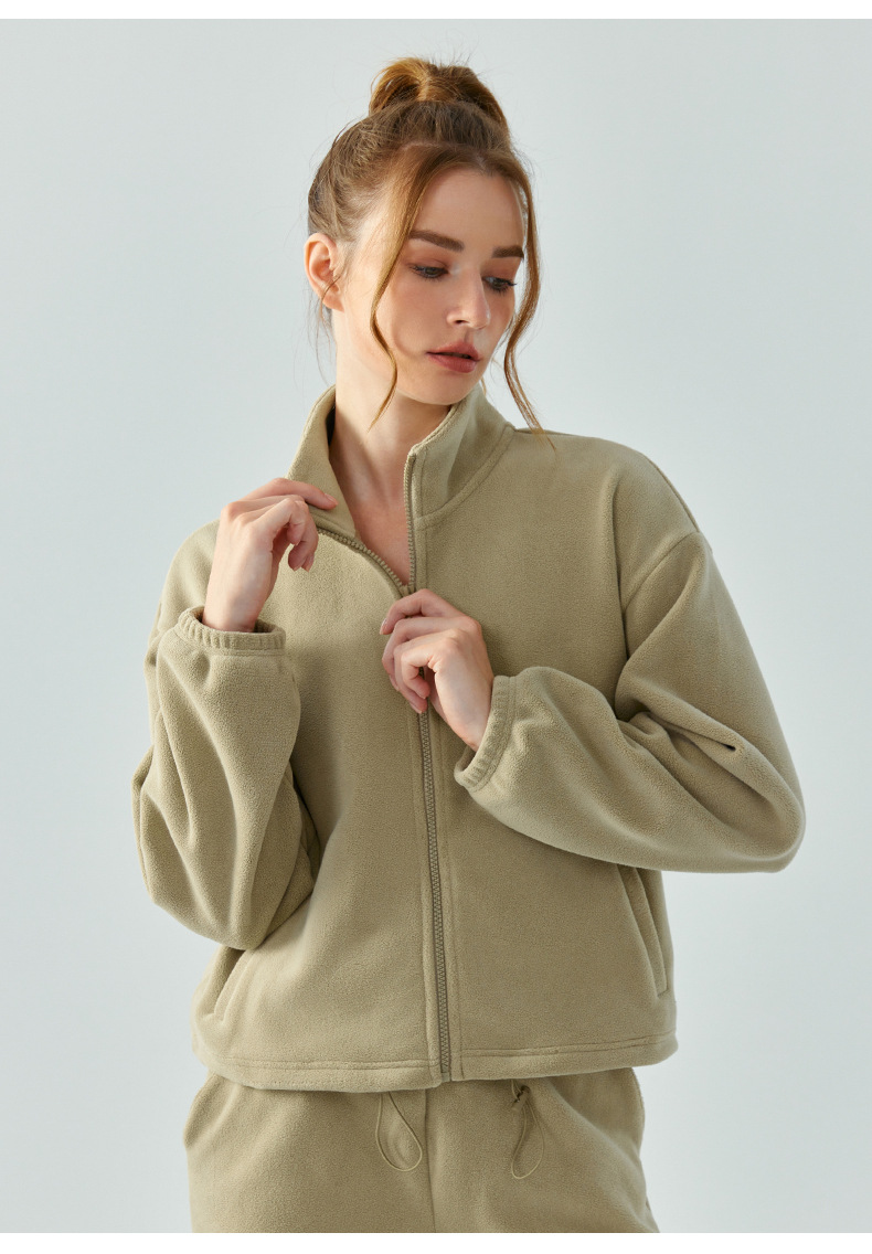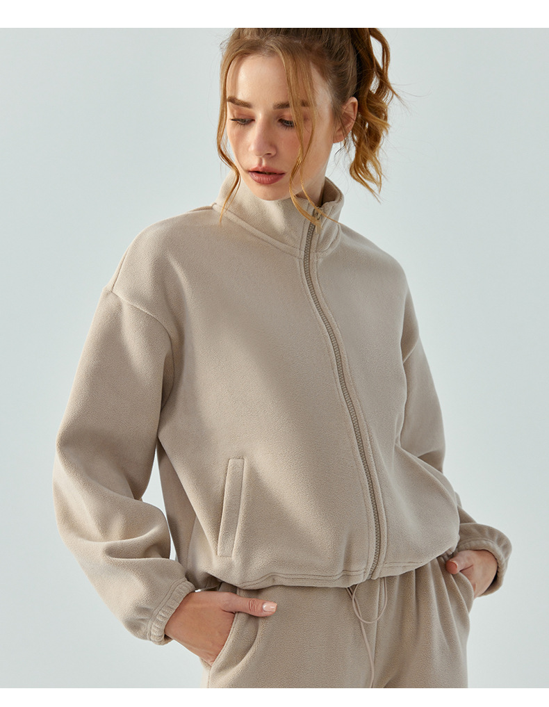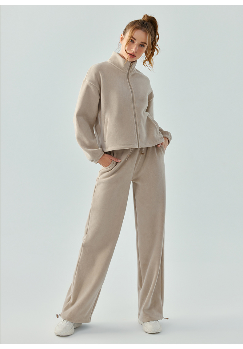 Custom women polar fleece tracksuits zip jackets loose running pants sweatsuits OEM Low MOQ