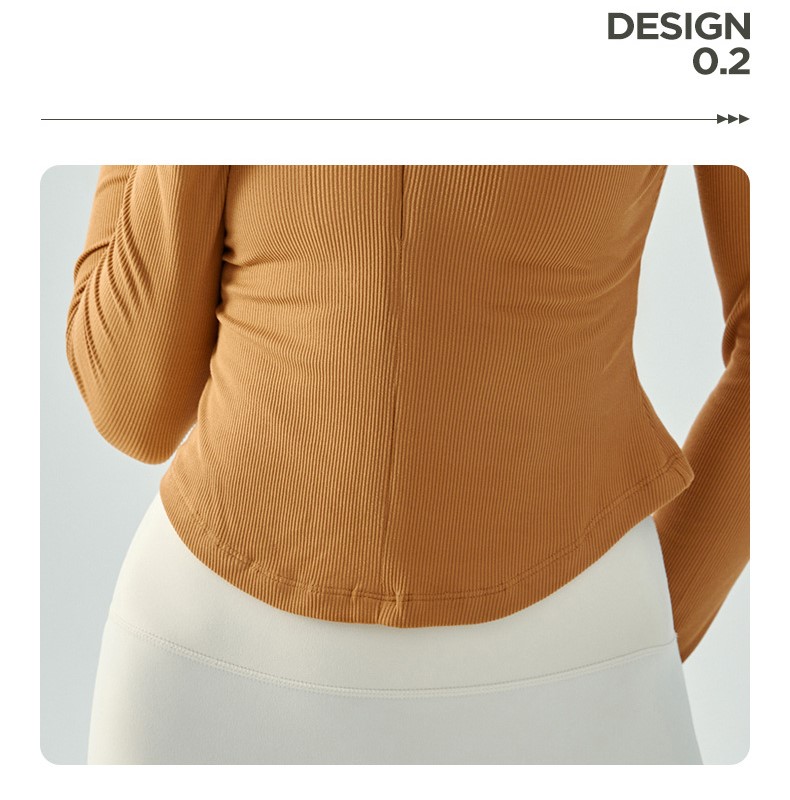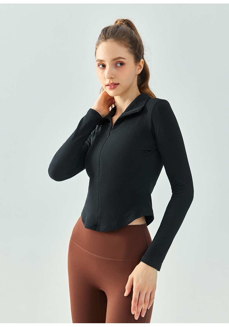 Custom women ribbed stand collar zip jacket slim fit running fitness long sleeve coat Low MOQ