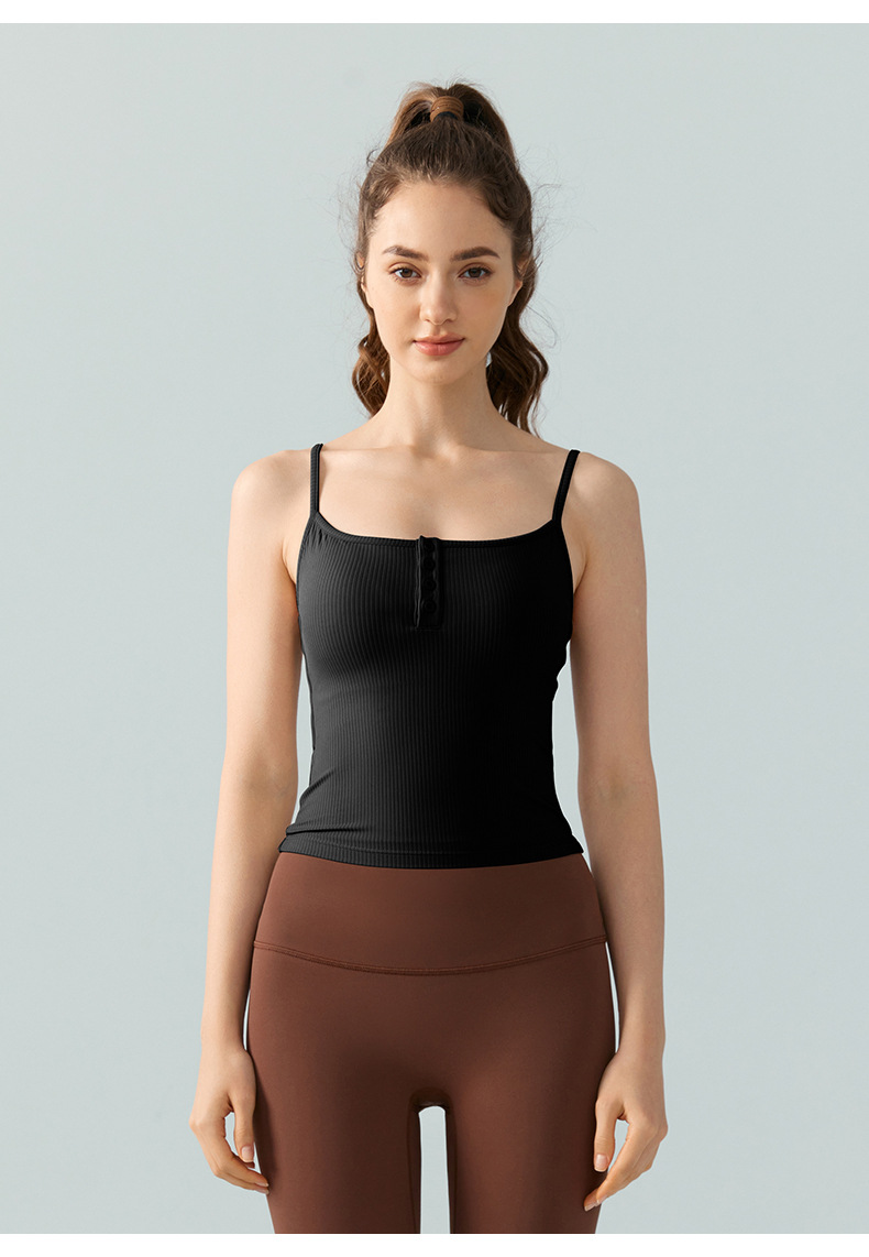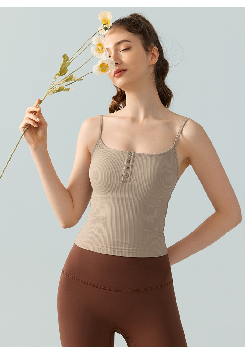 Custom women Spaghetti straps padded tank top button front sex back yoga top Factory OEM