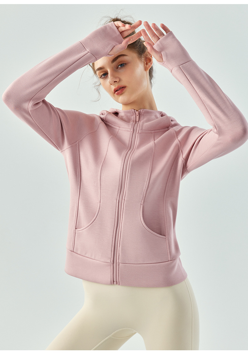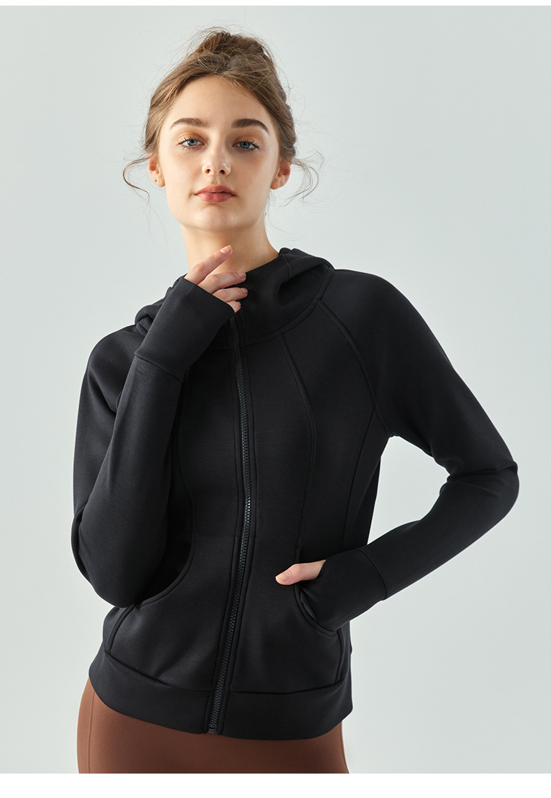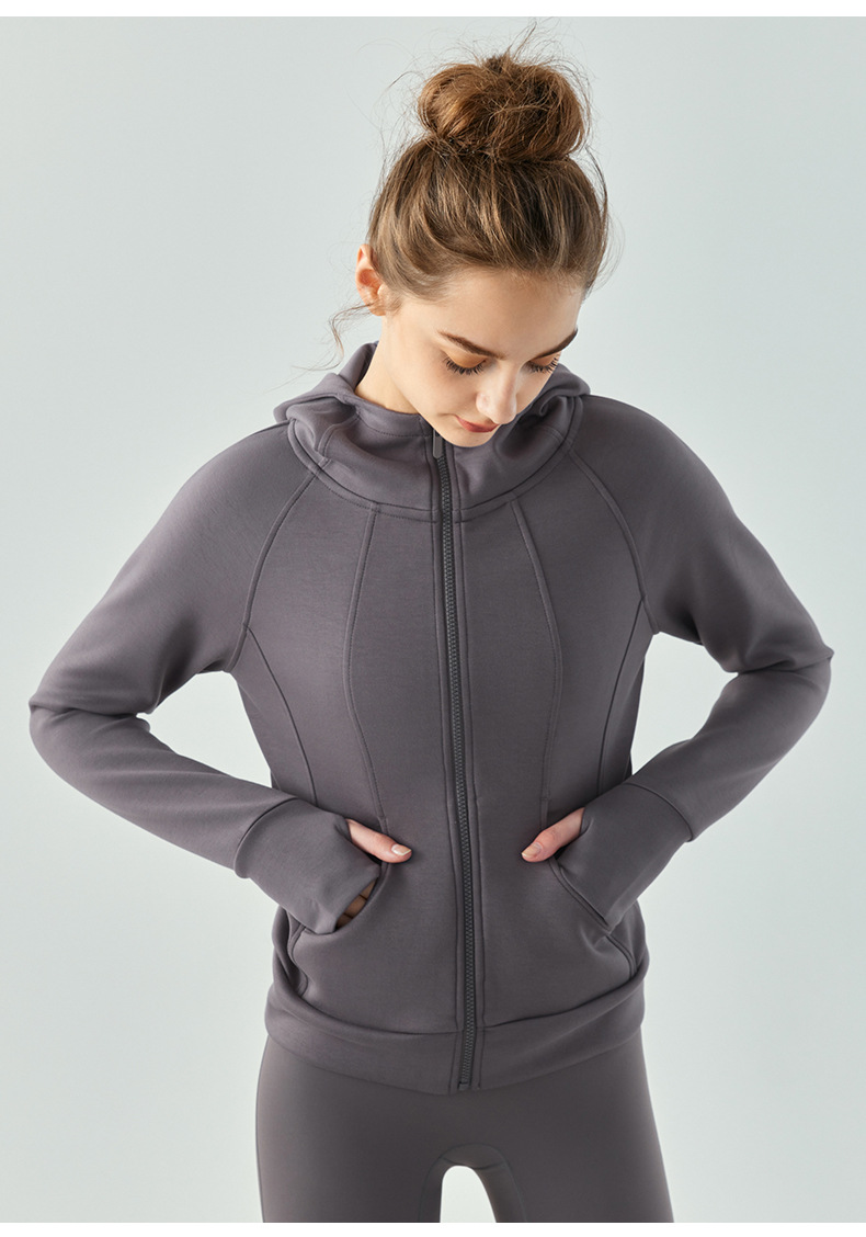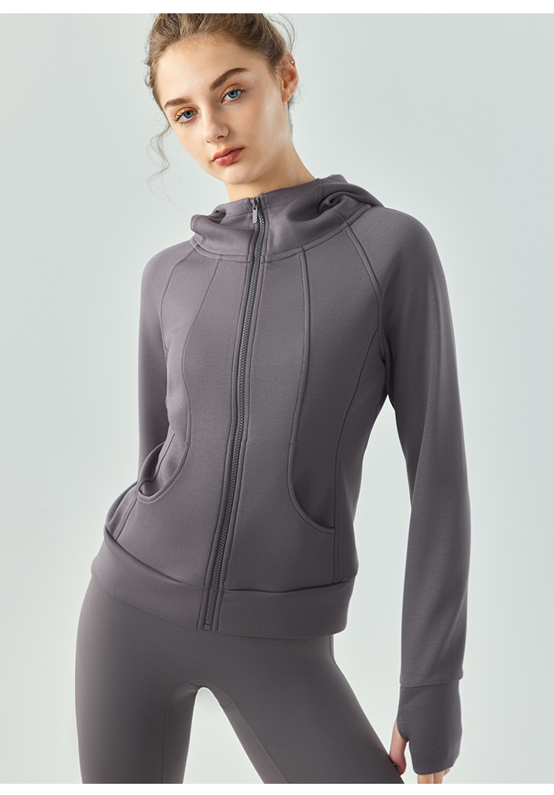 Custom women sports coat winter hooded zip jacket loose running hoodies Factory Low MOQ