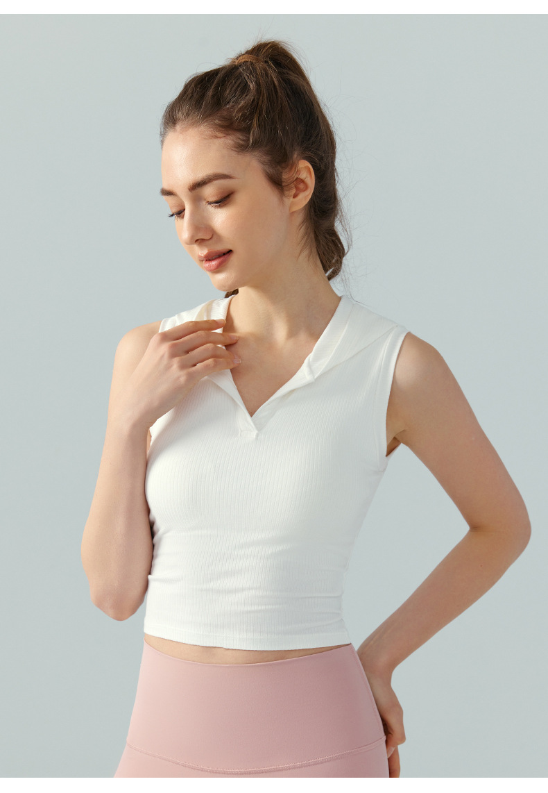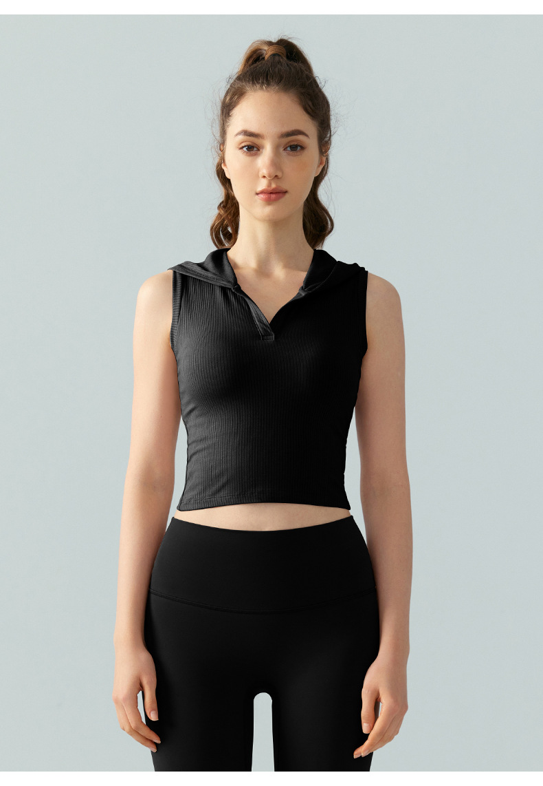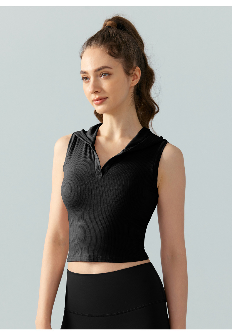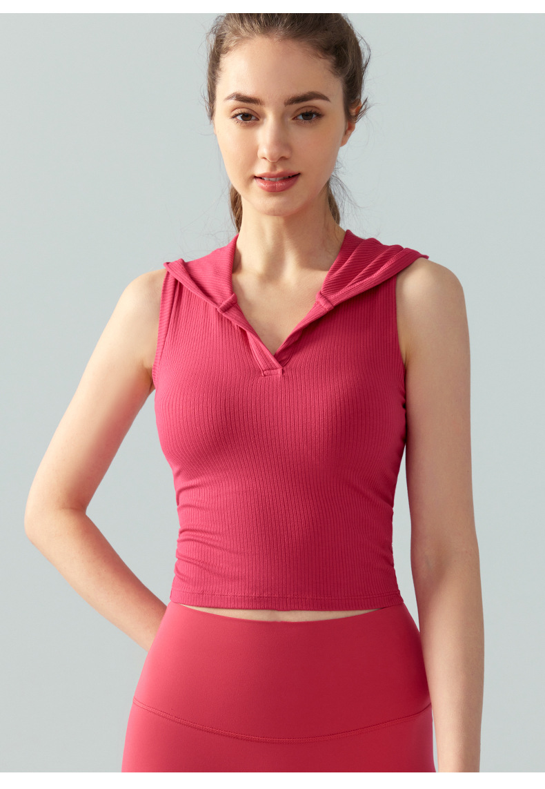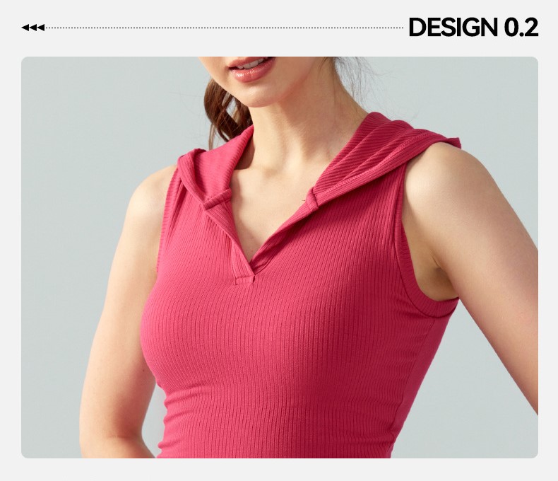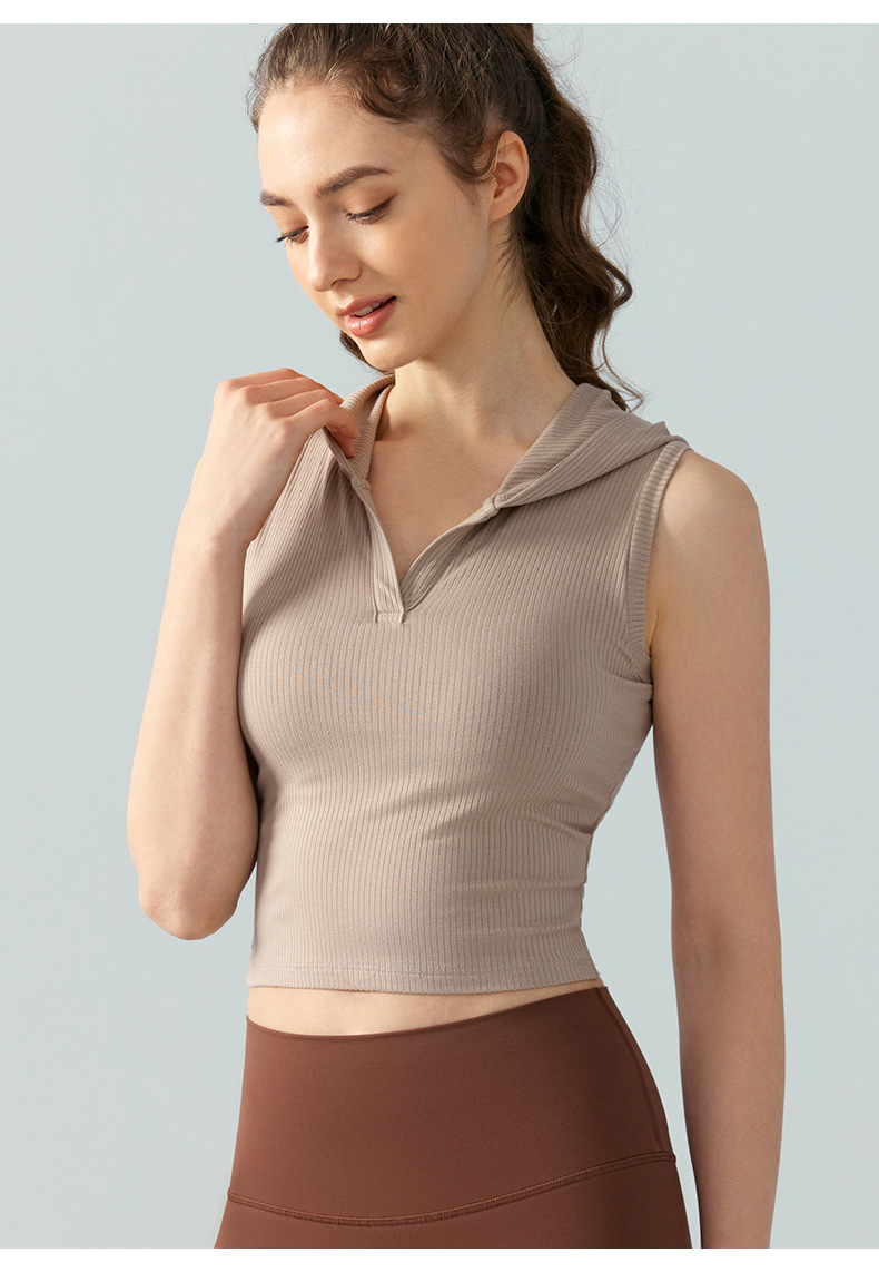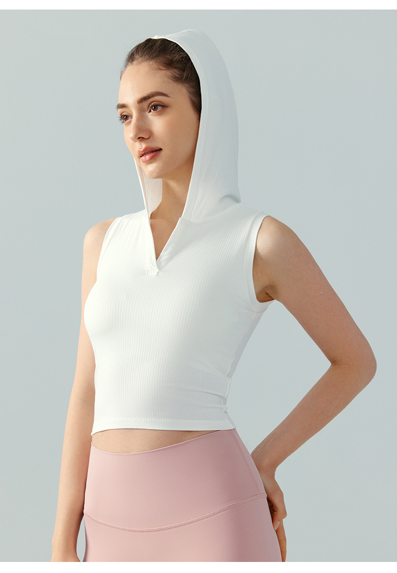 Custom women V neck ribbed hooded crop tank top padded sleeveless hoodies OEM Low MOQ