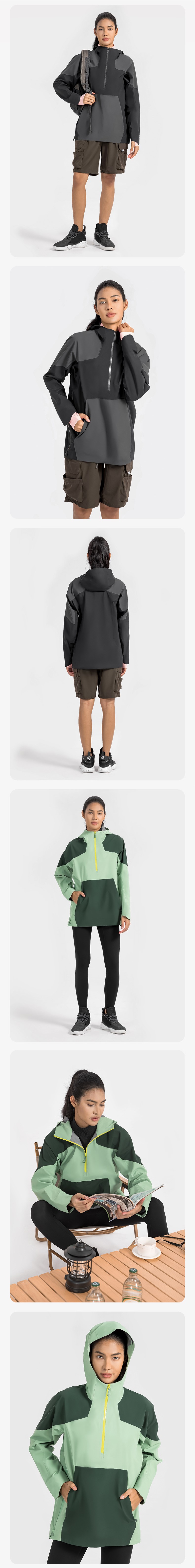 Custom women waterproof windproof breathable hooded half YKK zip softshell outdoor jackets