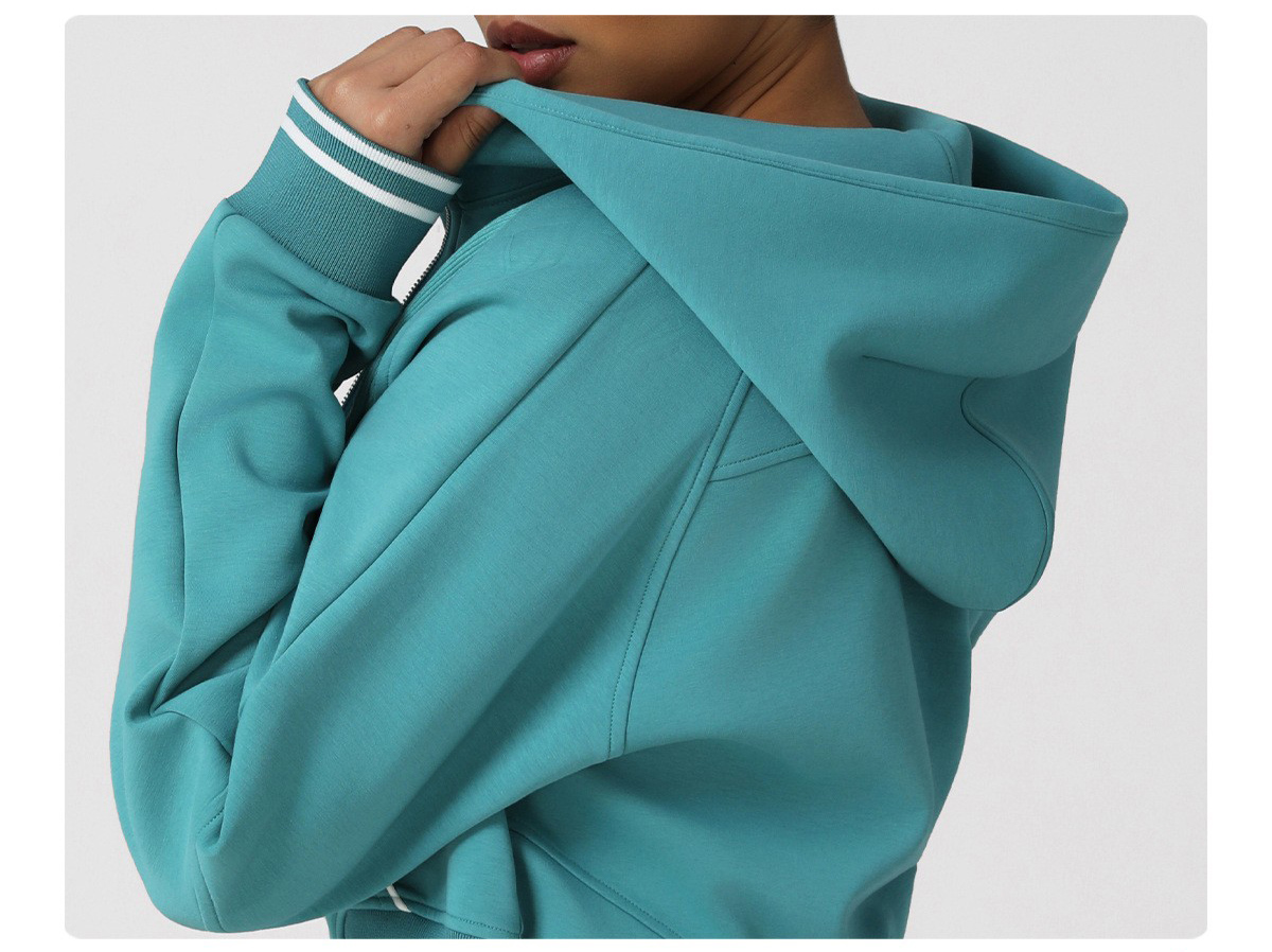 The hooded design adds an extra layer of protection and style, and the adjustable drawstrings can be adjusted according to your needs. The jacket is made of high-quality materials, which are soft, skin-friendly and breathable, ensuring maximum comfort during exercise. Whether you’re doing yoga, running or other fitness activities, this jacket can meet your needs.