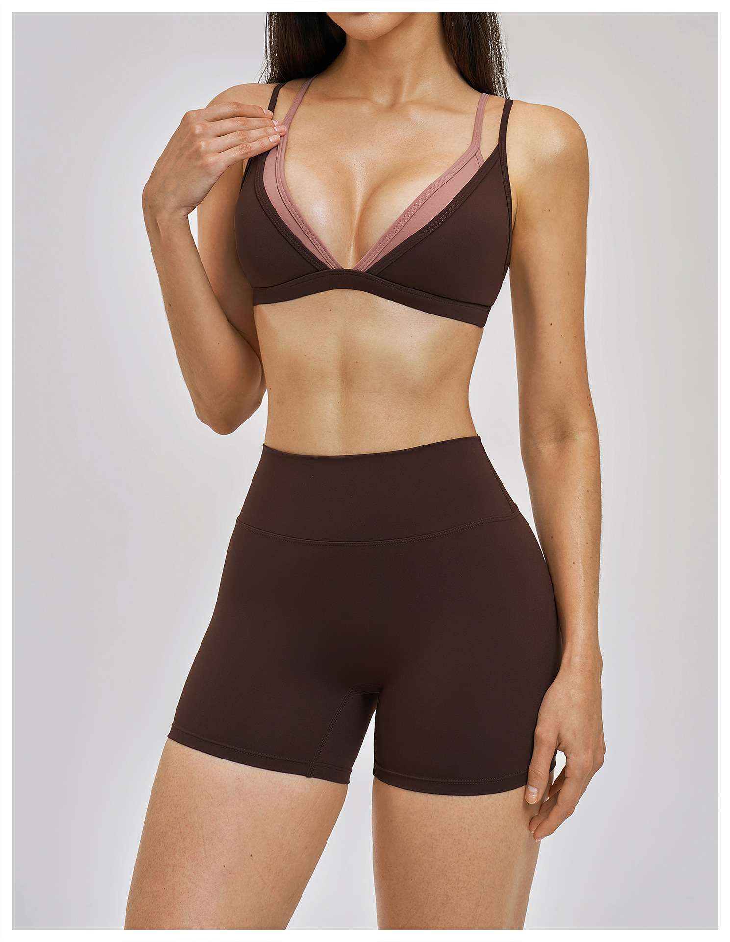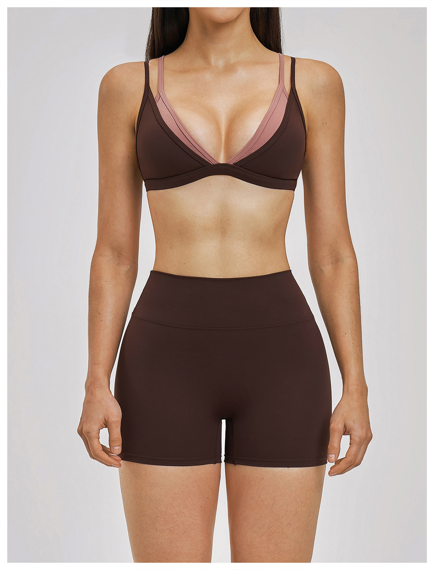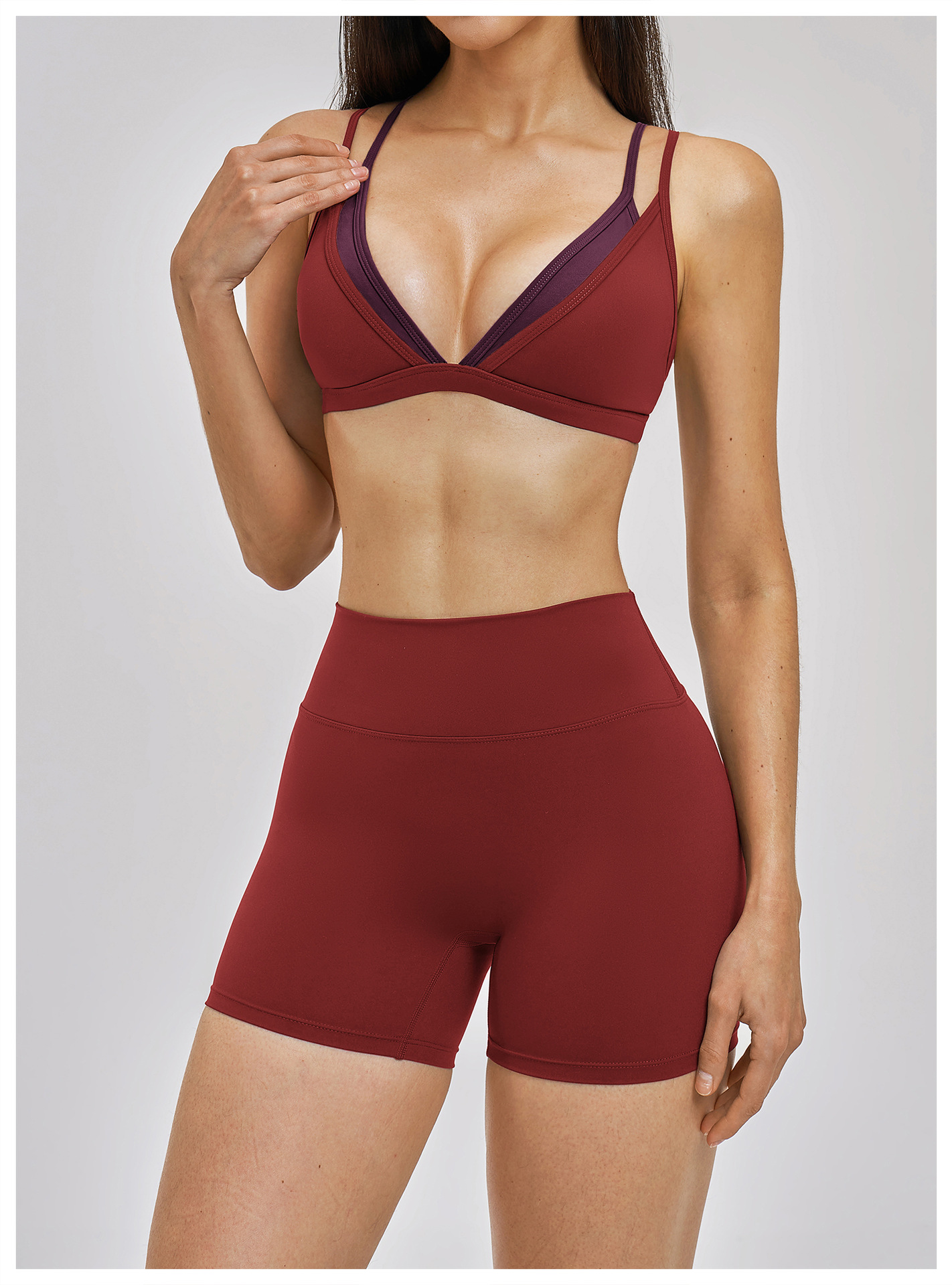 Custom Women’s Color Block Fake Two Yoga Set Crisscross Back Beauty Top Workout Shorts Activewear
