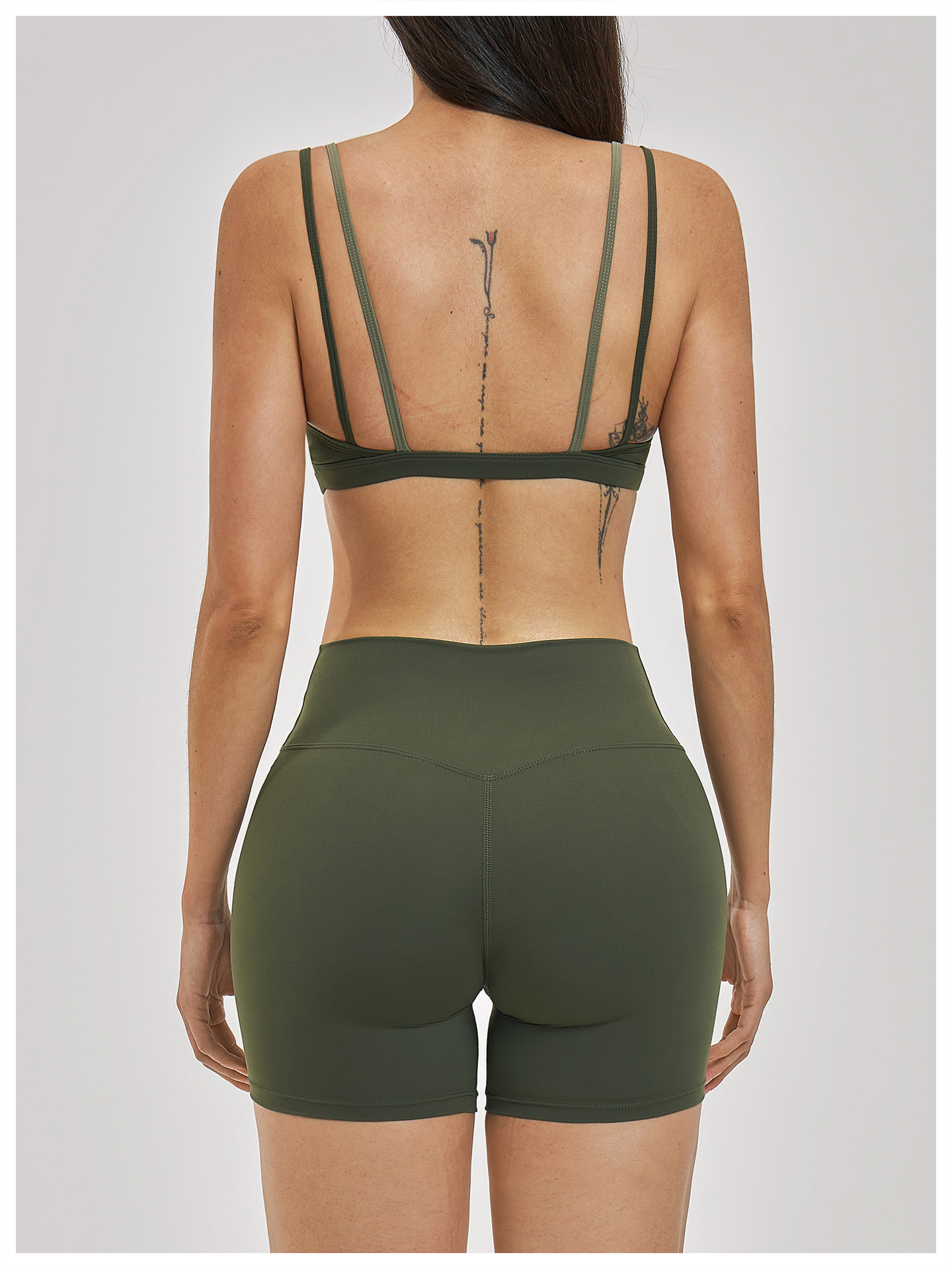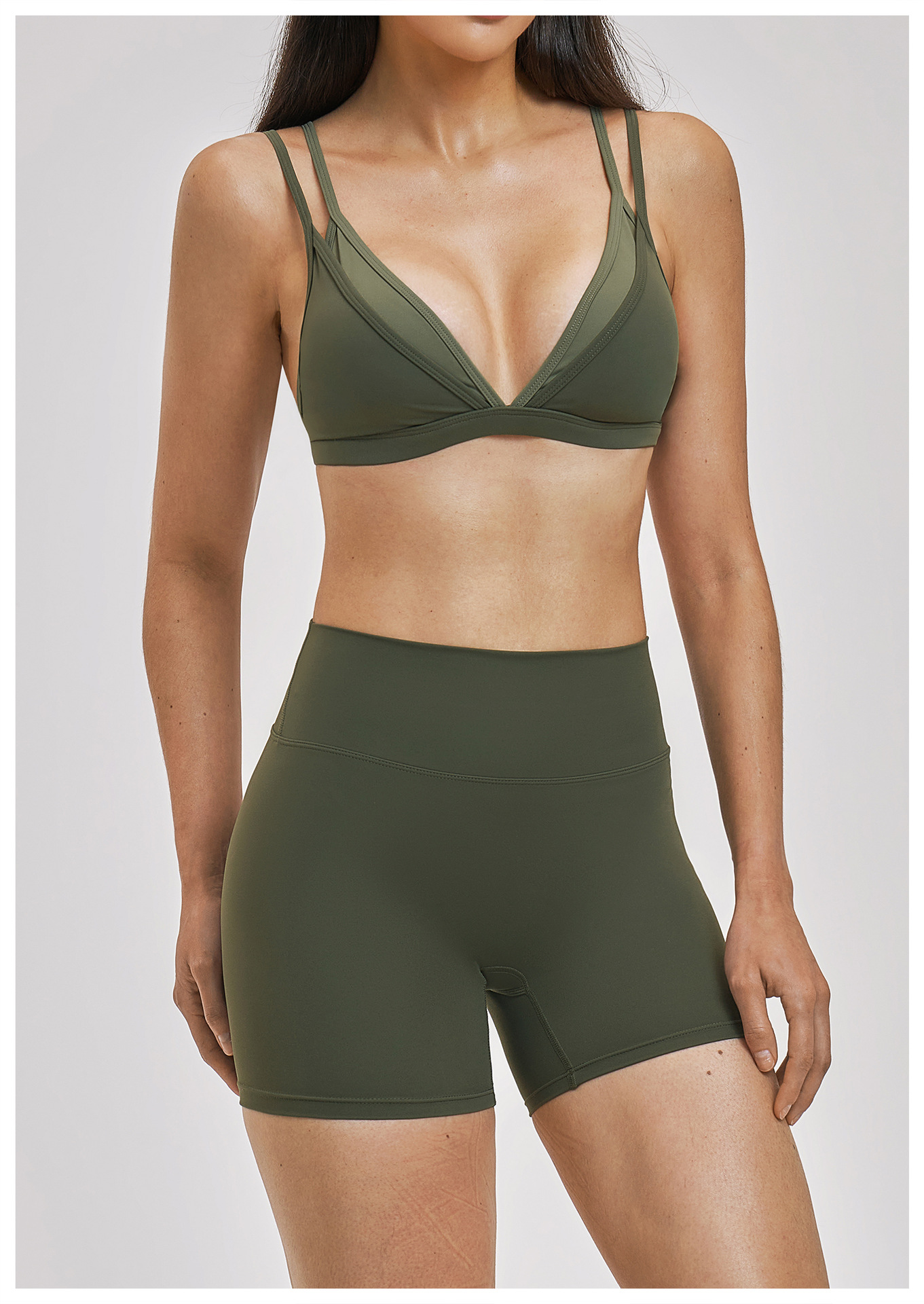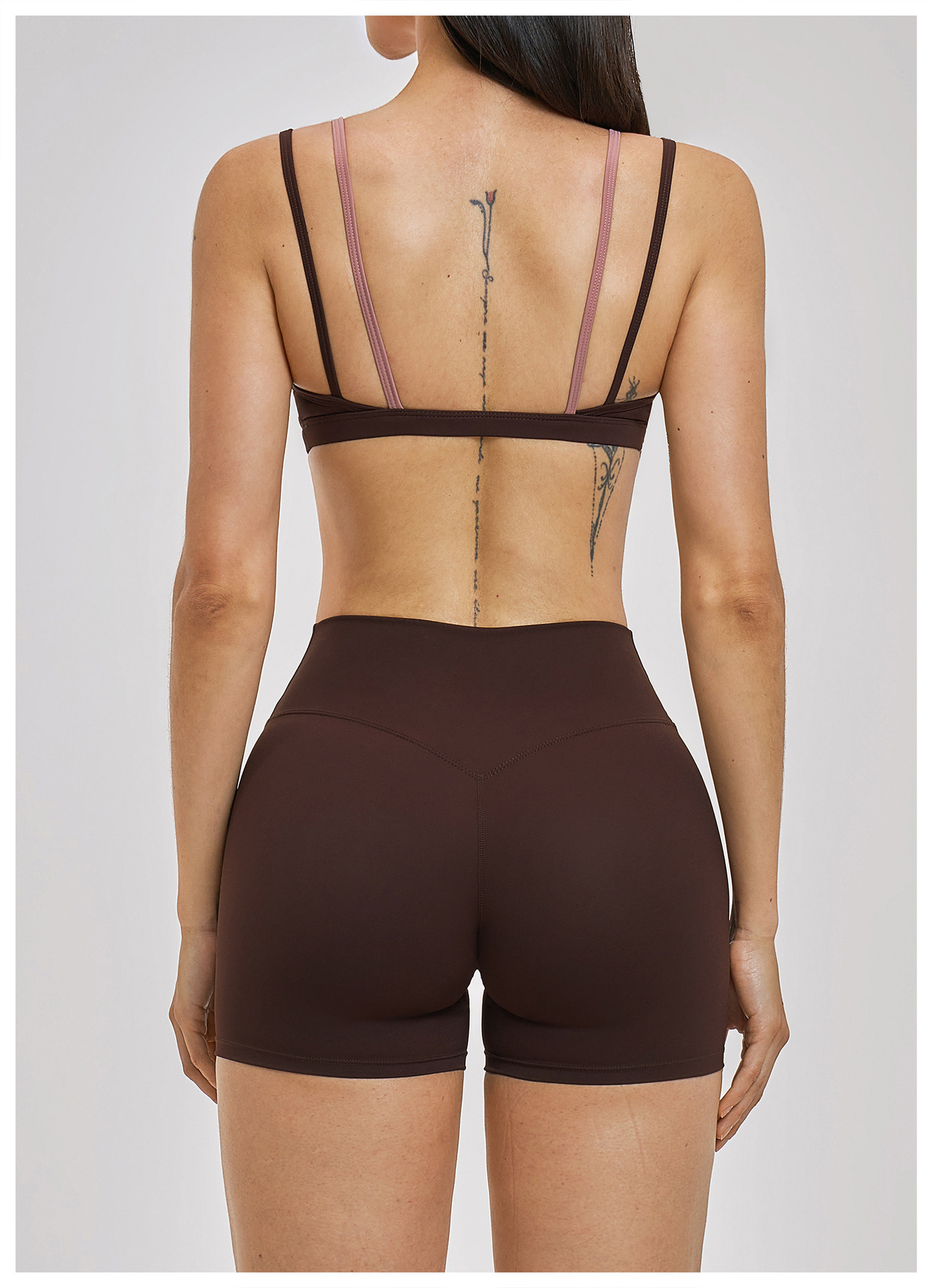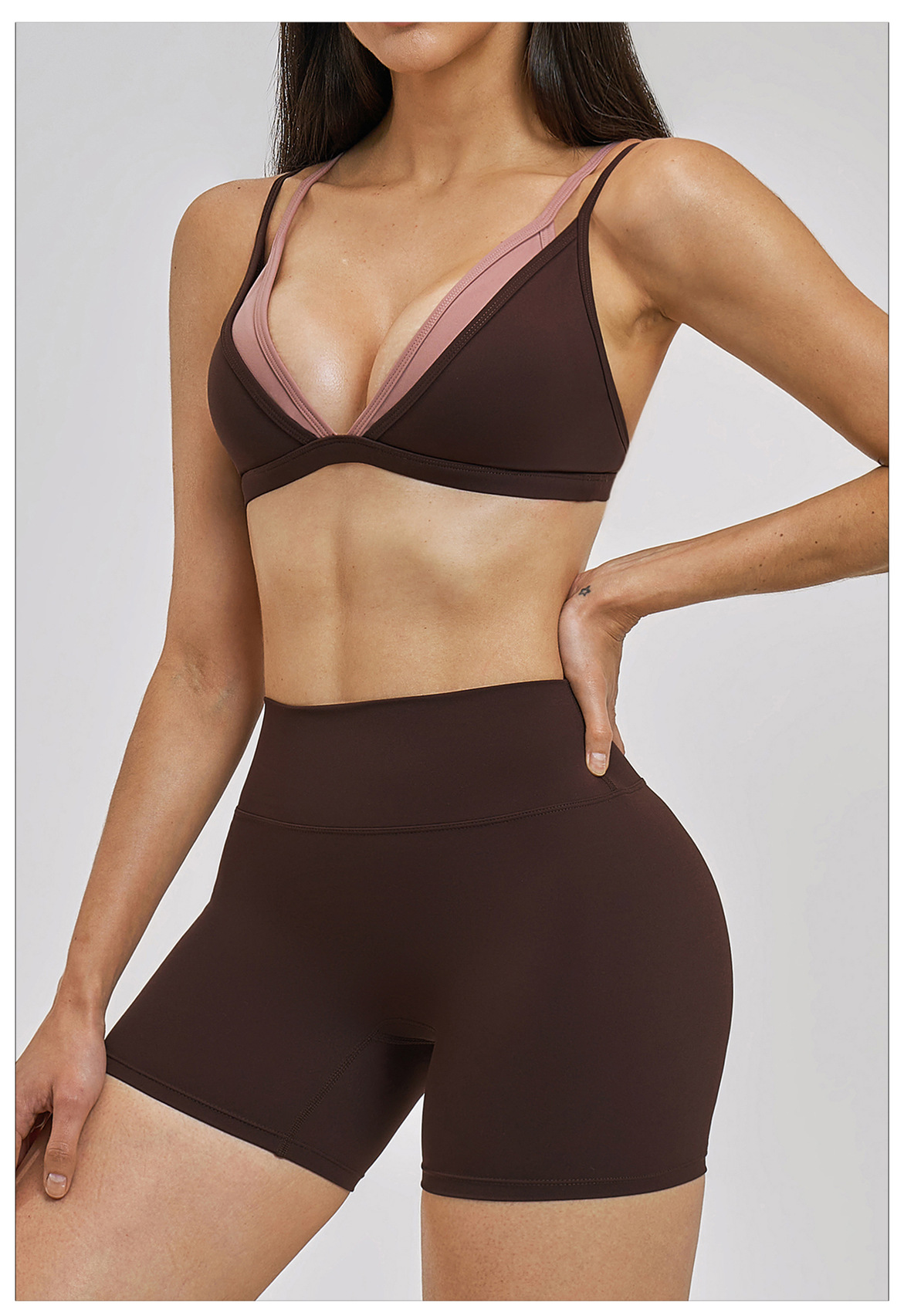 Custom Women’s Color Block Fake Two Yoga Set Crisscross Back Beauty Top Workout Shorts Activewear