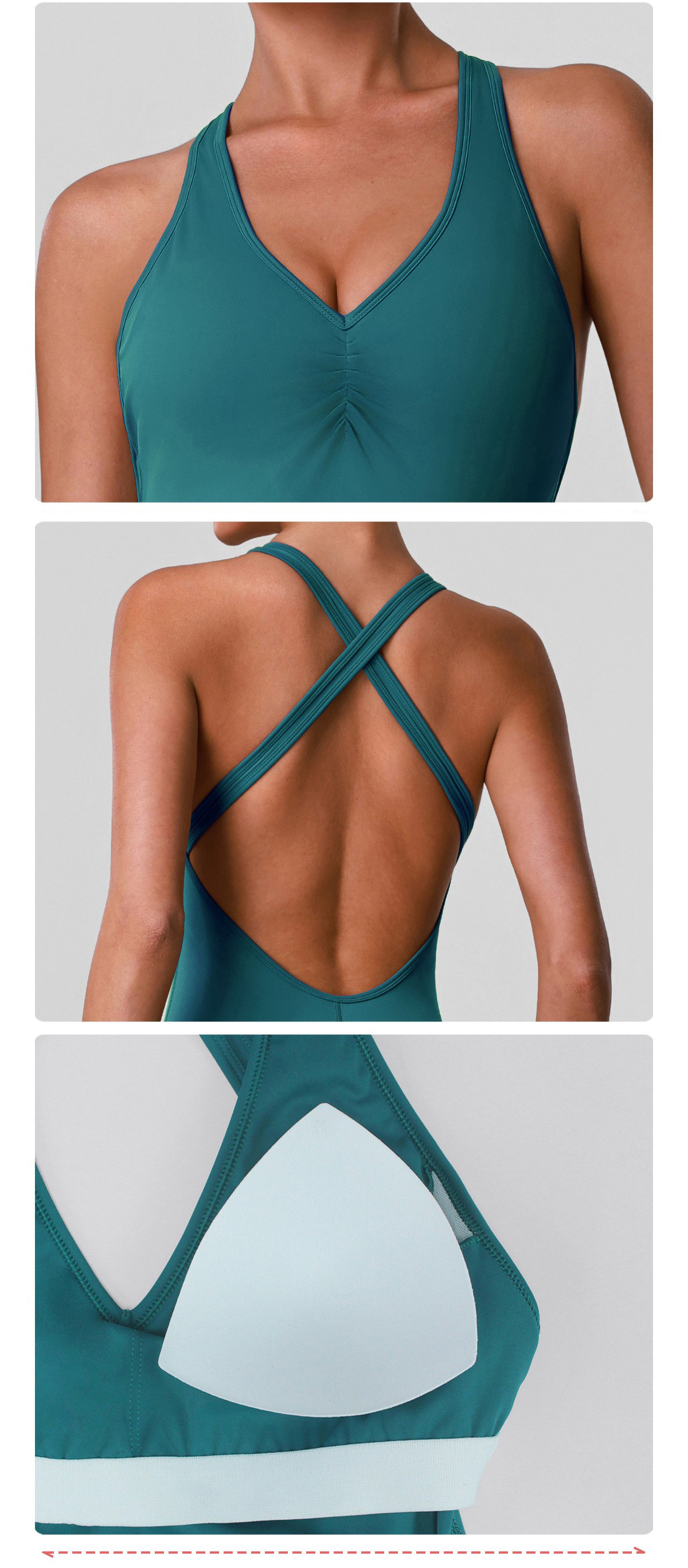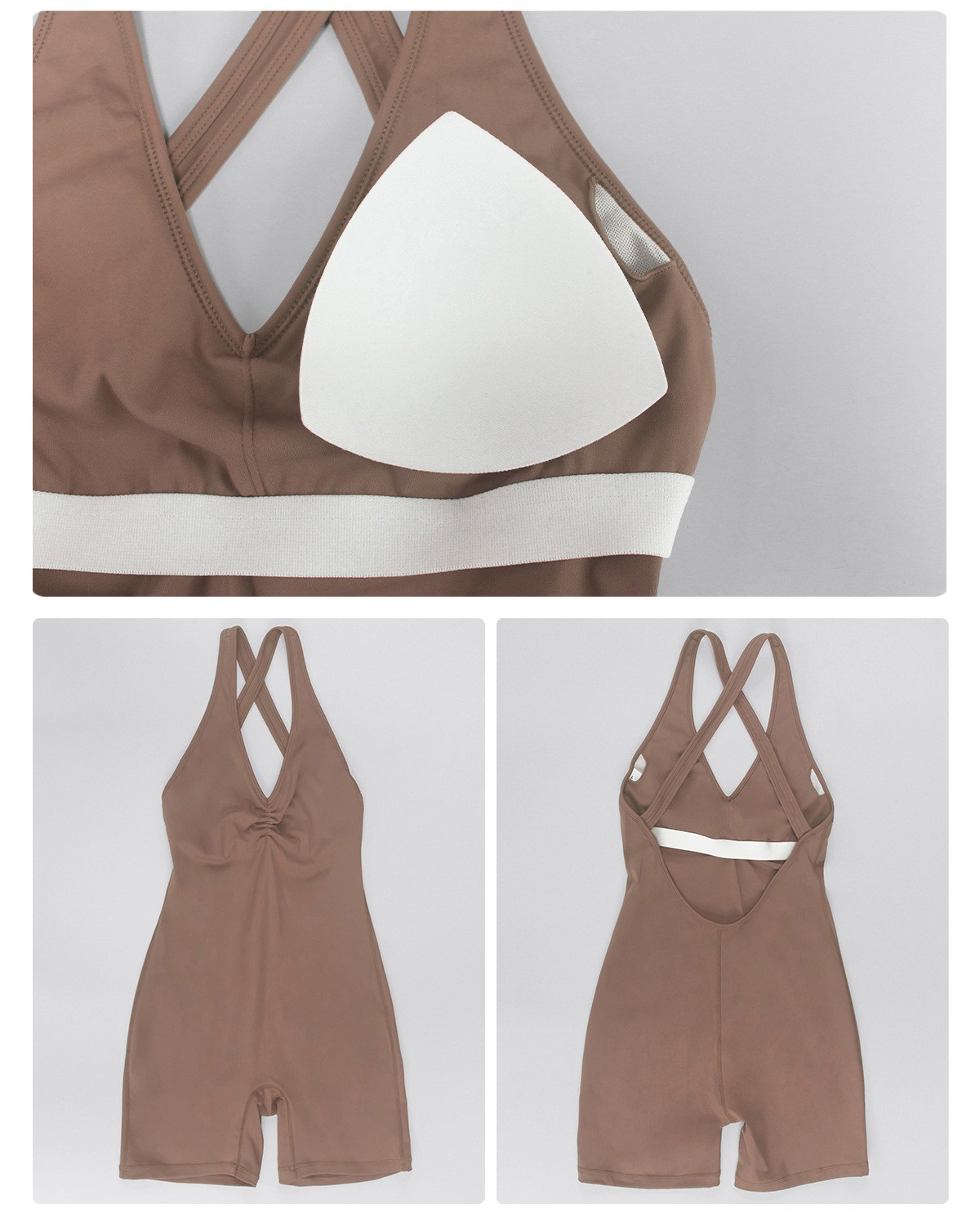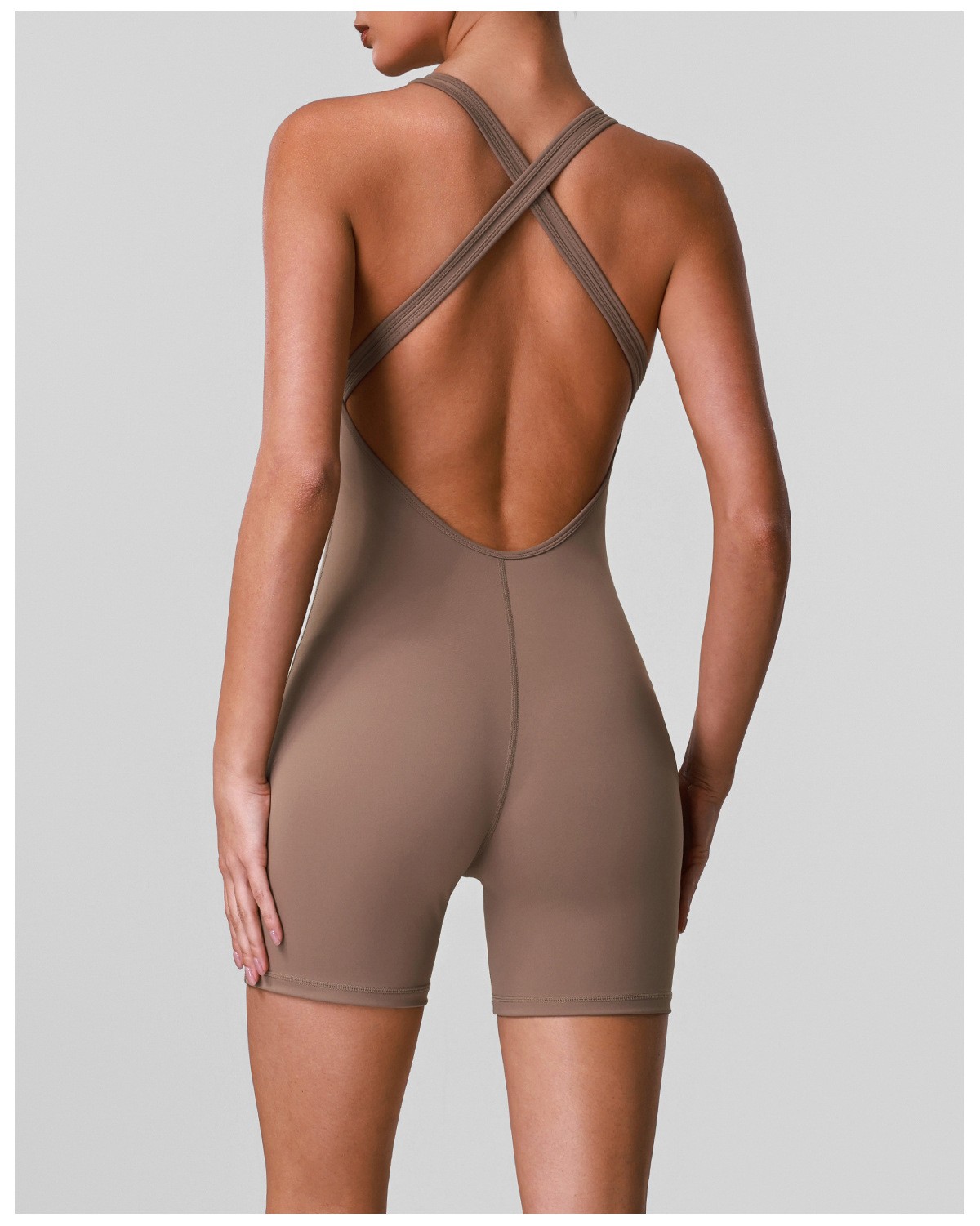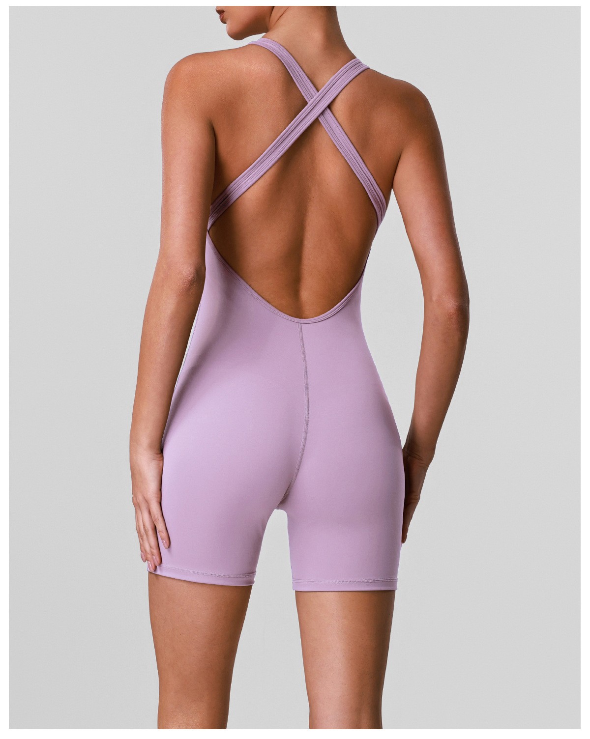 Custom Women’s Crisscross Beauty Back Yoga Romper V-Neck with Chest Pads High Stretch Fitness Short Jumpsuit