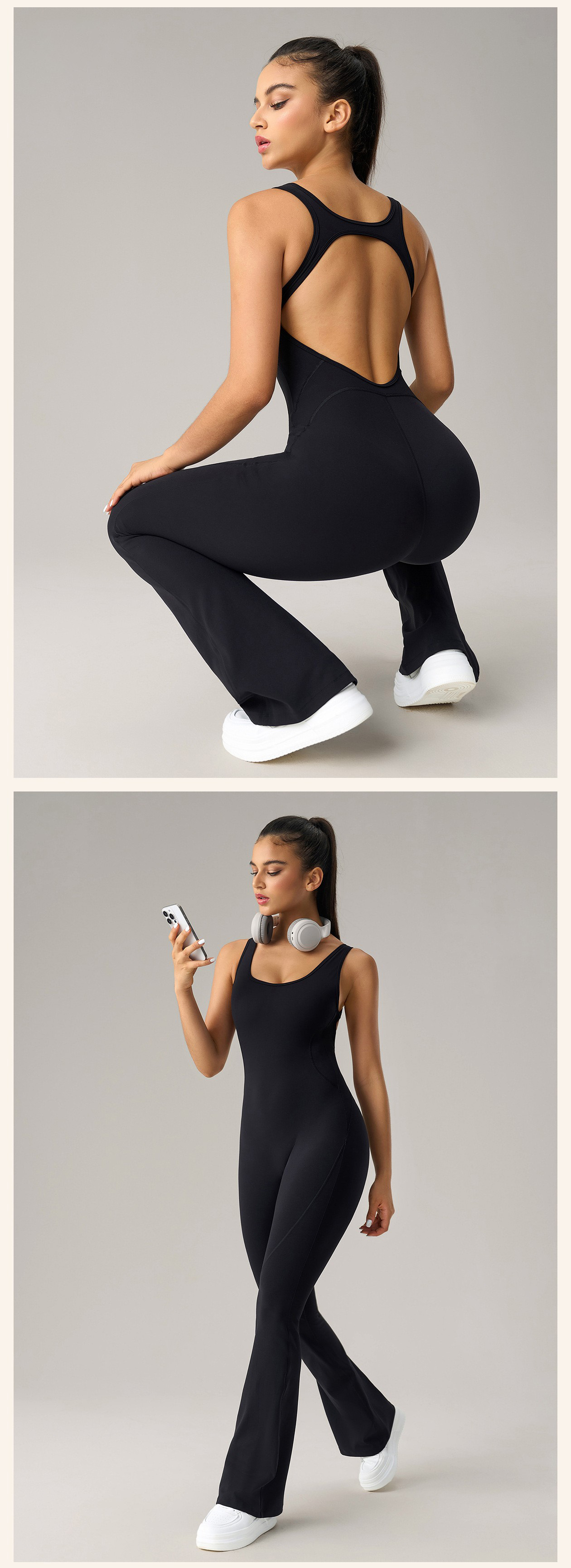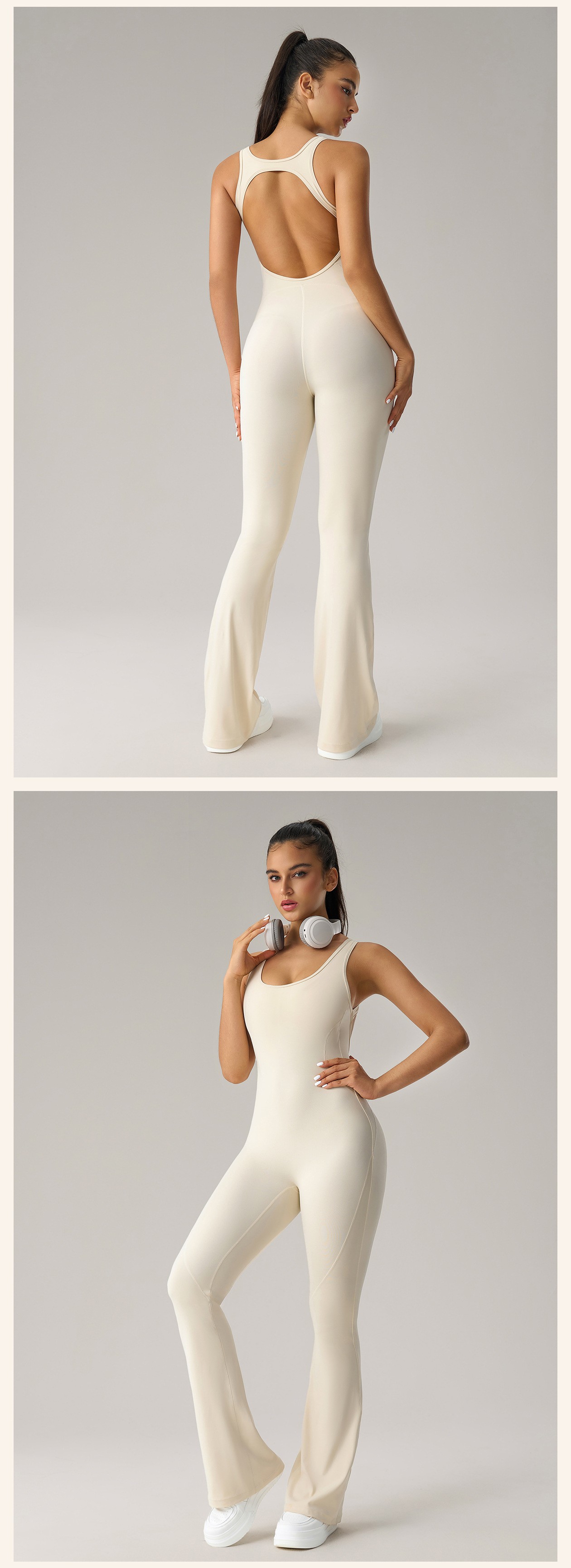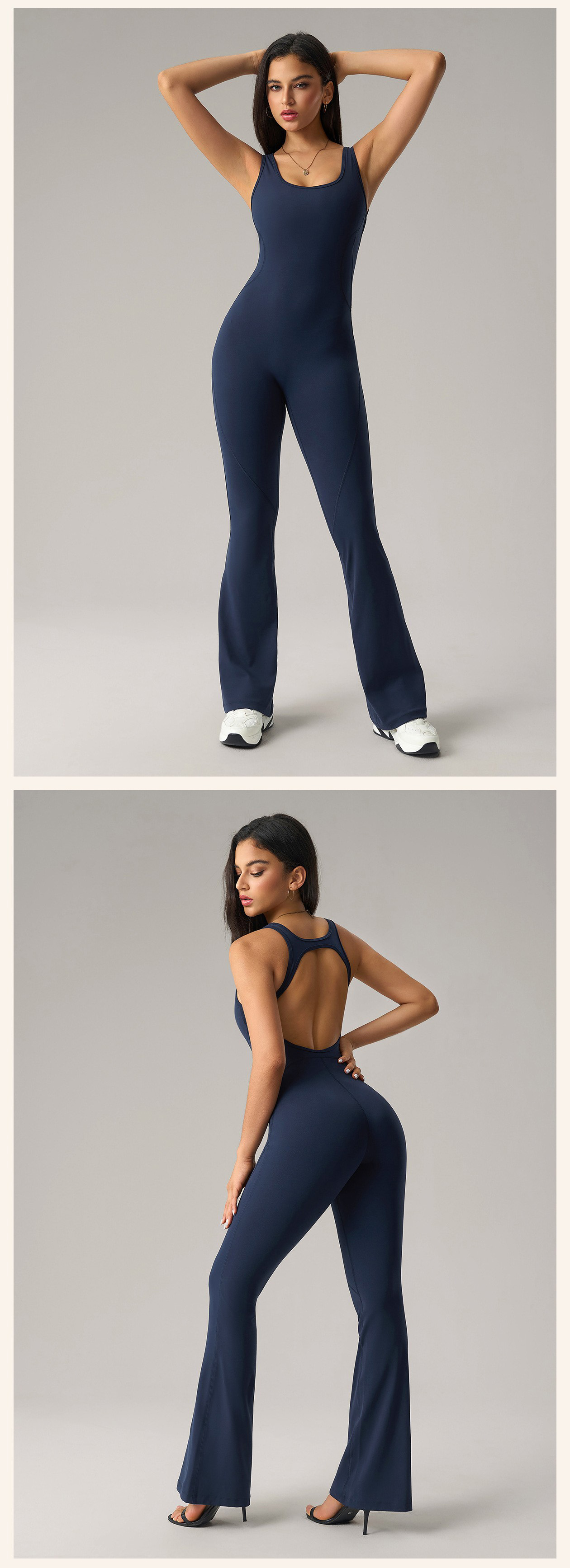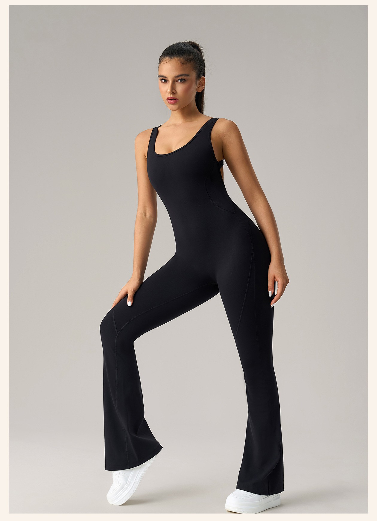 Custom Women’s High Stretch Micro Flare Yoga Jumpsuit Butt Lifting Slimming Fitness Sports Bodysuit