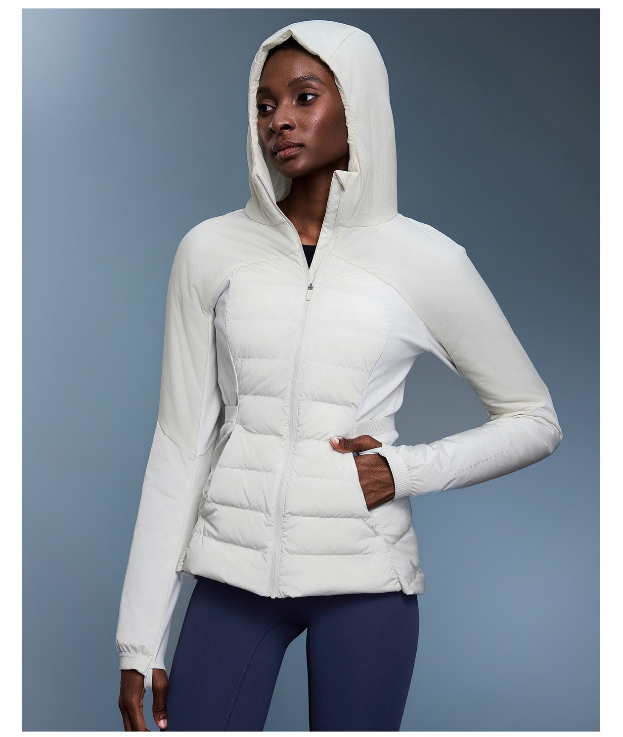 Custom Women’s Lightweight White Duck Down Sports Jacket – Slim-Fit, Warm Running Puffer Coat