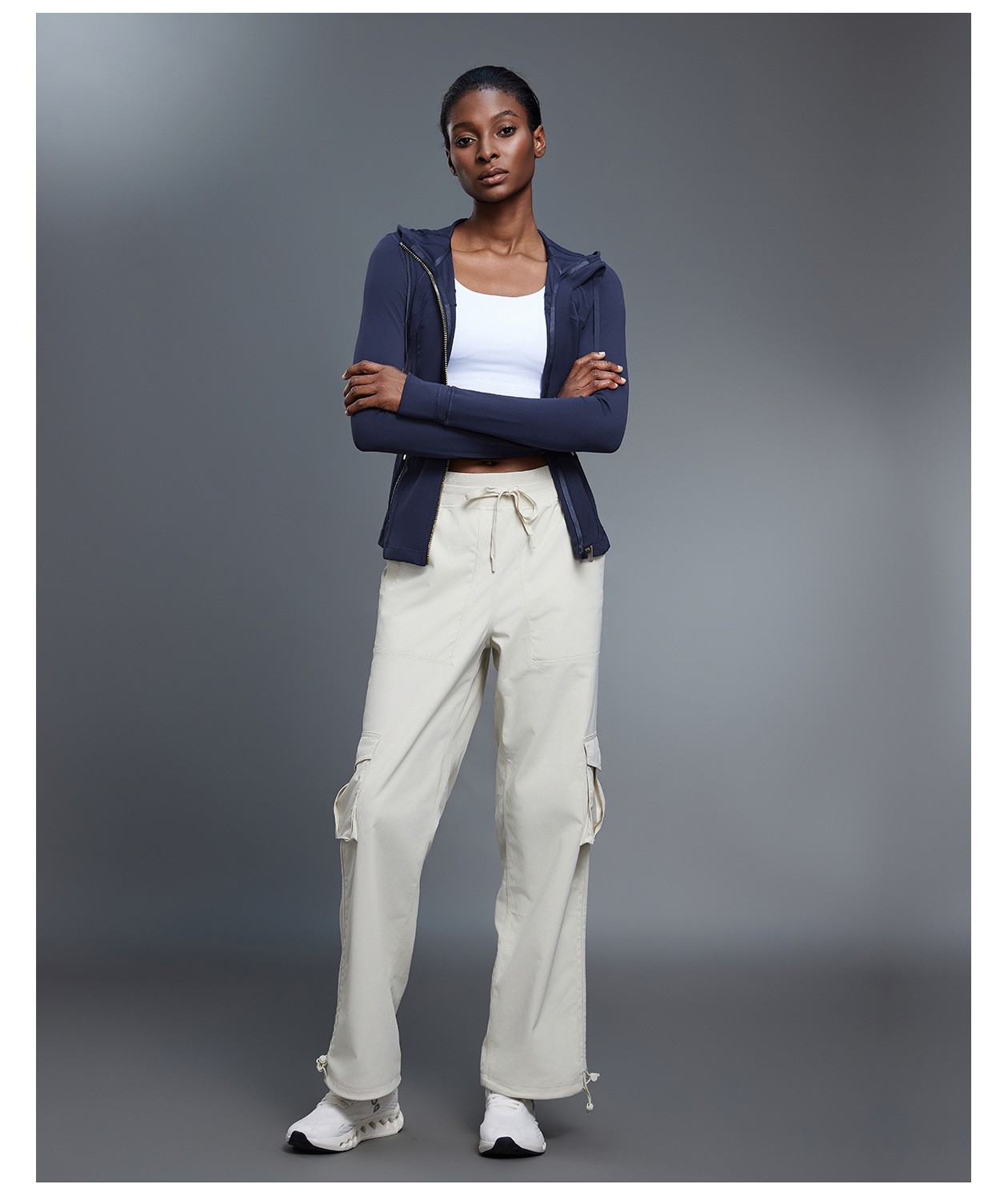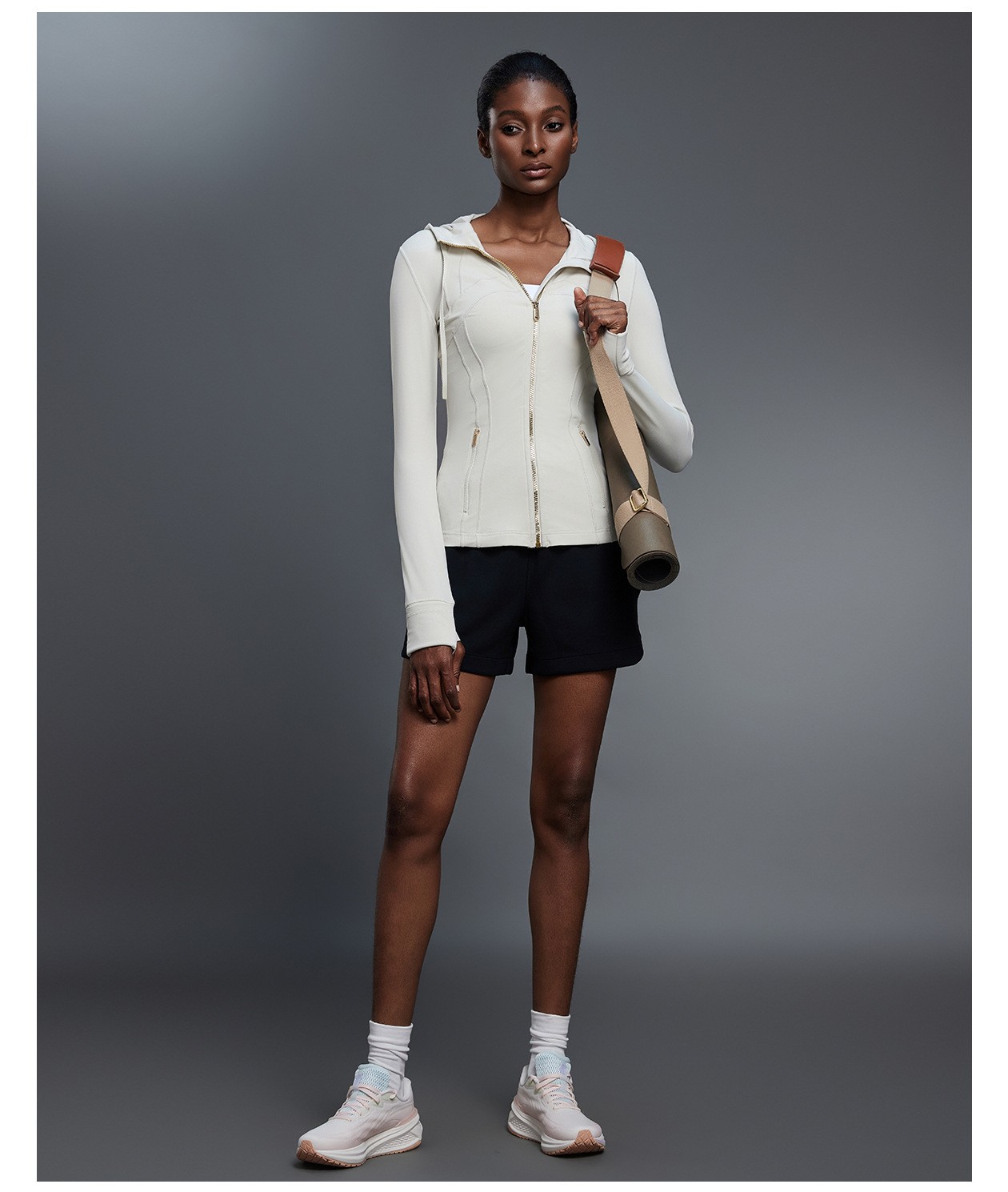 Omi Apparel Limited’s women’s yoga jacket: slim-fit, hooded cardigan design. Long sleeve, perfect for running, fitness & yoga. Breathable, stylish and figure-flattering. Factory-direct bulk customization available, combining comfort and fashion for active lifestyles.