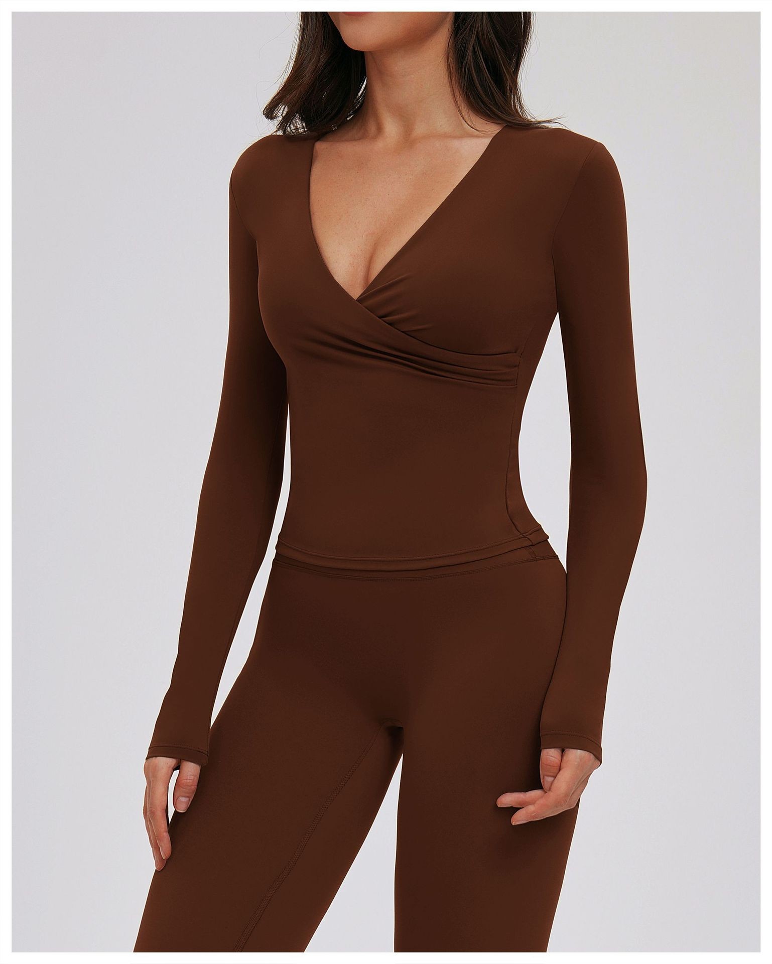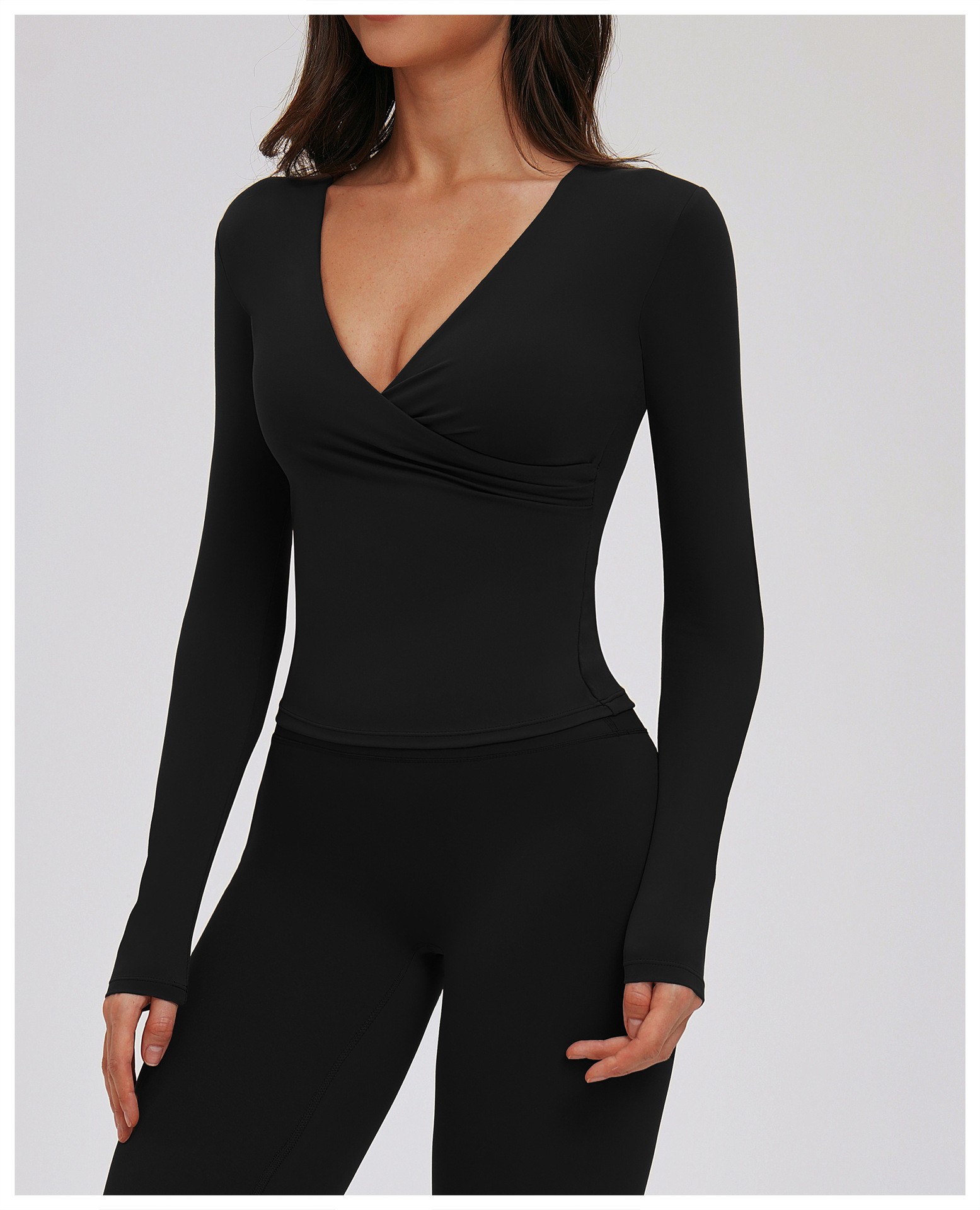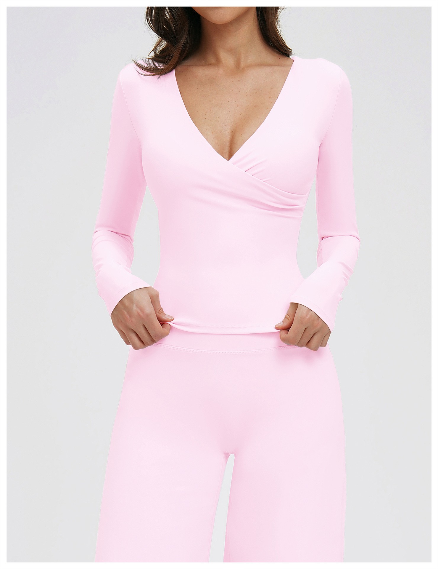 Custom Yoga Long Sleeve Top – Women’s V-Neck Pilates Workout Shirt for Running & Fitness