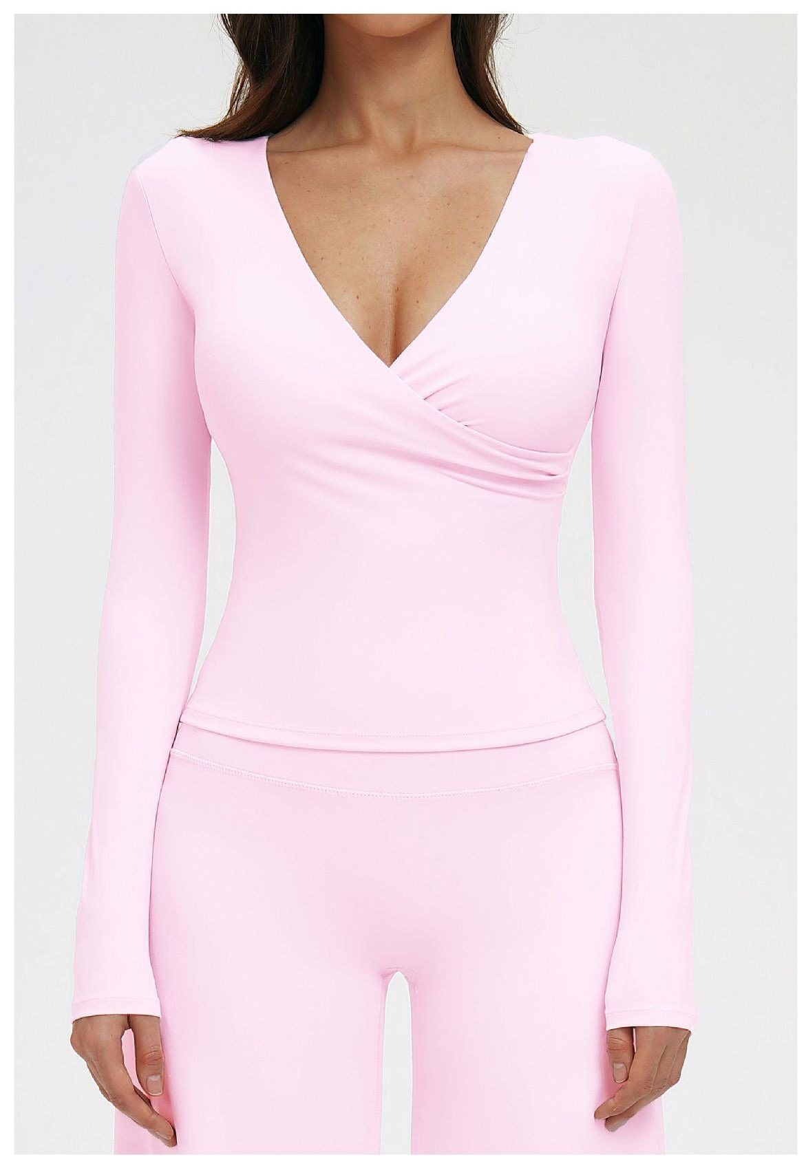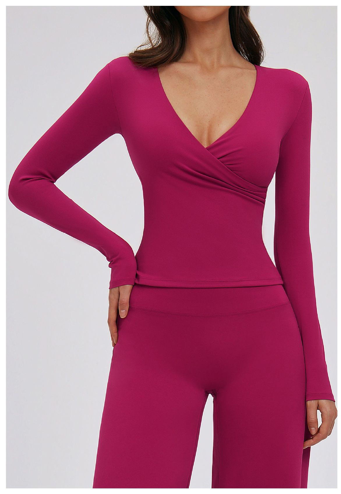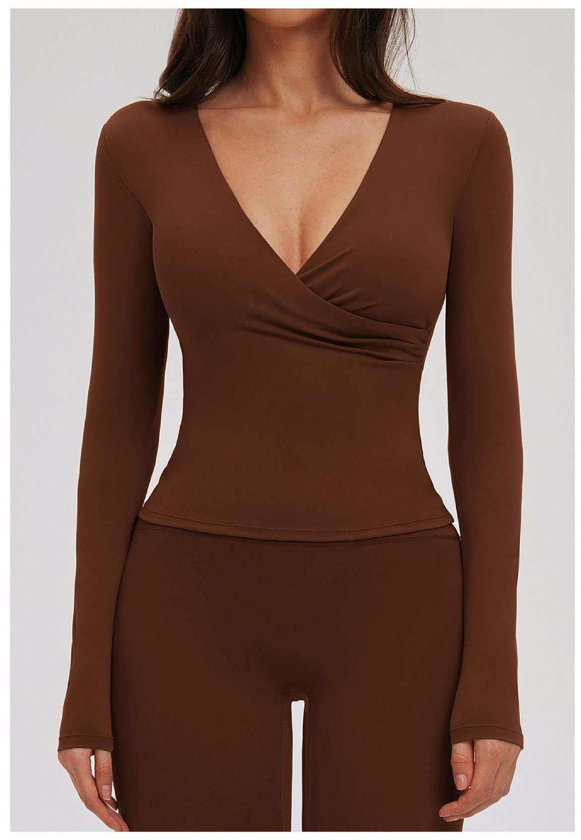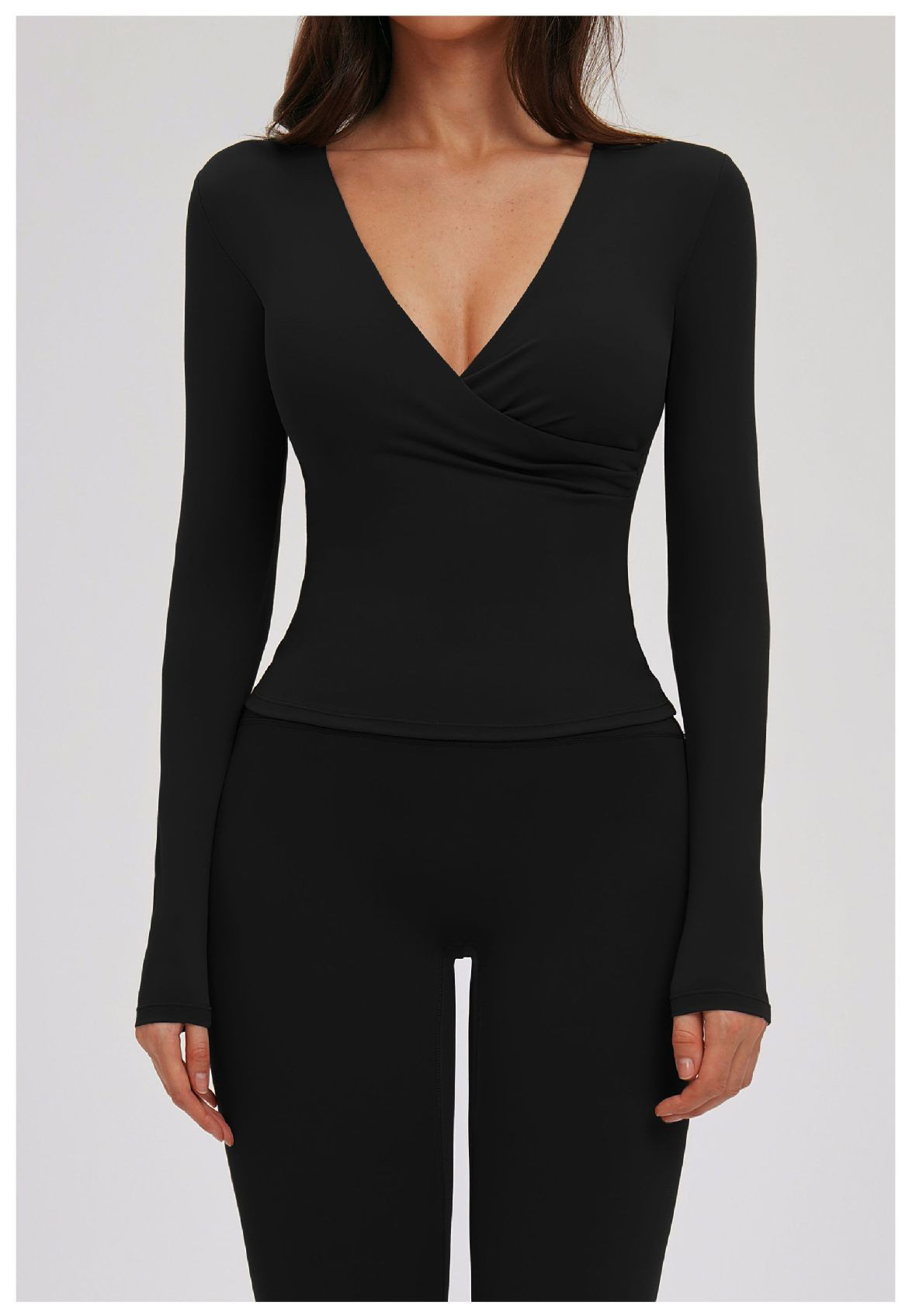 Custom Yoga Long Sleeve Top – Women’s V-Neck Pilates Workout Shirt for Running & Fitness