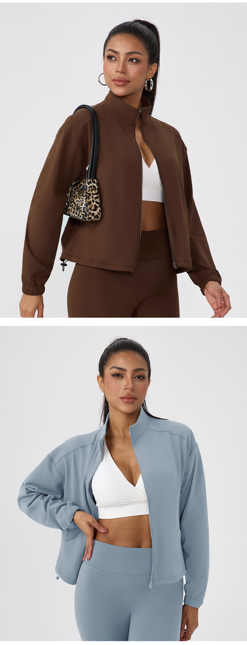 Customizable Winter Yoga Jacket | Fleece-Lined Warmth, Stand Collar Zipper, Ideal for Fitness & Running