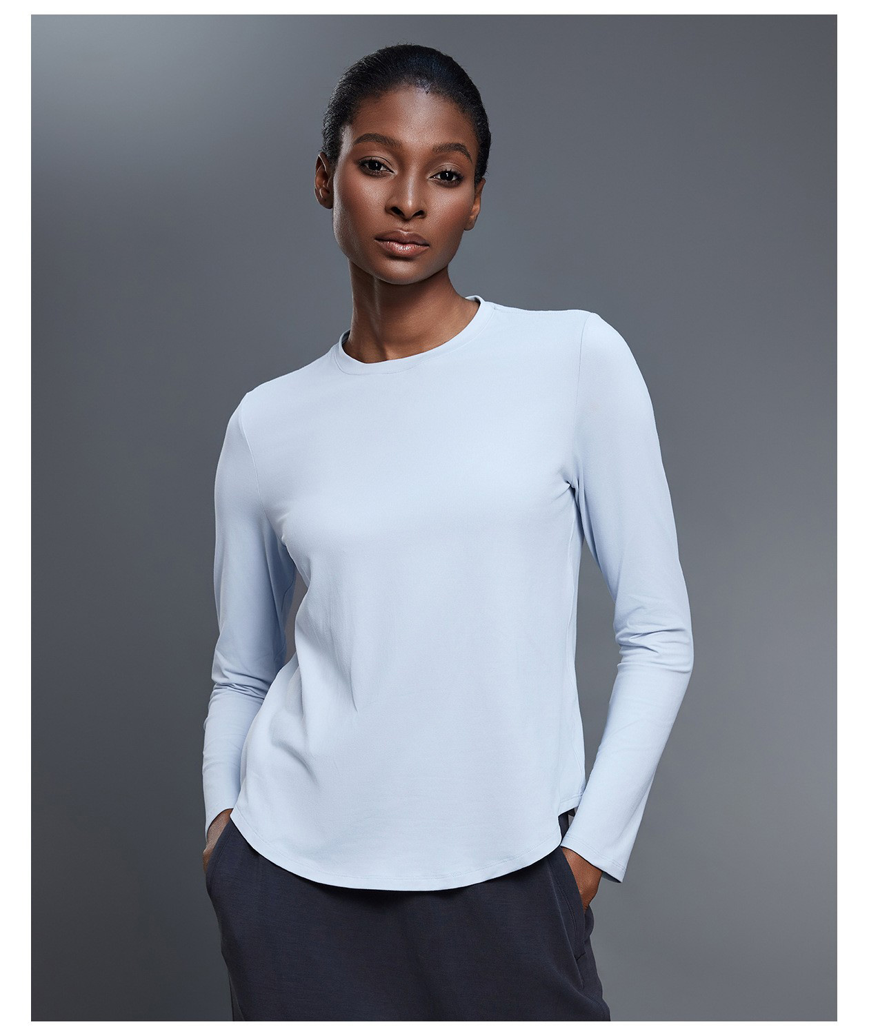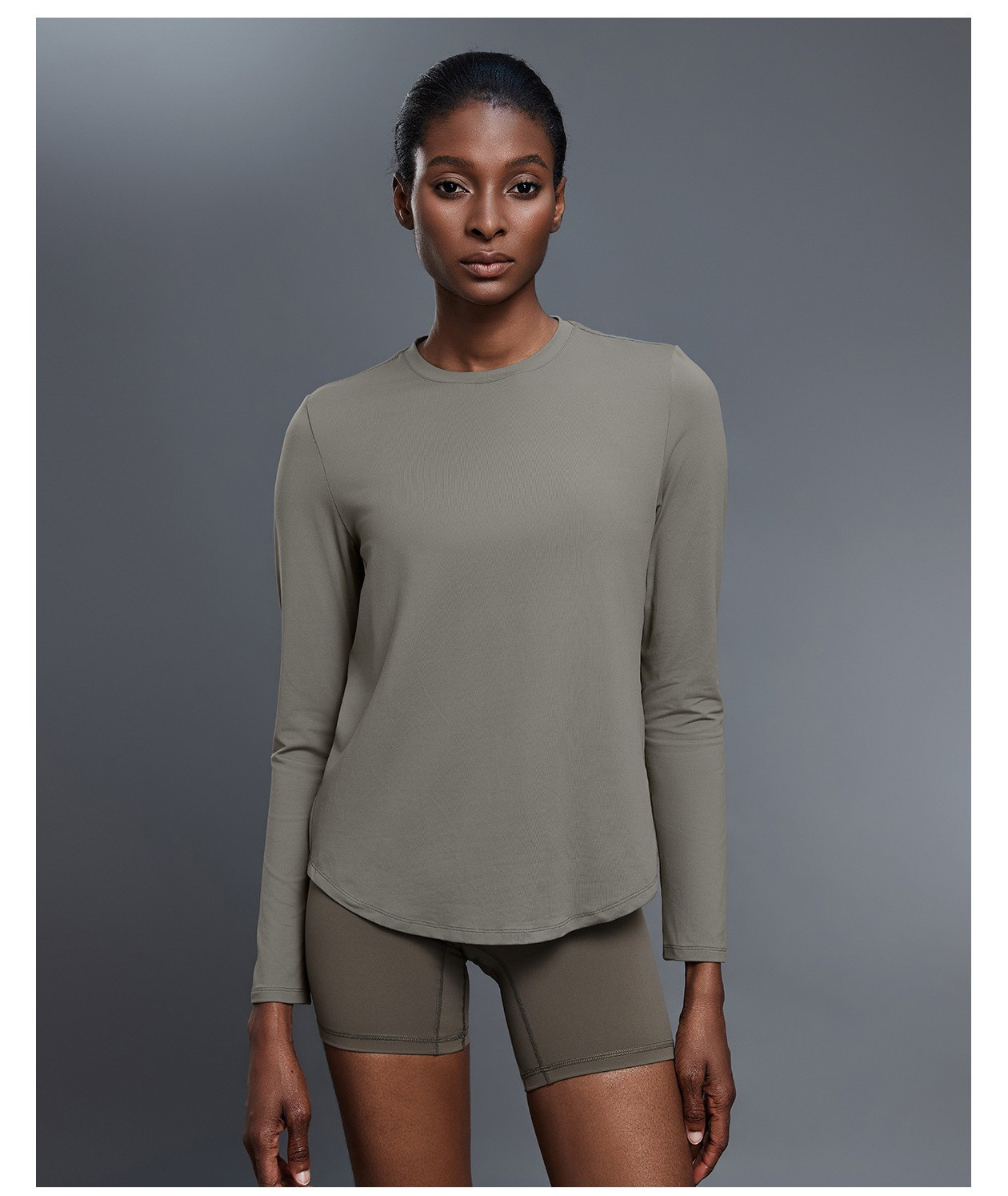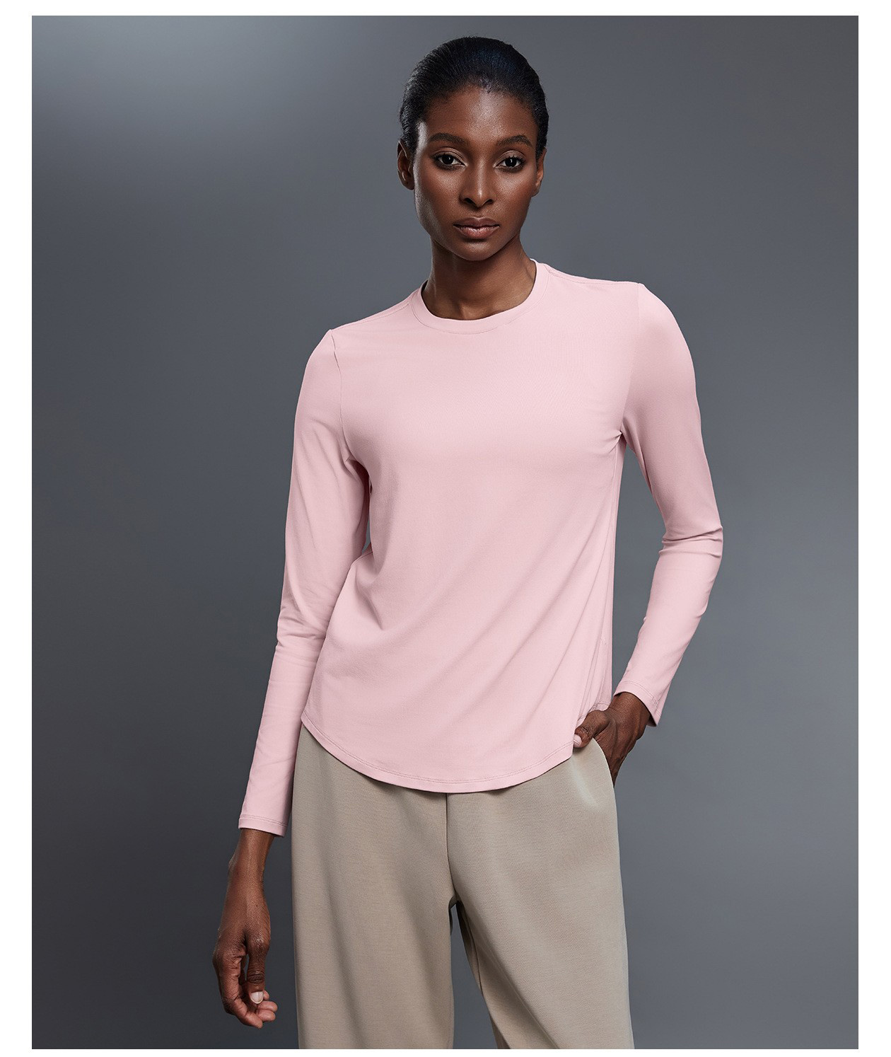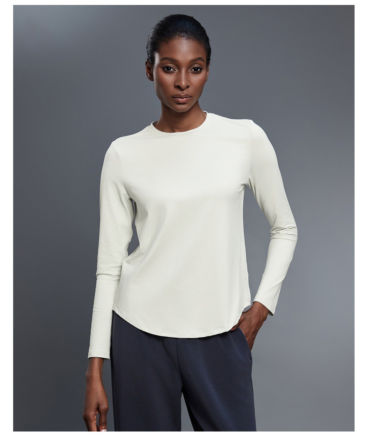 Need bulk-custom women’s autumn yoga & fitness tops? Omi Apparel Limited—direct factory—delivers premium crew neck long-sleeve T-shirts! Soft, breathable fabric suits cool autumn days; loose cut flatters figures (slimming effect) without restricting yoga poses or workouts. Classic crew neck fits all body types, and the versatile design works for casual outings too—perfect for multi-scene wear.