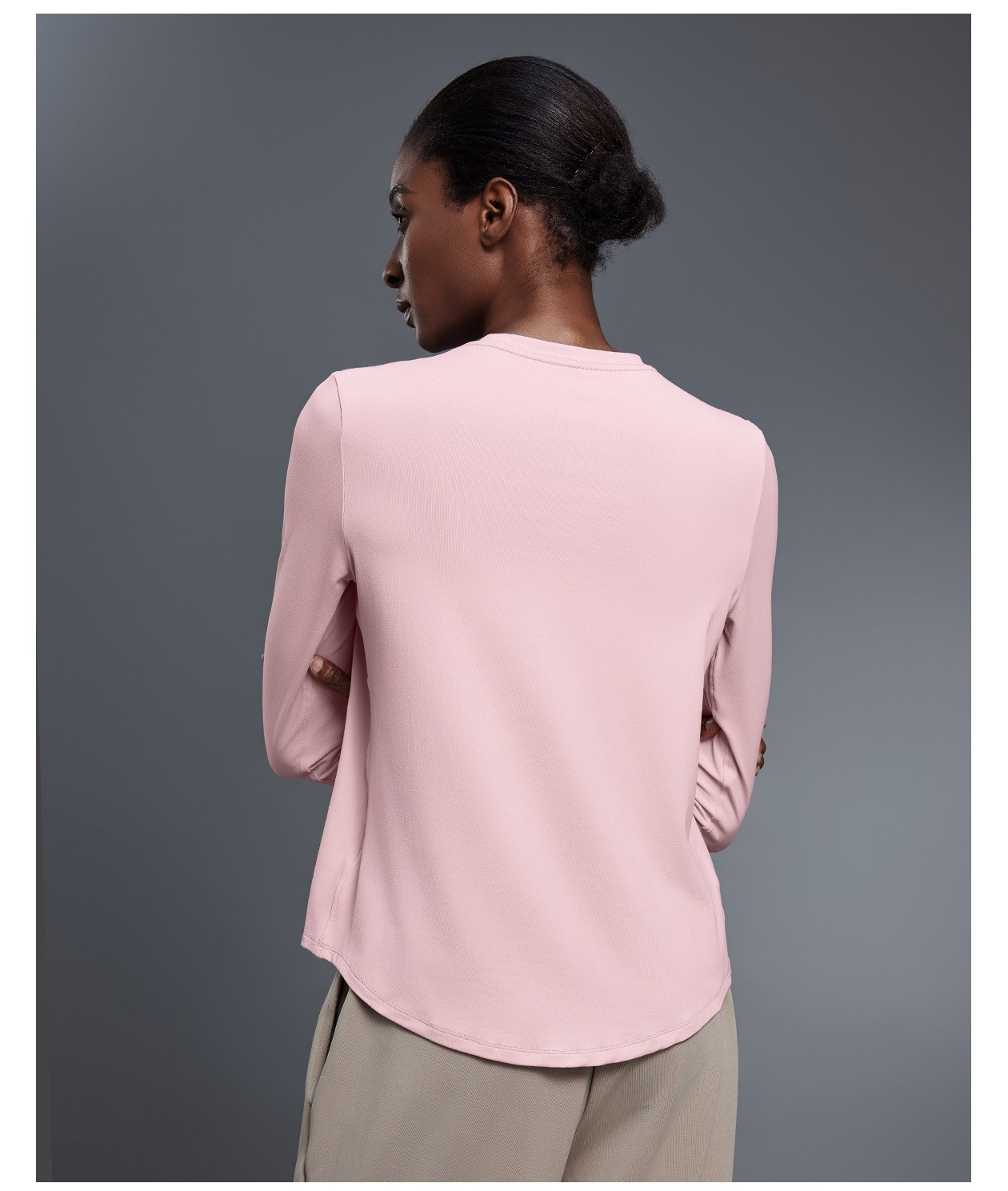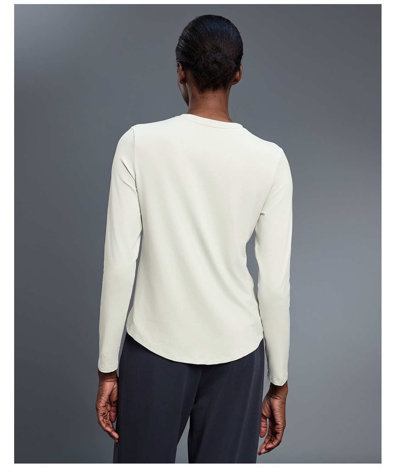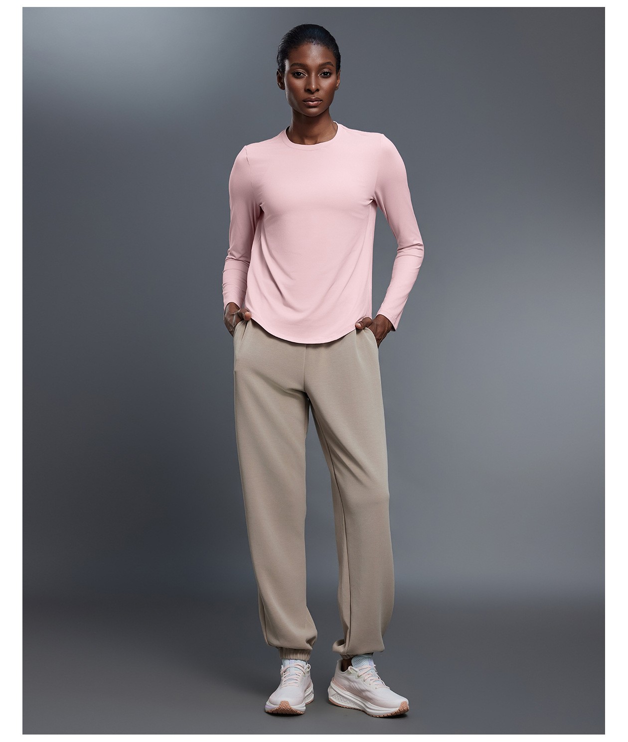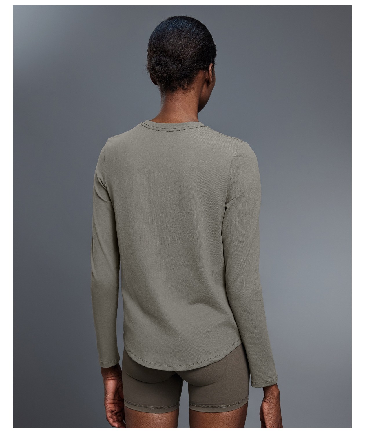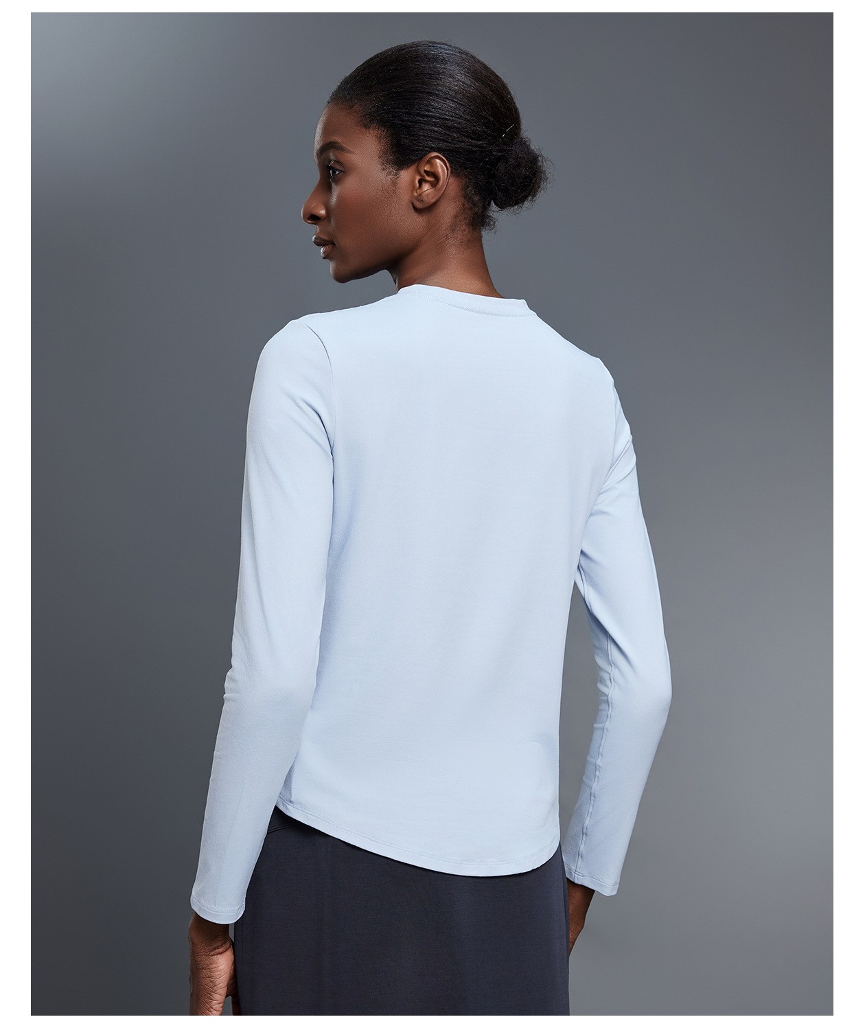 Need bulk-custom women’s autumn yoga & fitness tops? Omi Apparel Limited—direct factory—delivers premium crew neck long-sleeve T-shirts! Soft, breathable fabric suits cool autumn days; loose cut flatters figures (slimming effect) without restricting yoga poses or workouts. Classic crew neck fits all body types, and the versatile design works for casual outings too—perfect for multi-scene wear.