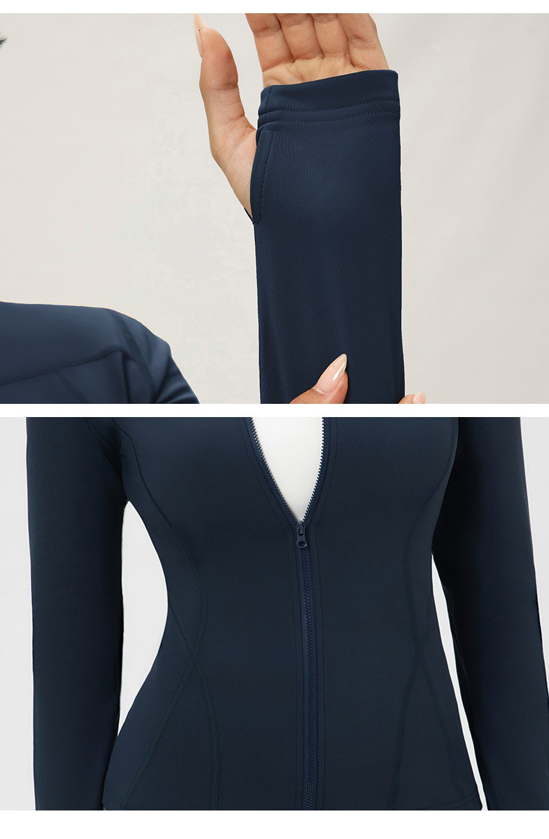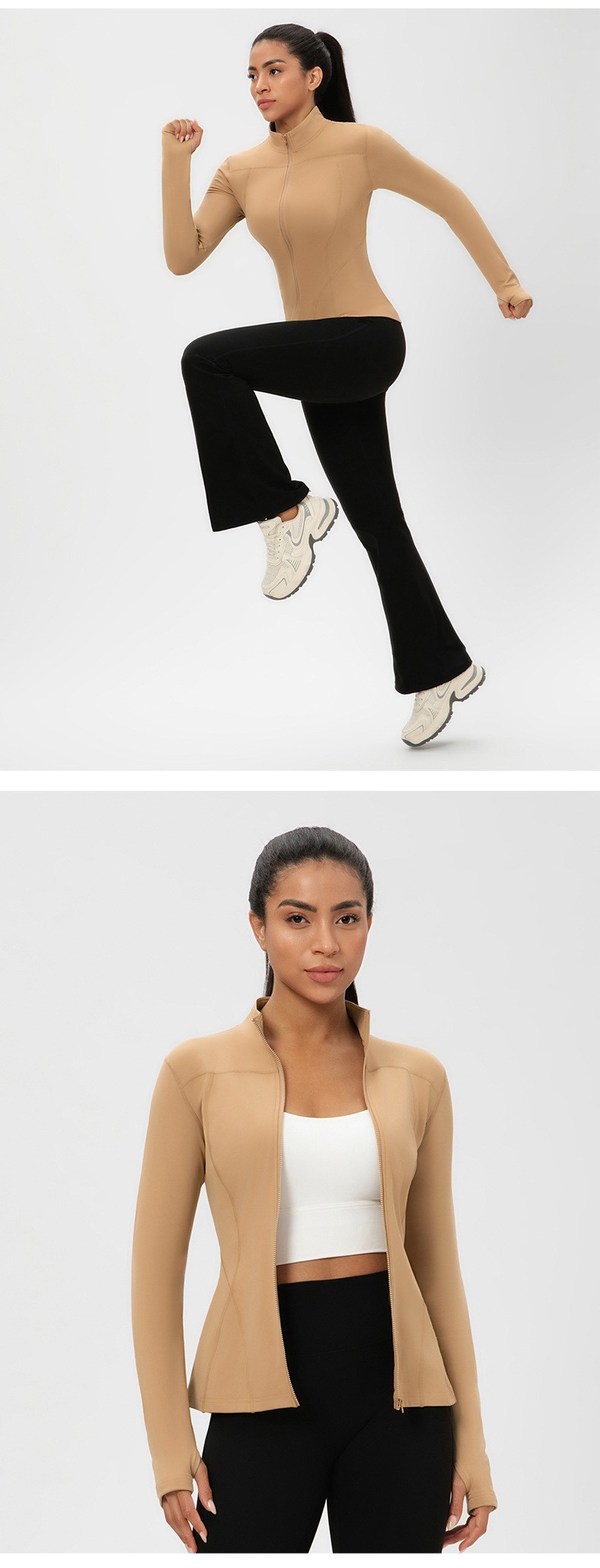 Customizable Women’s Autumn-Winter Yoga Coat | Fleece Lined, Slim Waist, Warm Athletic Outerwear