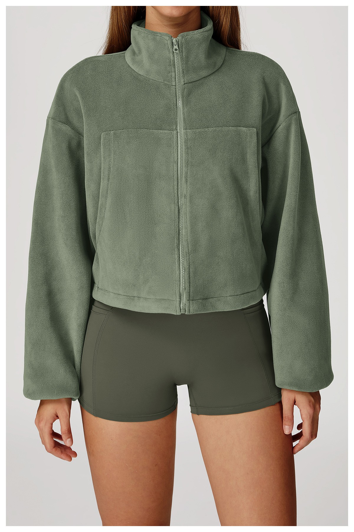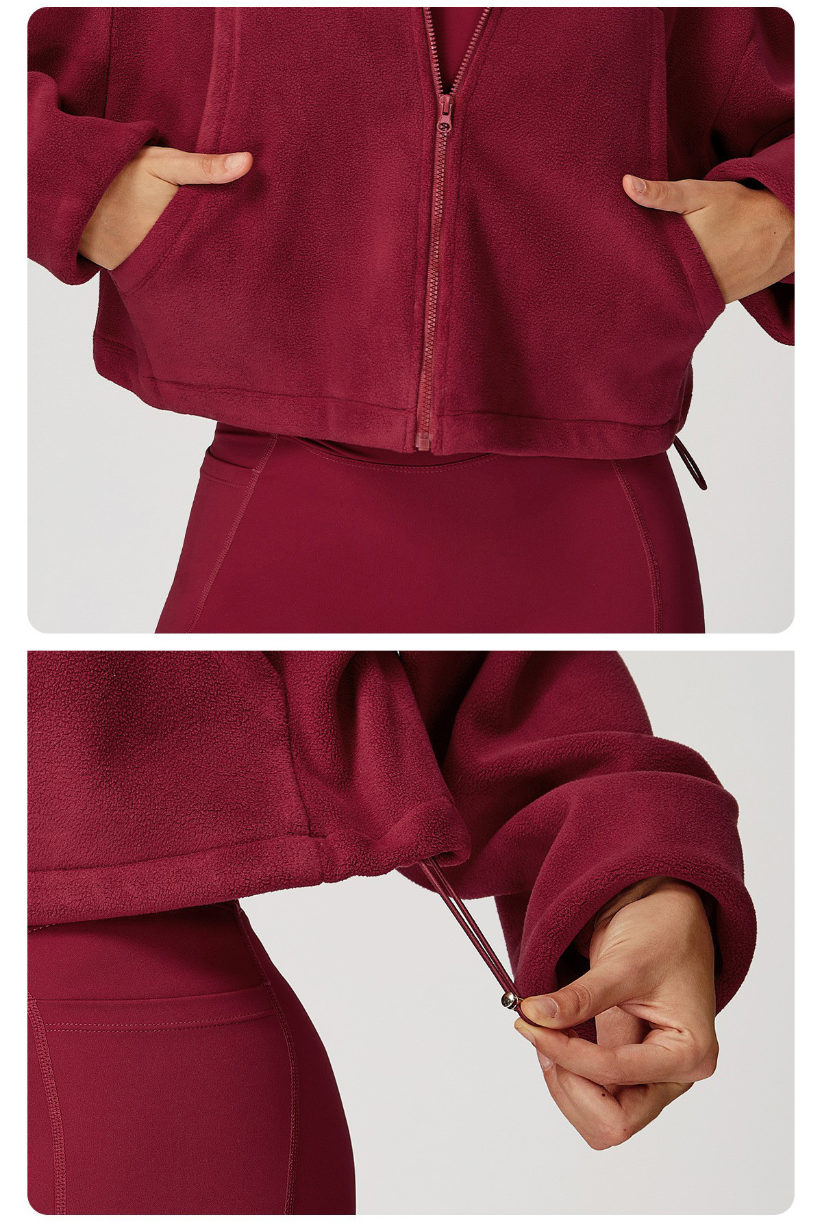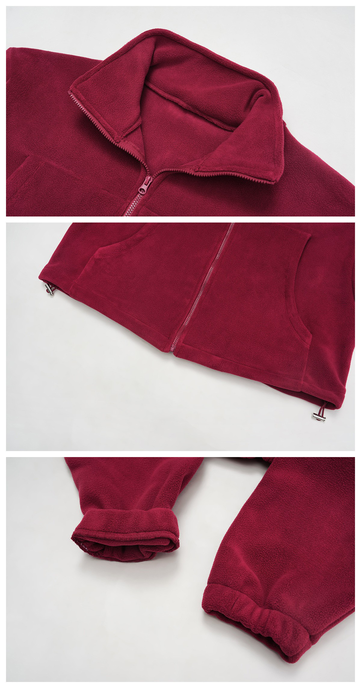 Customizable Women’s Windproof Fleece Jacket | Stand-Collar Polar Fleece, Drawstring, Athletic Sweatshirt