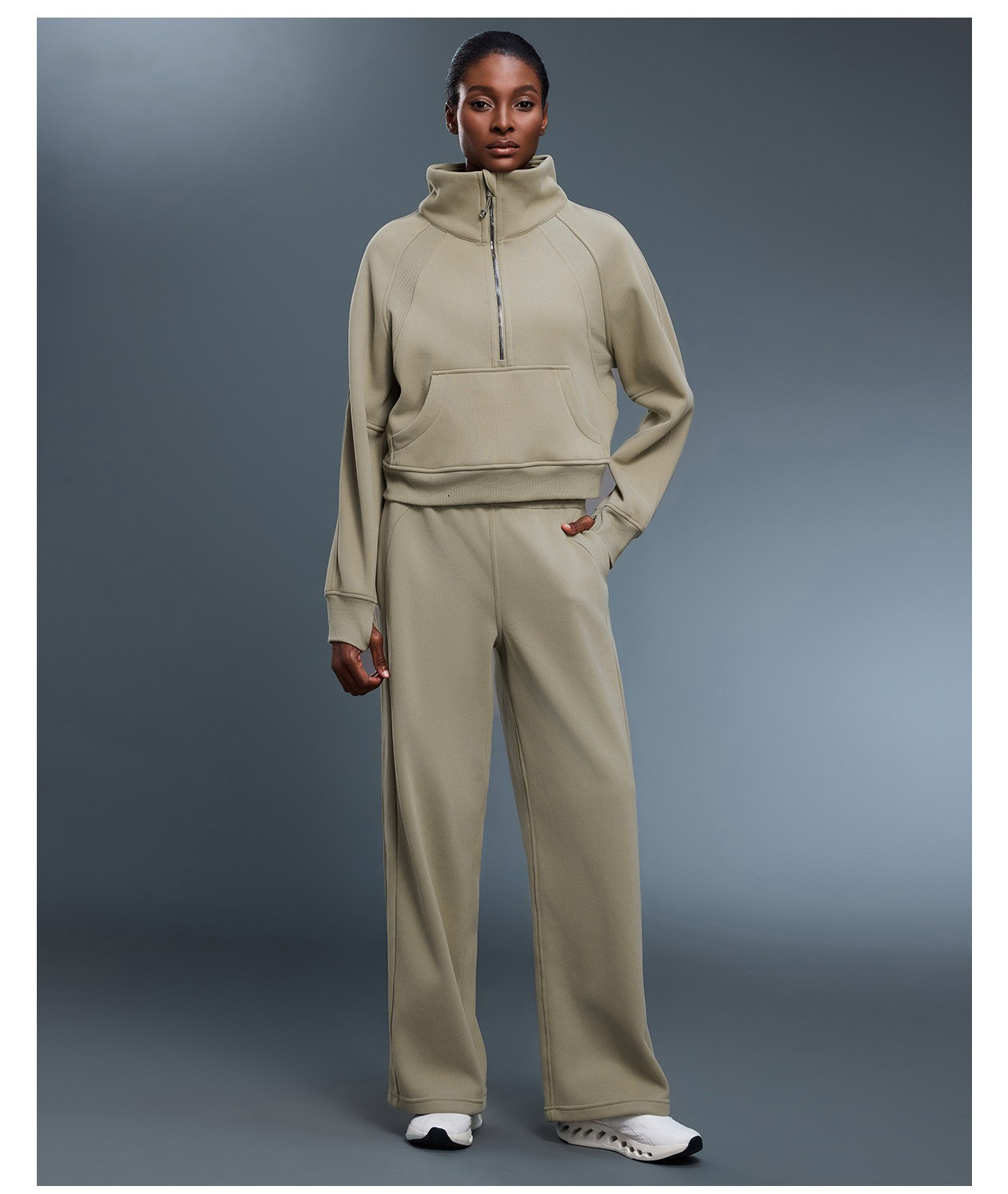Customized autumn and winter plus velvet thick straight wide-leg pants loose warm sports pants