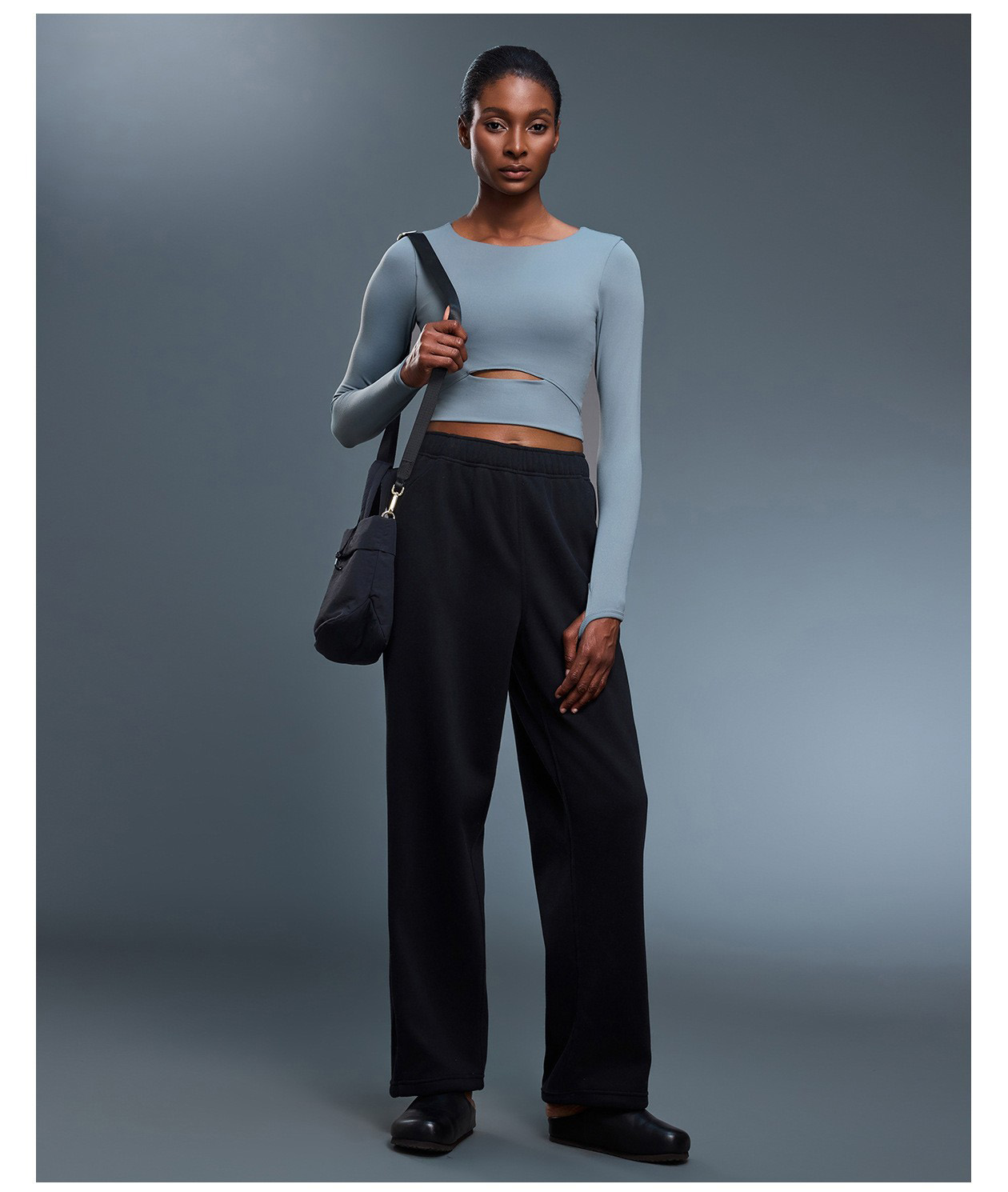 Customized velvet warm casual pants loose sports pants in autumn and winter ladies drawstring leg pants