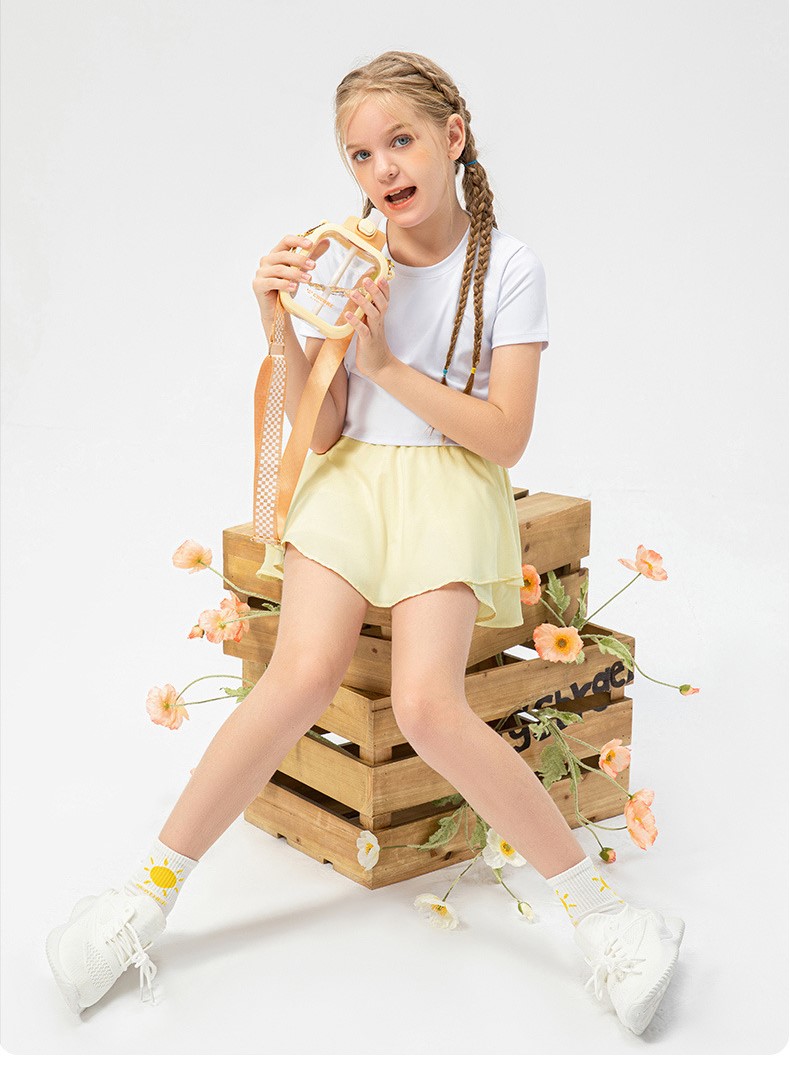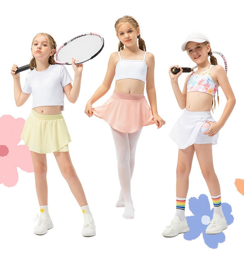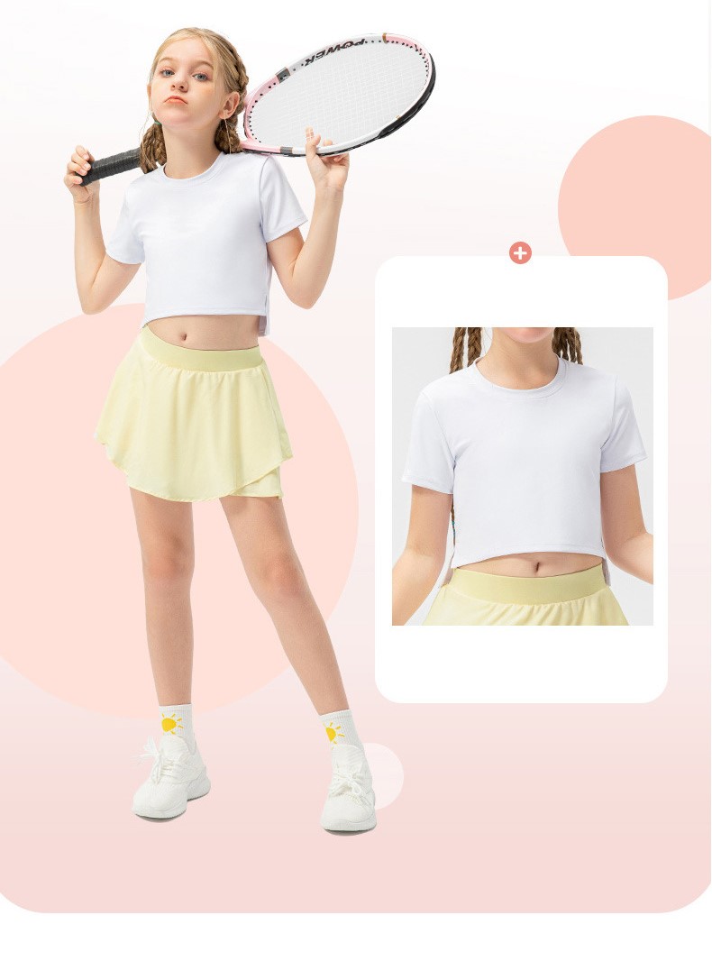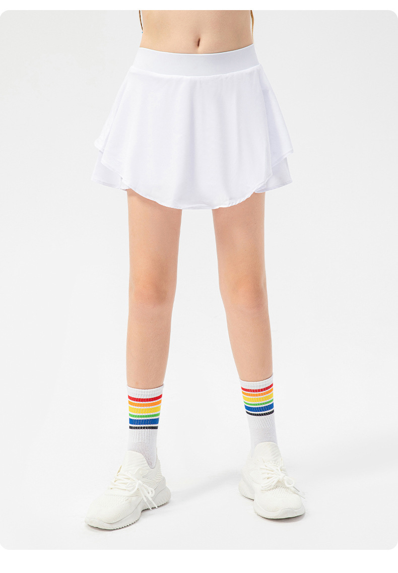 Girls 2 in 1 tennis skirt running dance training shorts fake two piece yoga pants with inner pocket