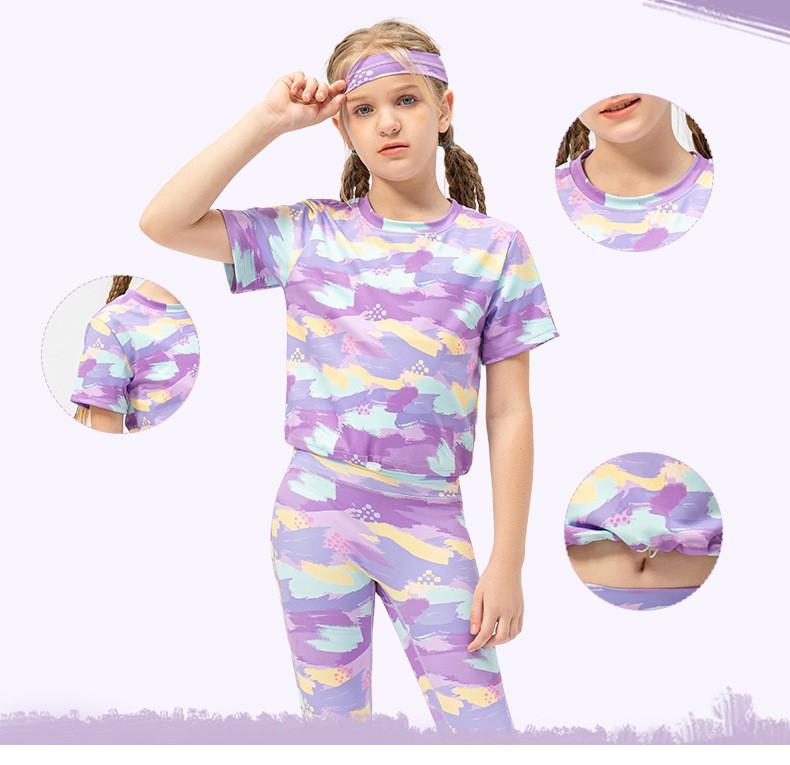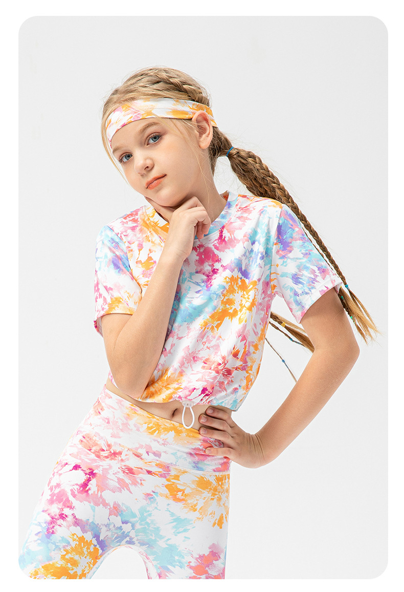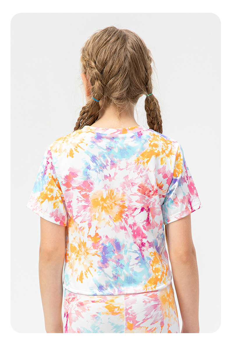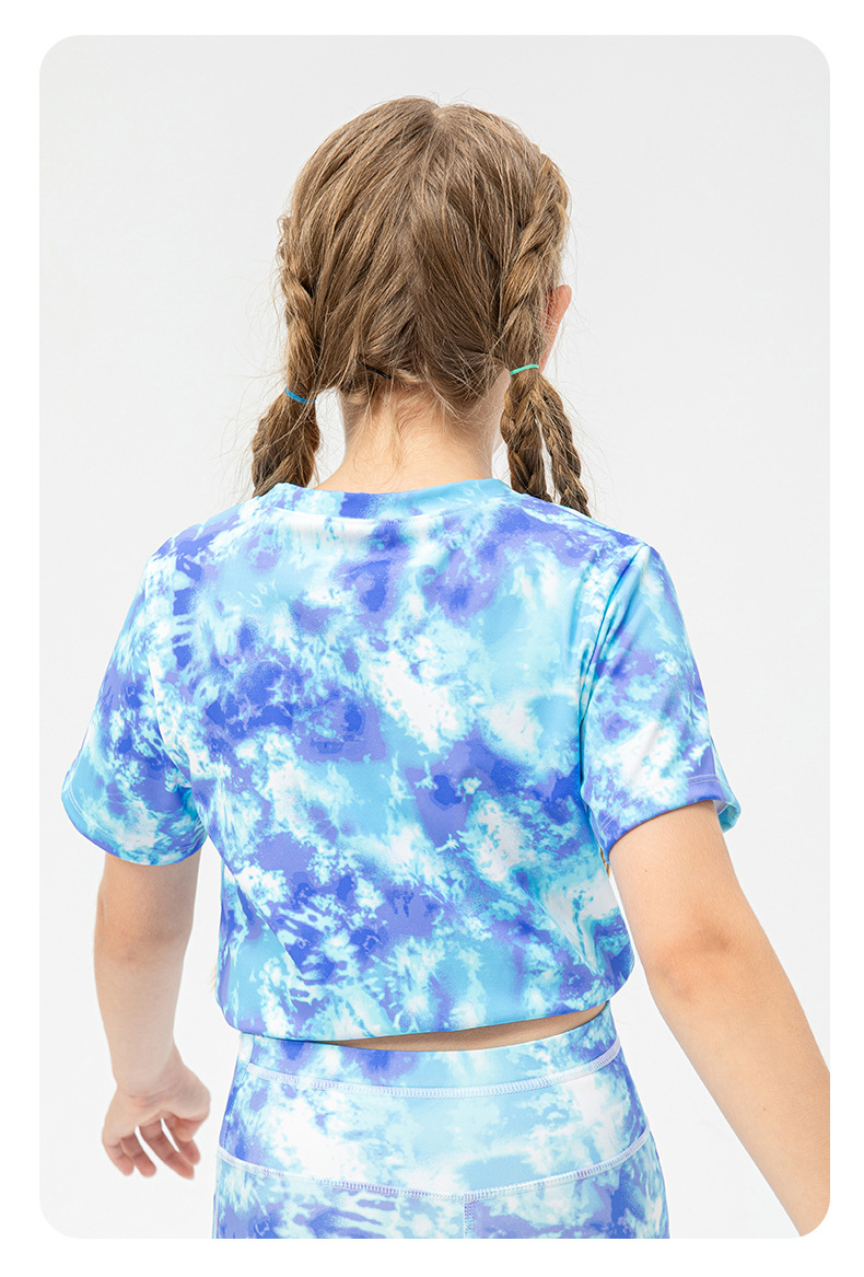 Girls printed short sleeve crop tshirts adjust hem quick dry children running dance kids training t-shirt