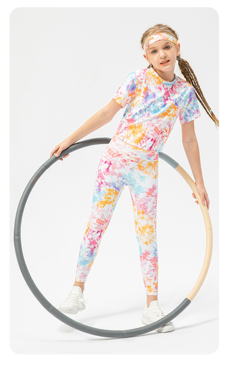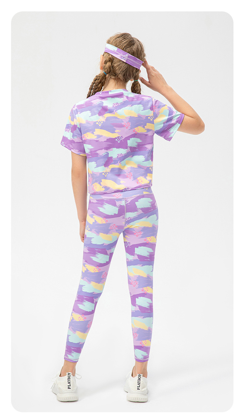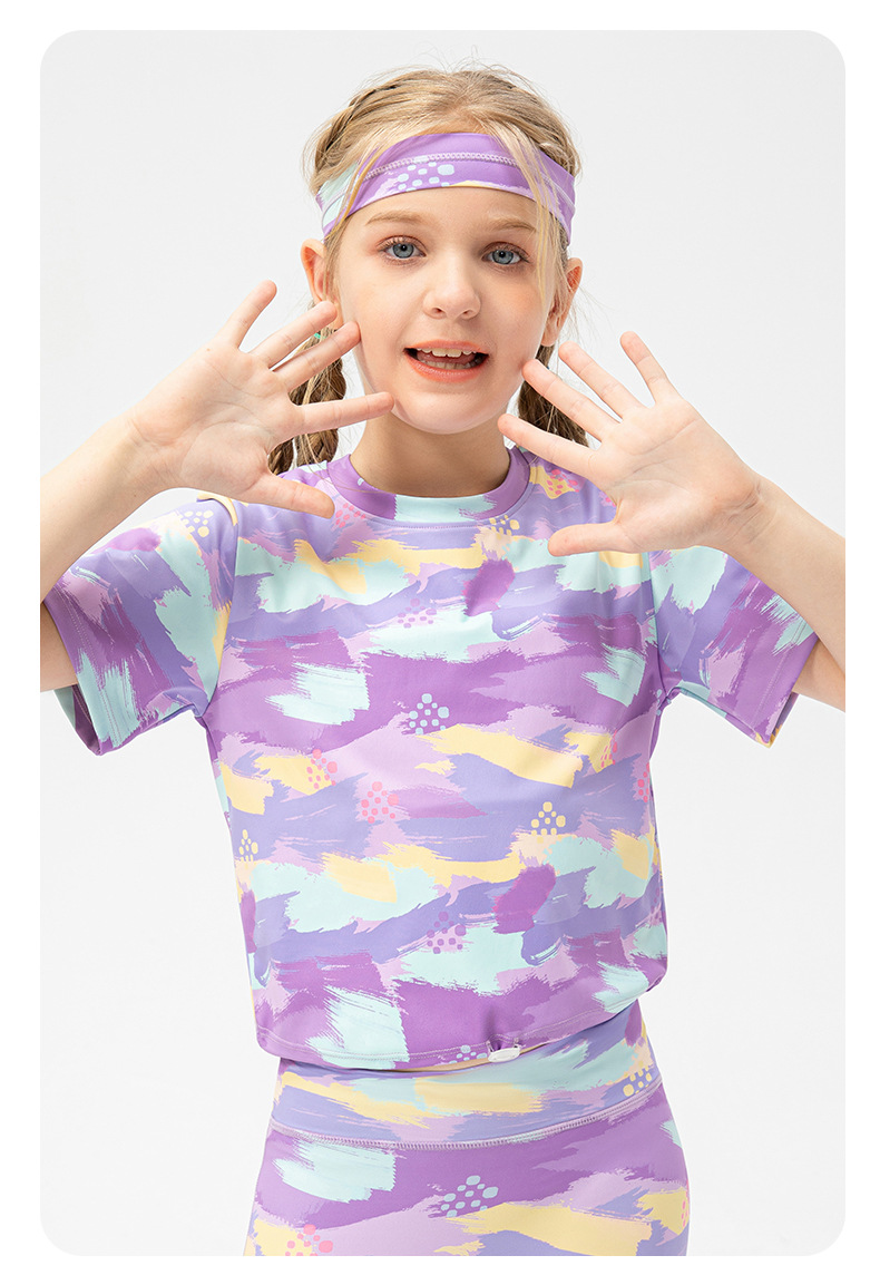 Girls printed short sleeve crop tshirts adjust hem quick dry children running dance kids training t-shirt