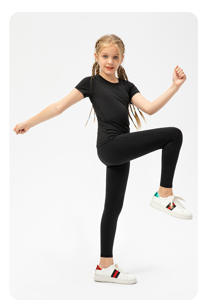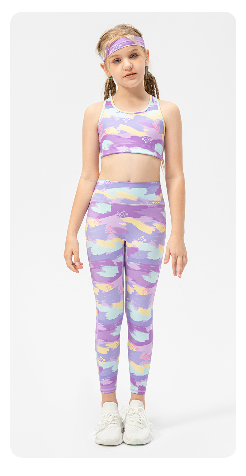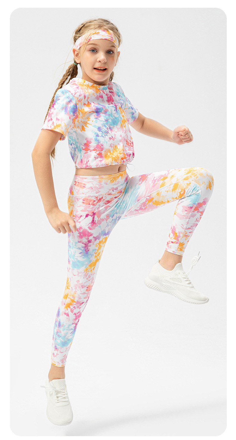 Girls sports tights leggings high stretch quick dry printed children fitness running kids training pants