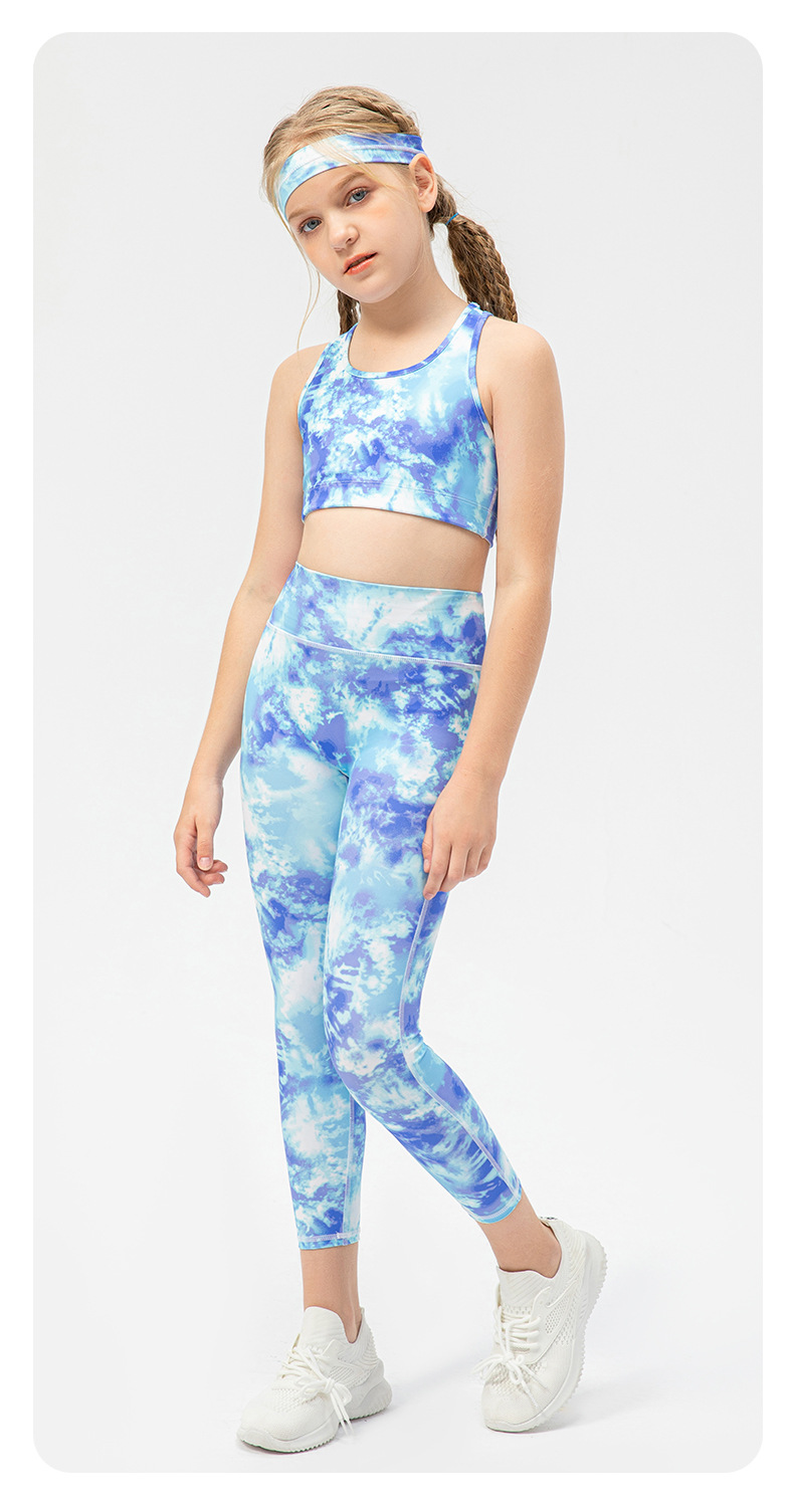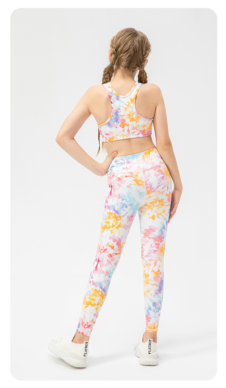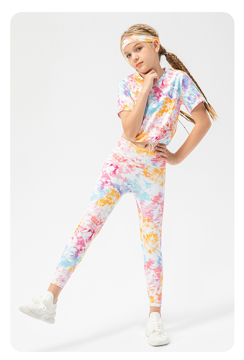 Girls sports tights leggings high stretch quick dry printed children fitness running kids training pants