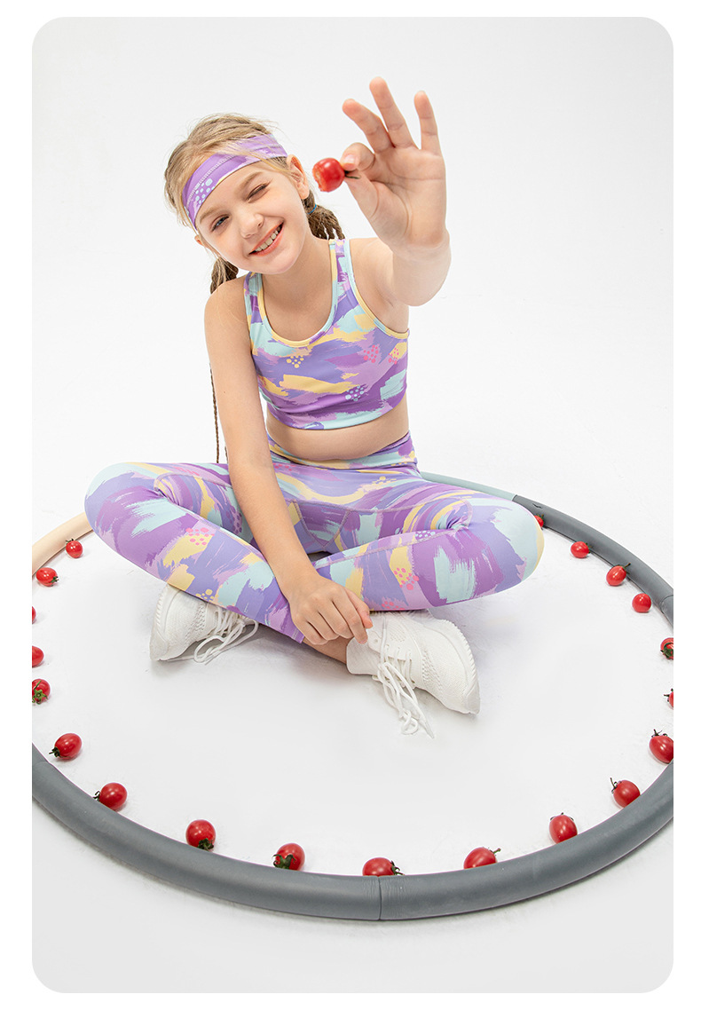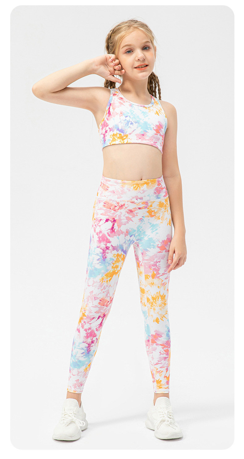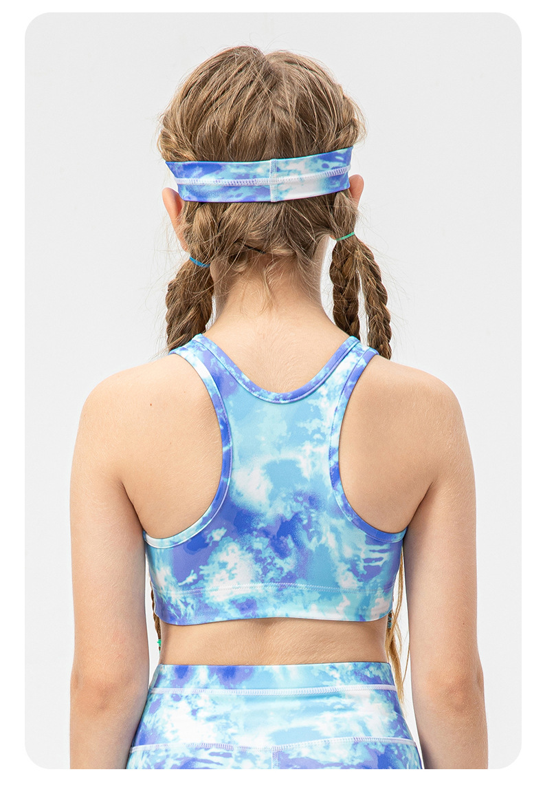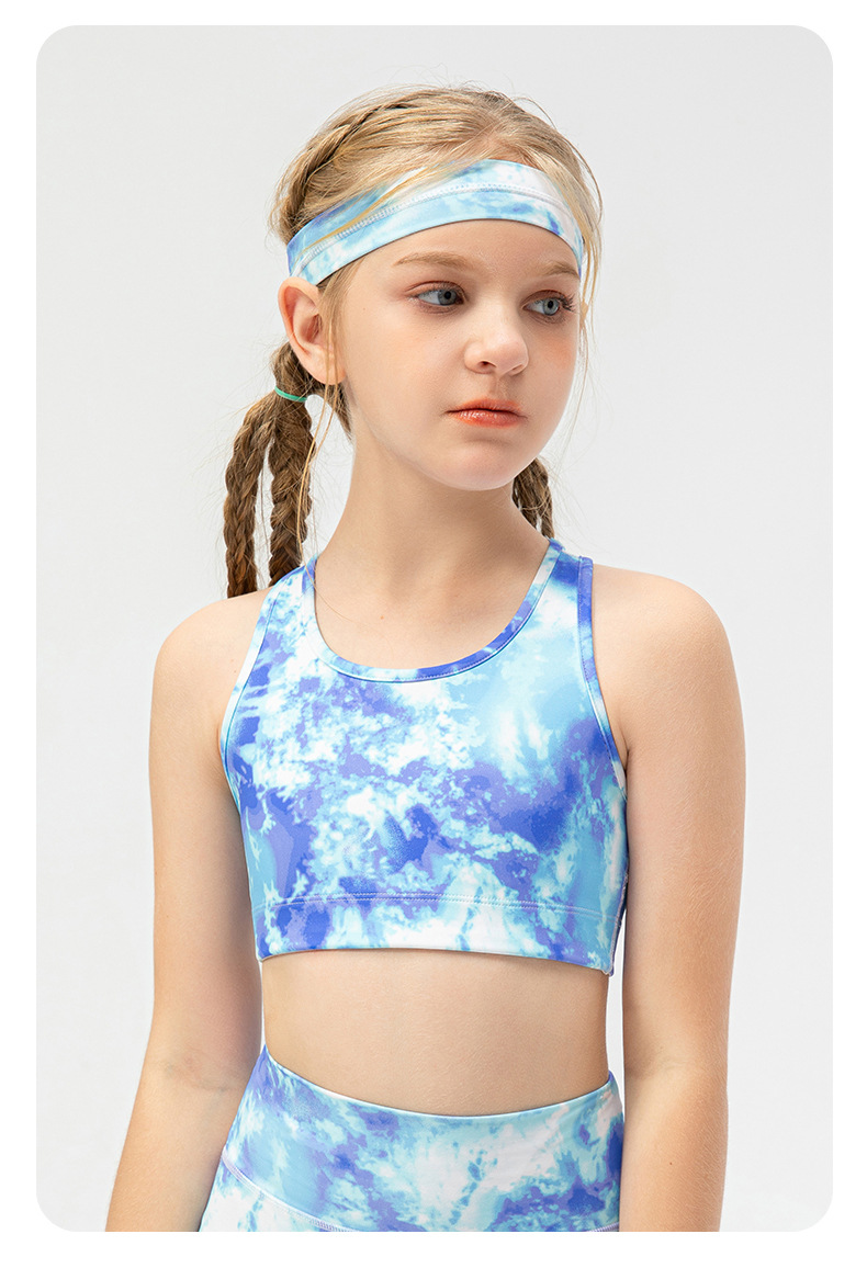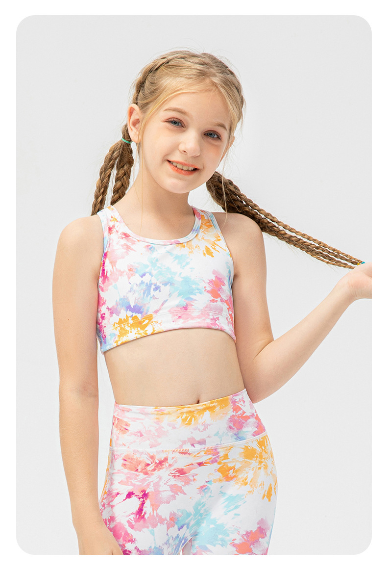 Girls sports vest printed yoga top racerback fitness running children waistcoat dance underwaist