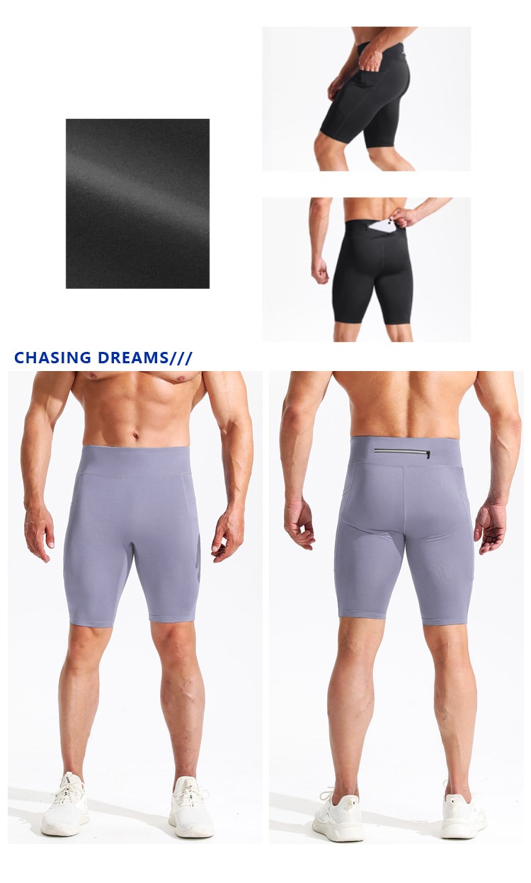 High rise fitness shorts zip pocket tights breathable gym leggings running athletic workout shorts