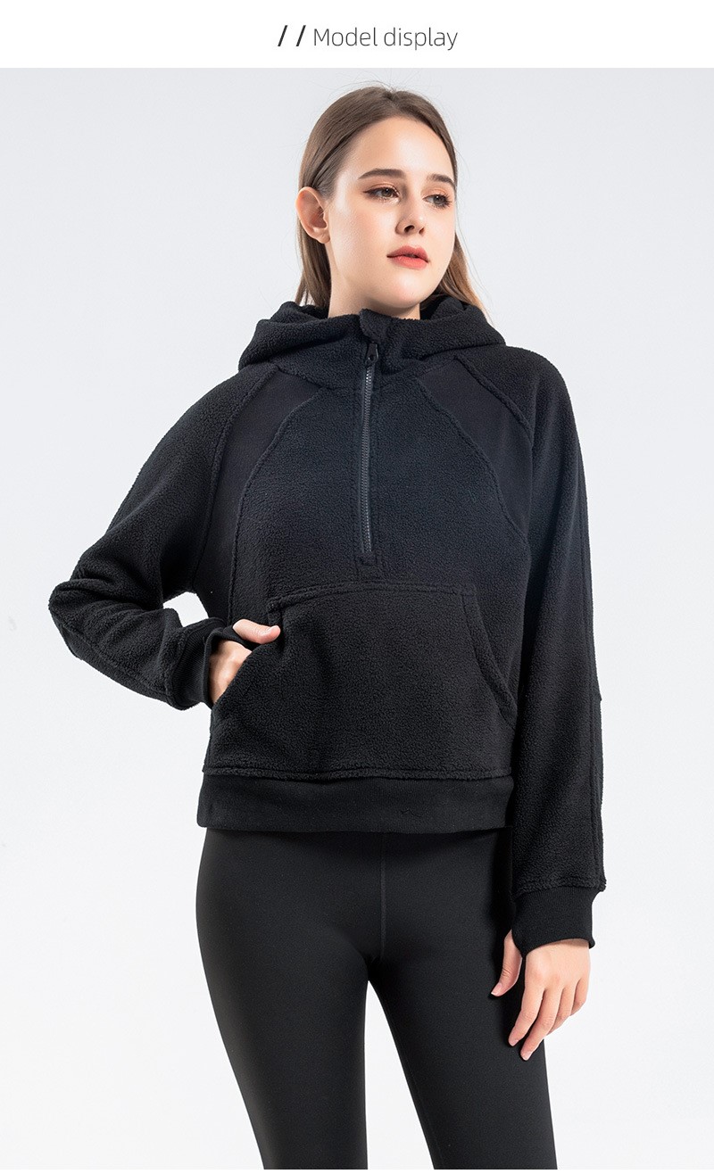 Hoodies | Fashion crop top polar fleece zip hoodies casual sports long sleeve warm sweatshirts
