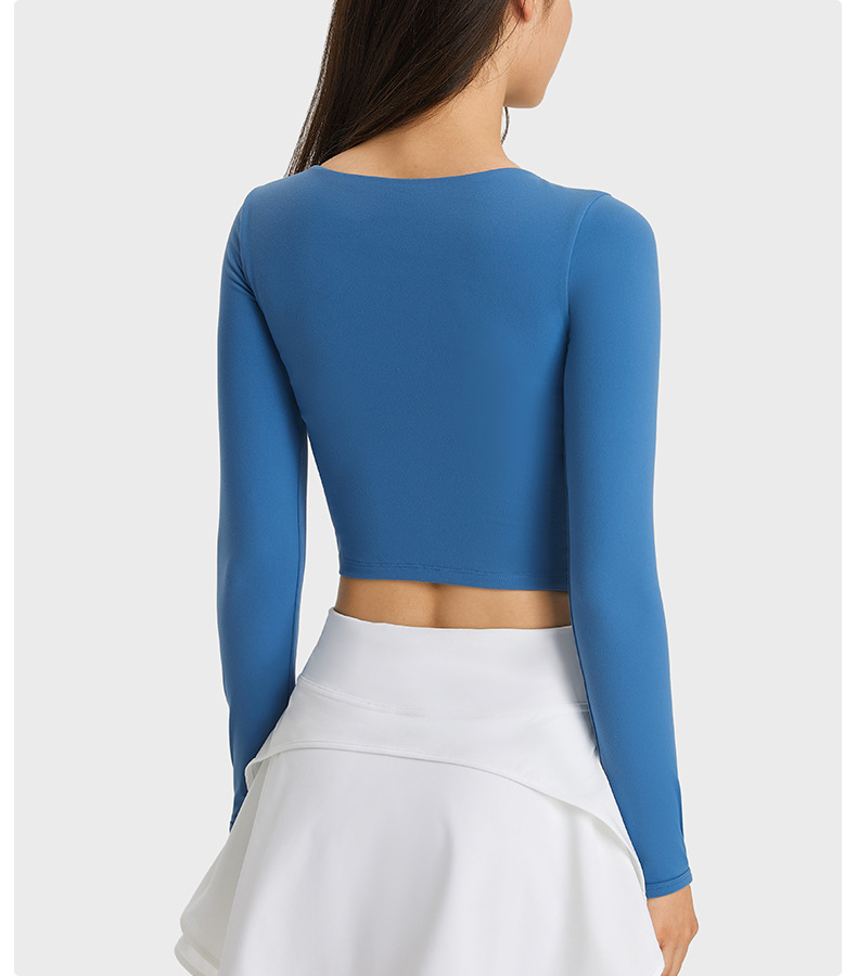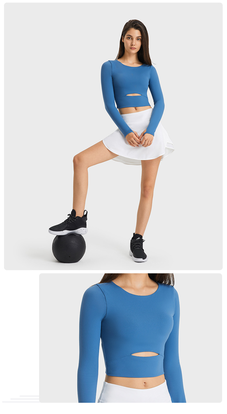 Hot sale F1690 Women Padded Sports Crop Tops Long Sleeve Running T-Shirts Quick Dry Workout Faked Two Pieces Yoga Bra