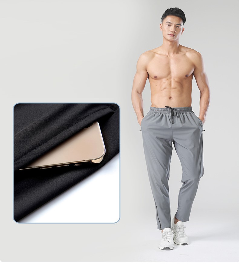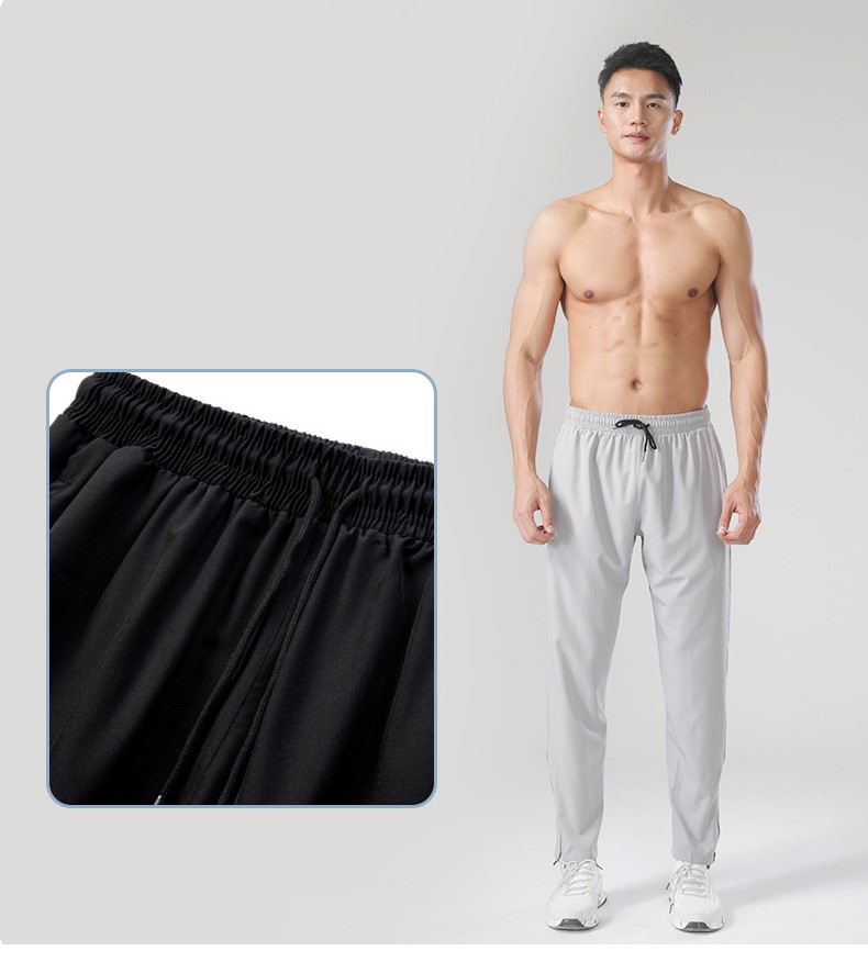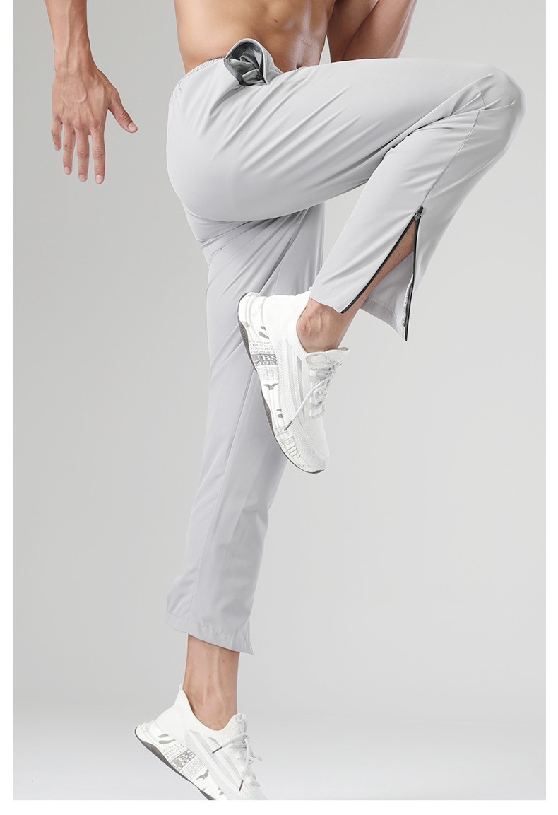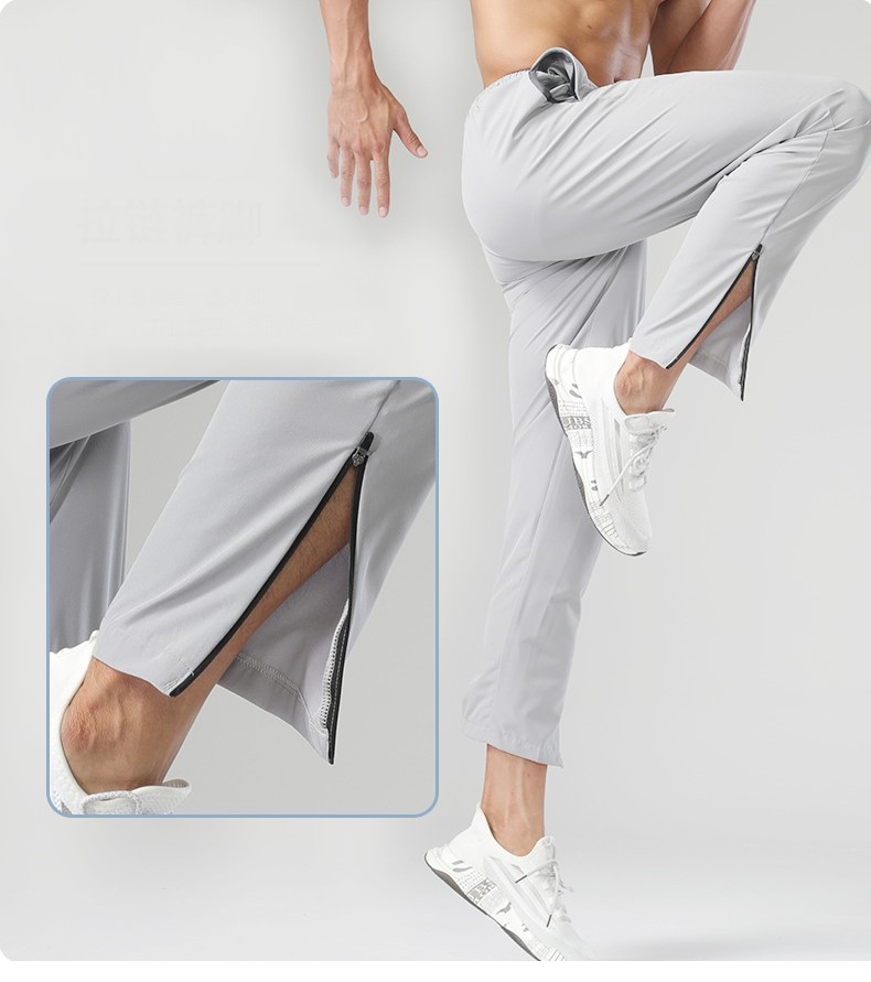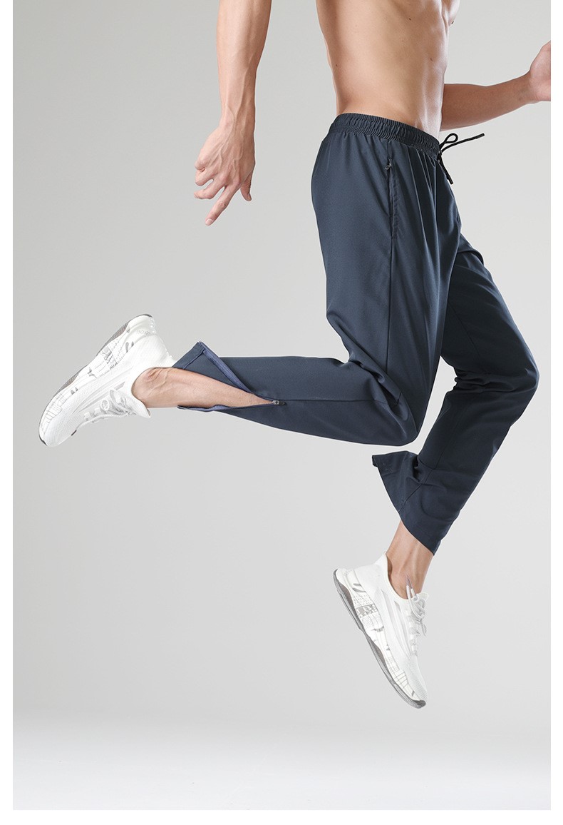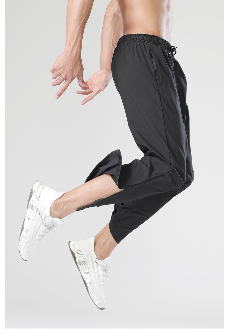Men active sweatpants outdoor basketball running loose quick dry workout pants with leg zip open