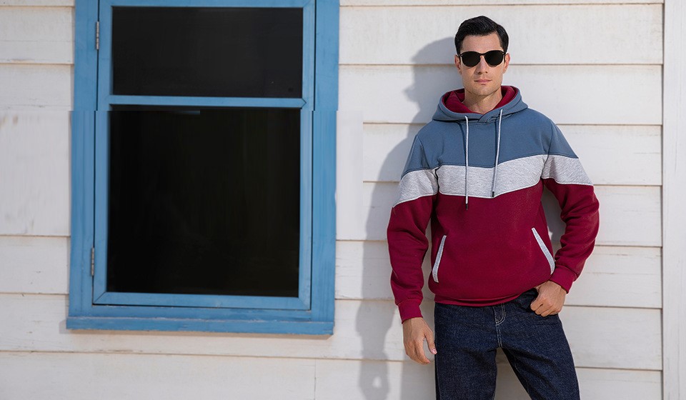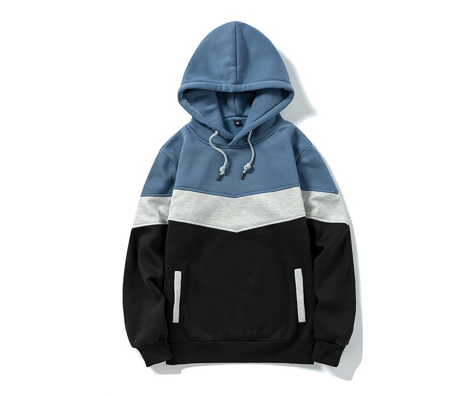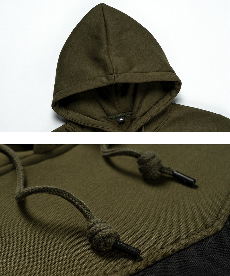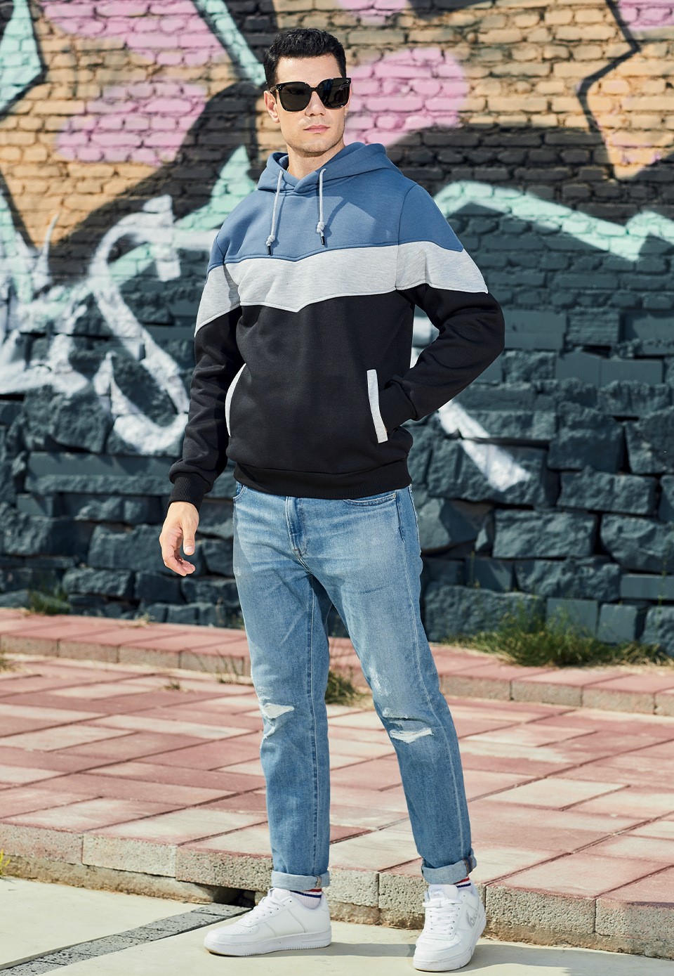 Men color block pullover hoodies casual outdoor running drawstring fleece long sleeve sweatshirts