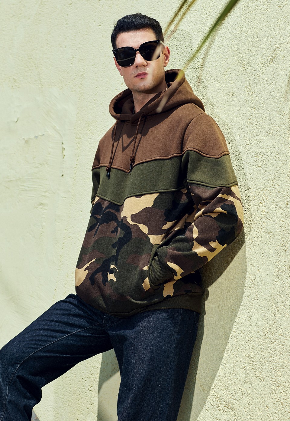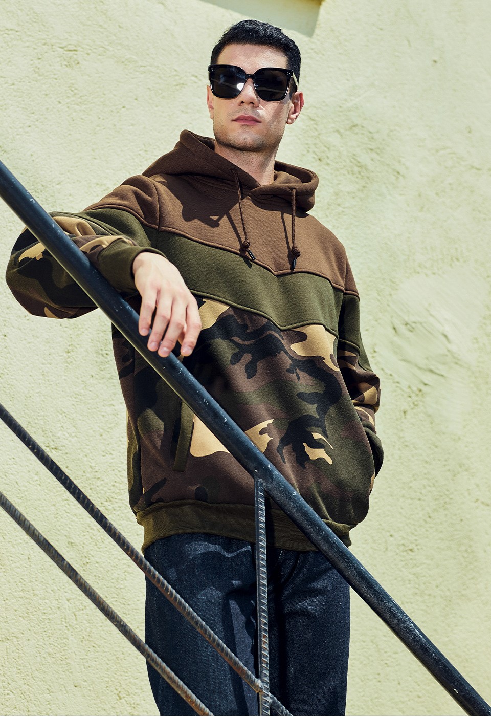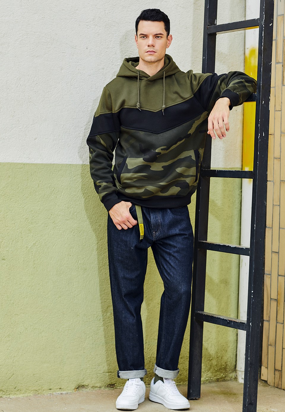 Men color block pullover hoodies casual outdoor running drawstring fleece long sleeve sweatshirts