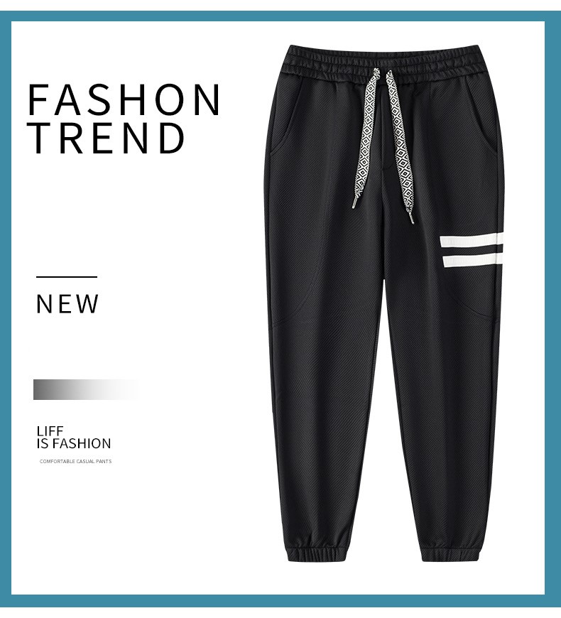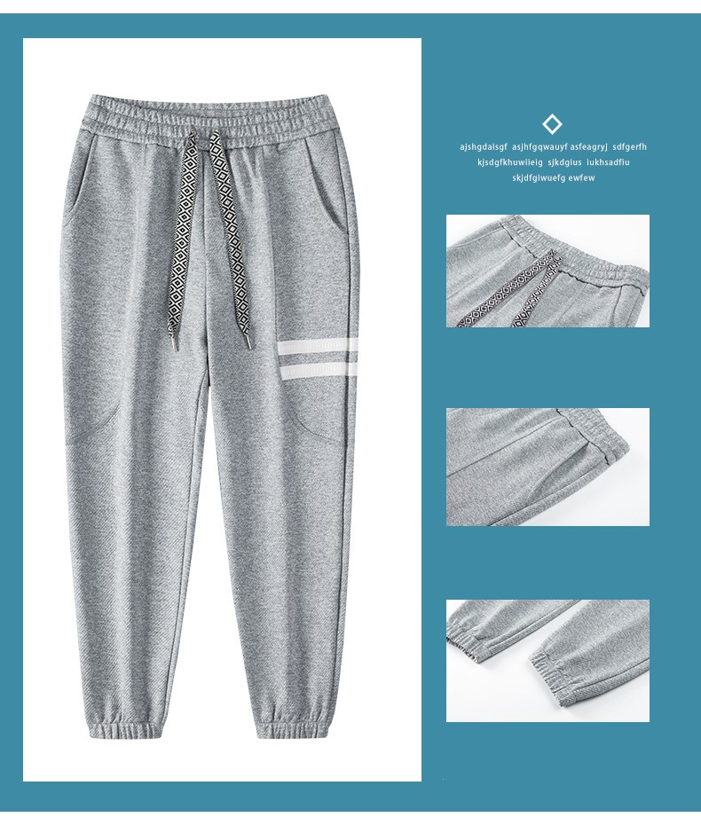 Men fall winter running jogger pants drawstring loose oversized stripe casual sports sweatpants