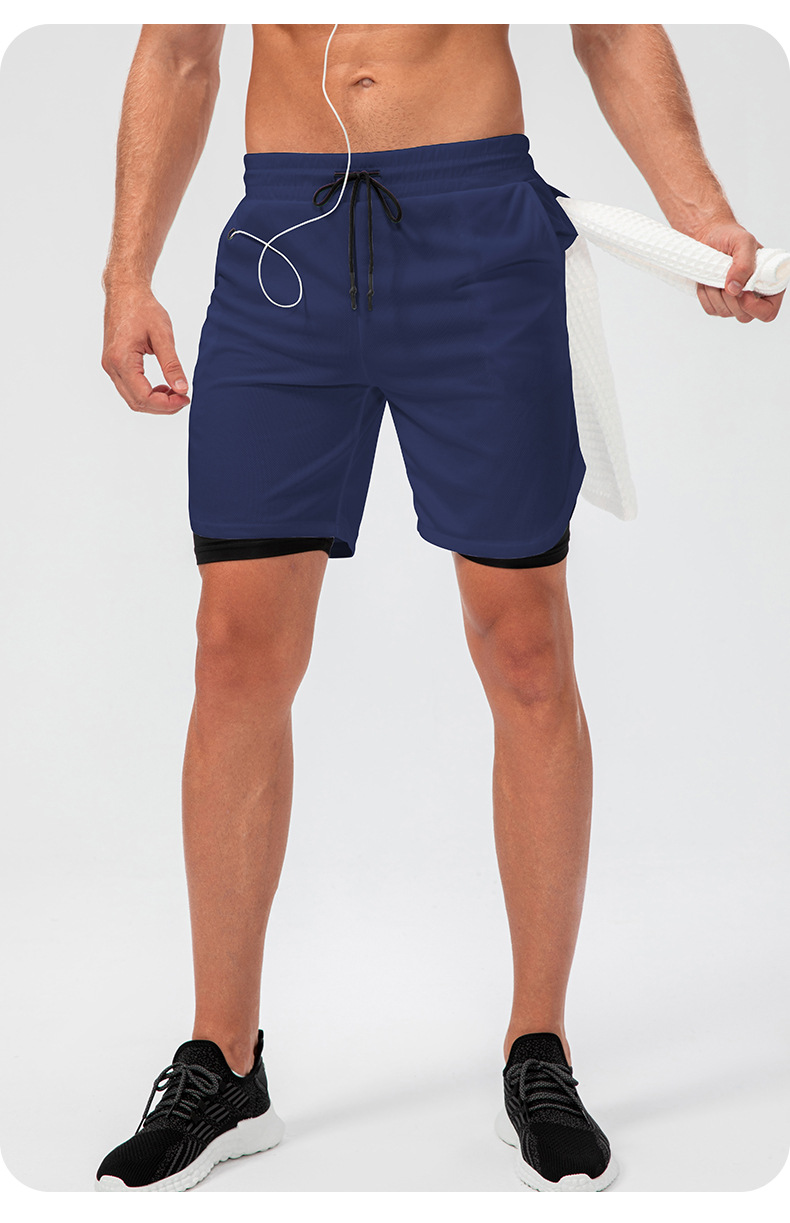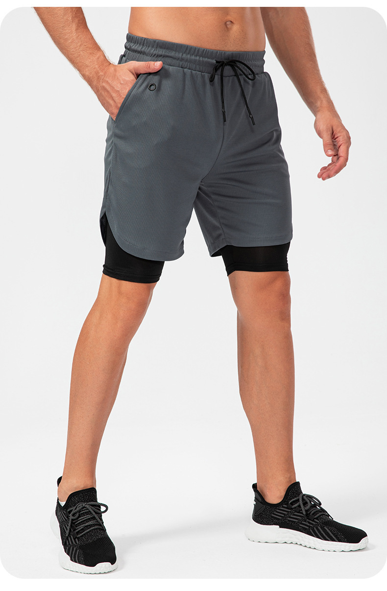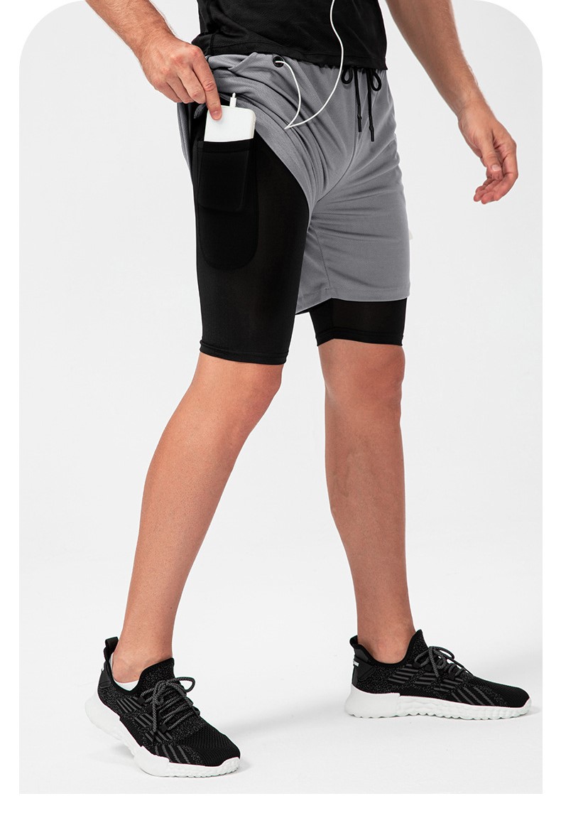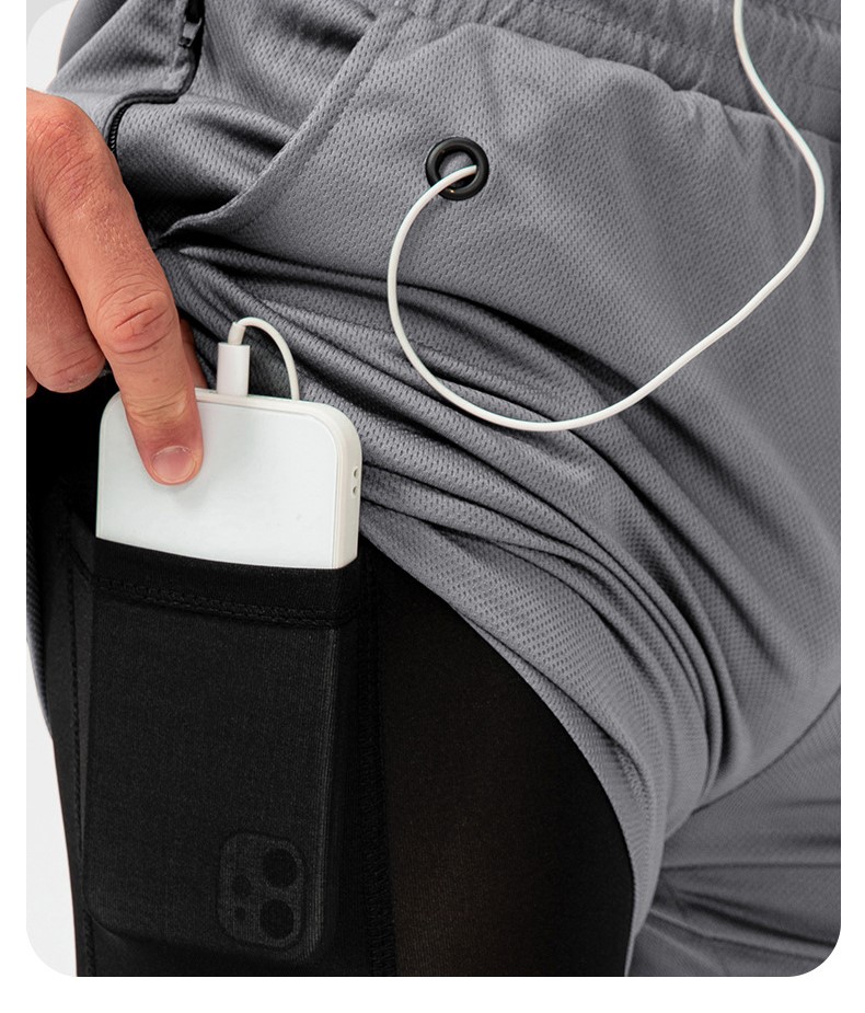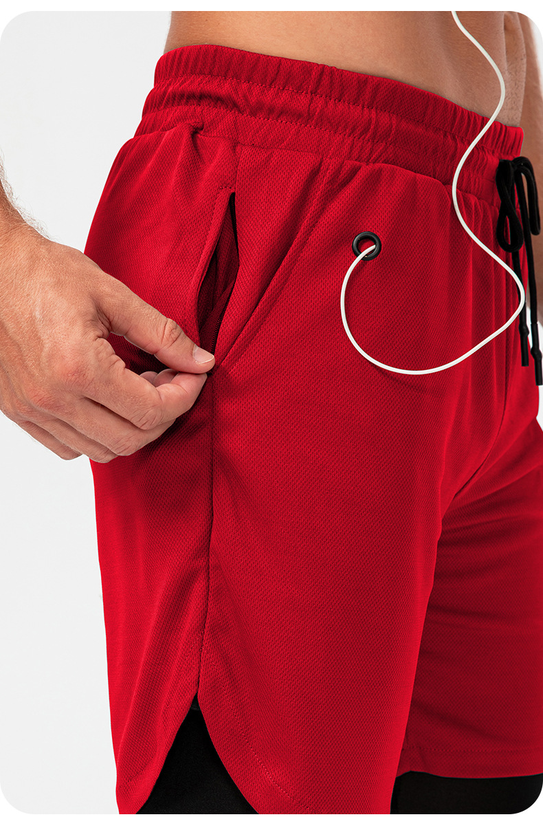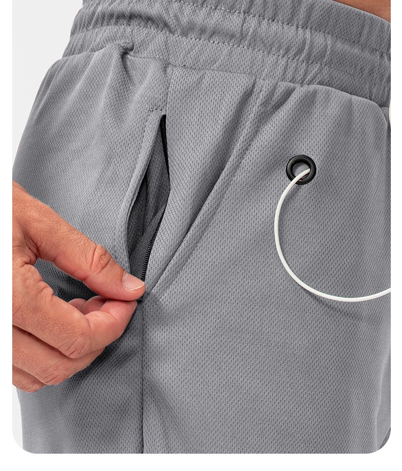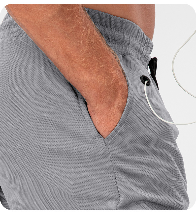 Men fitness shorts quick-dry running training headphone hole sweatpants with pocket inner