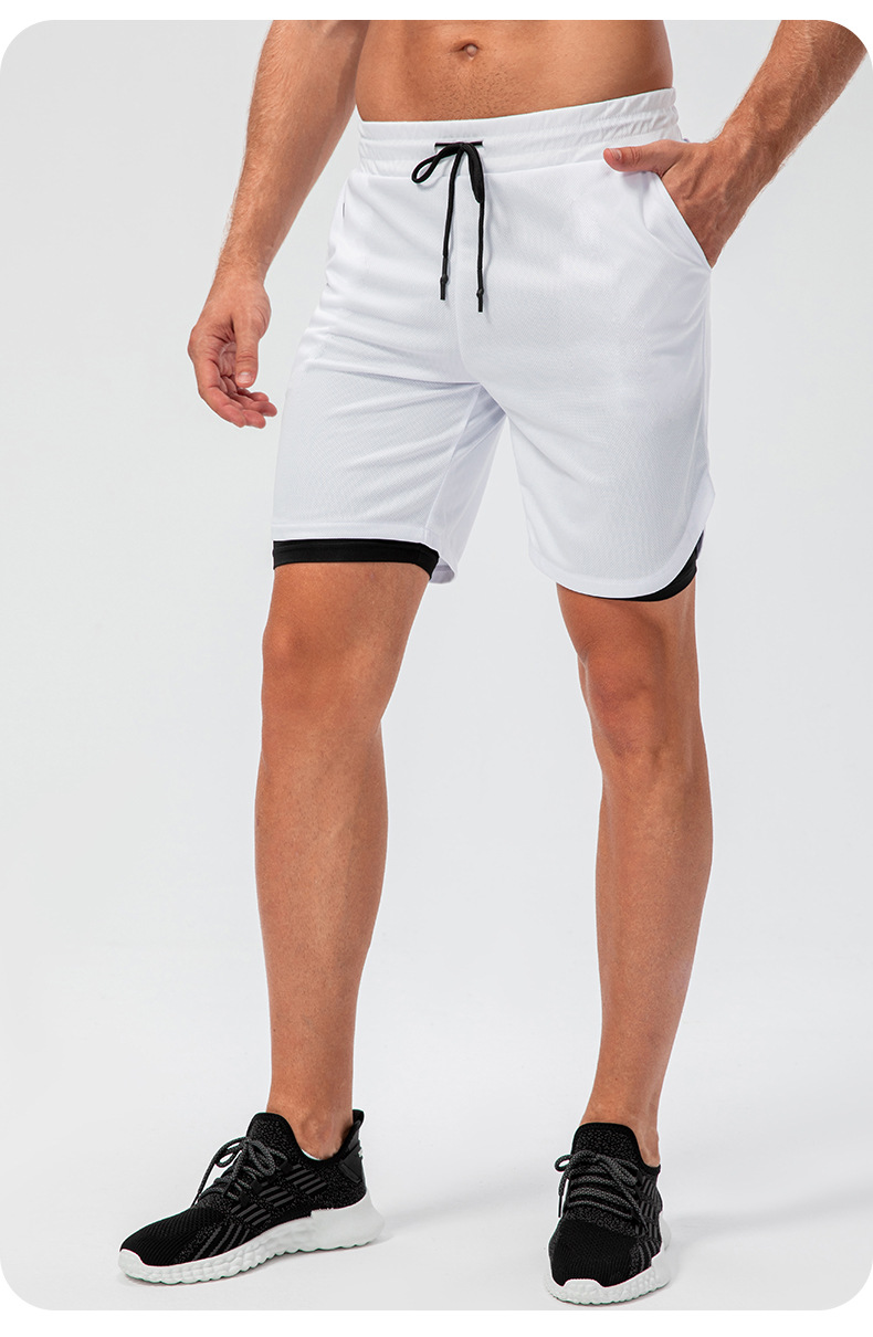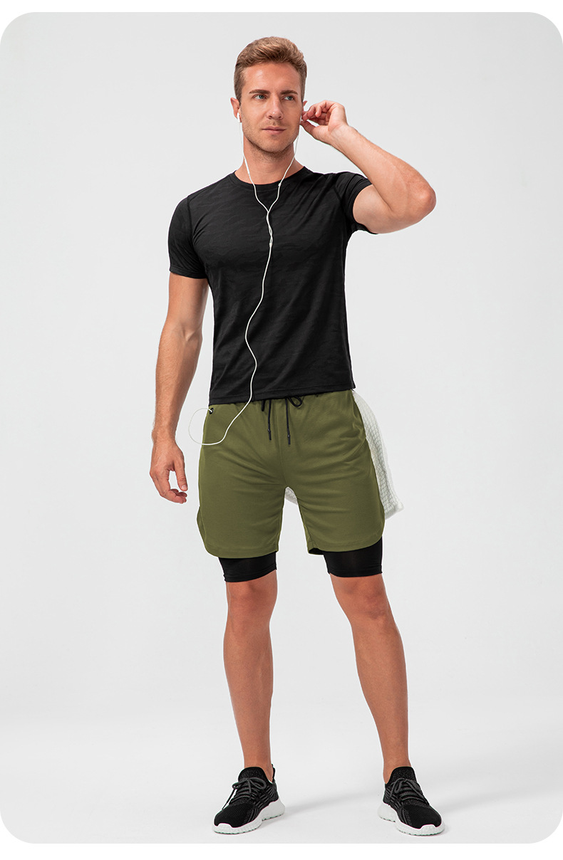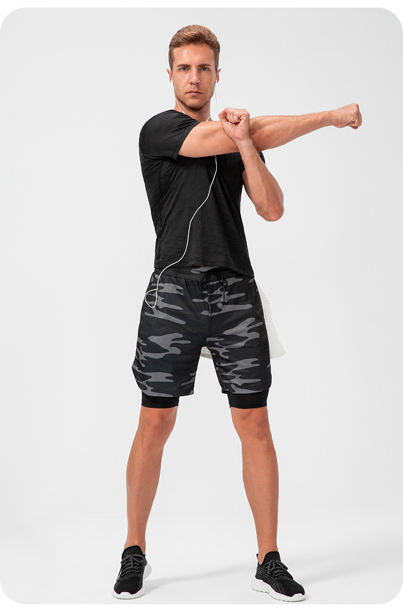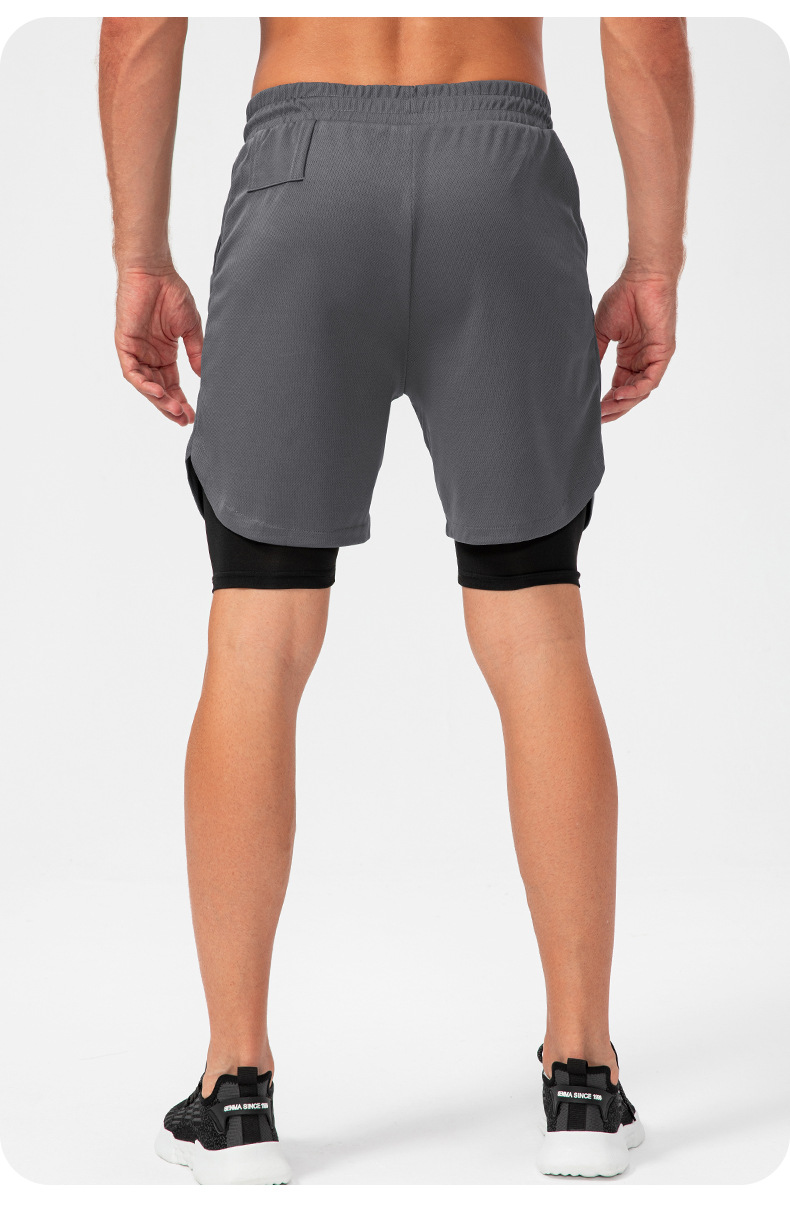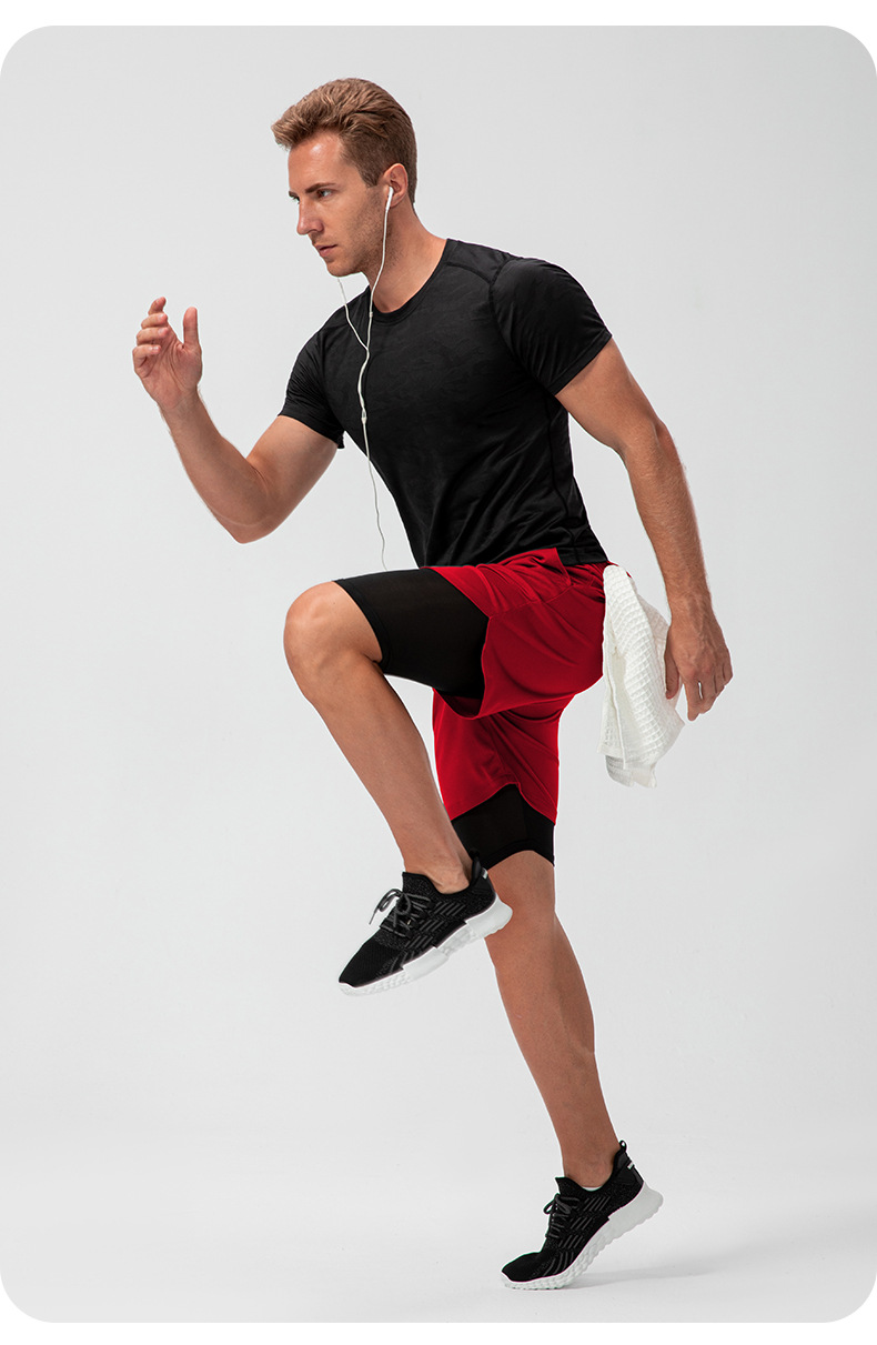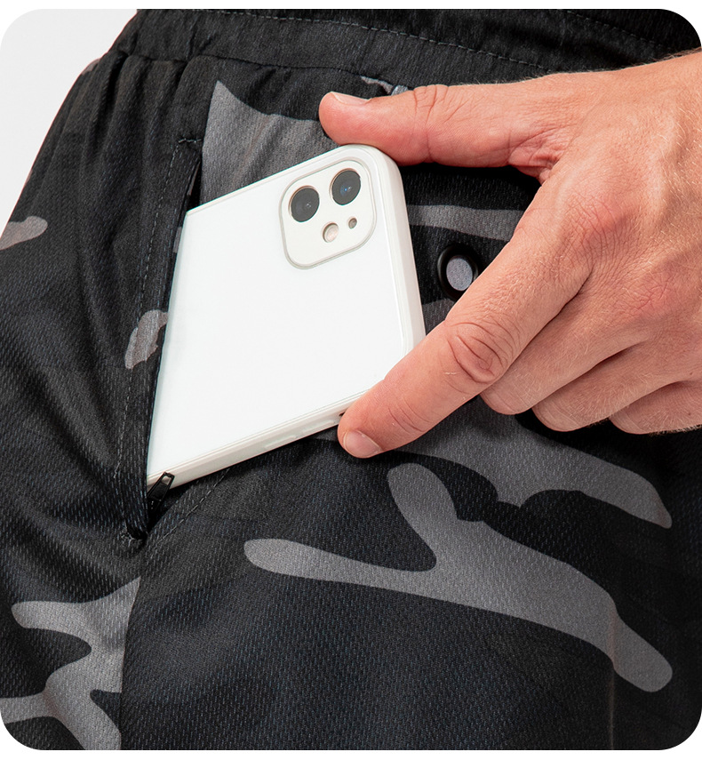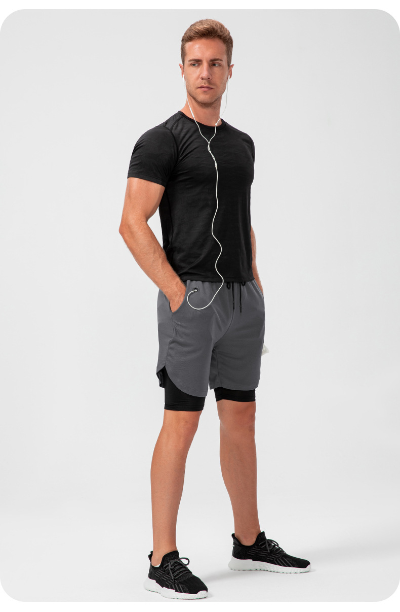 Men fitness shorts quick-dry running training headphone hole sweatpants with pocket inner