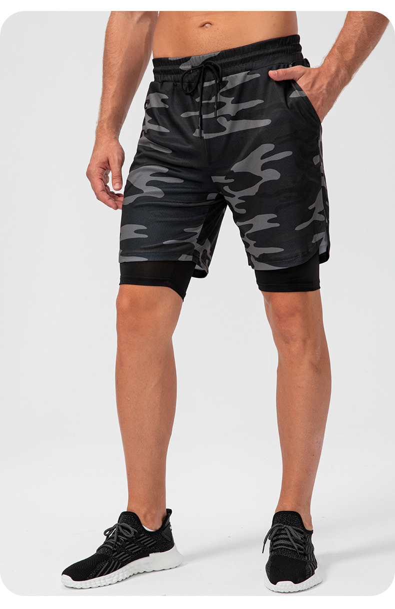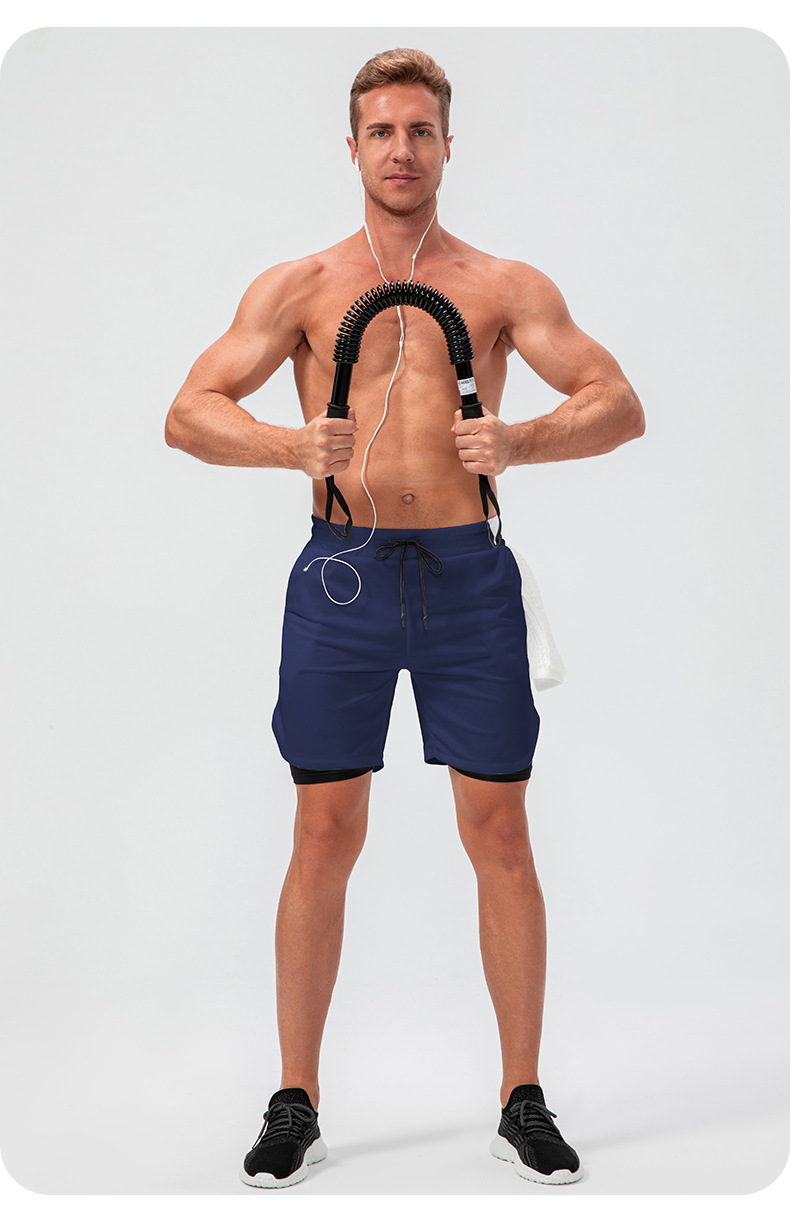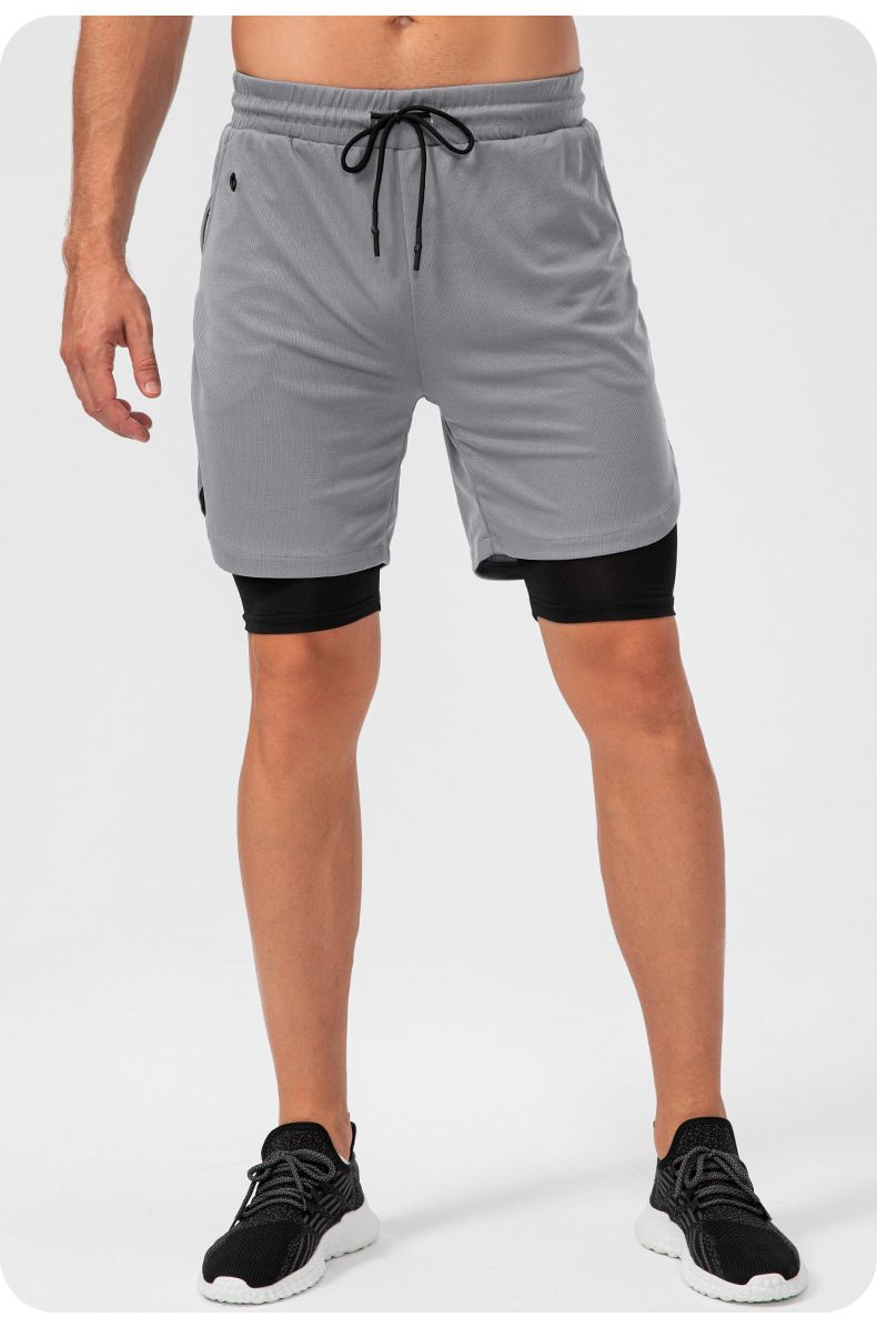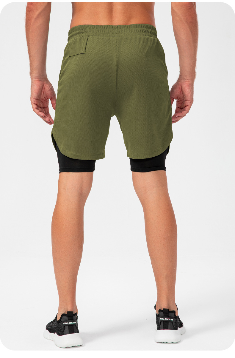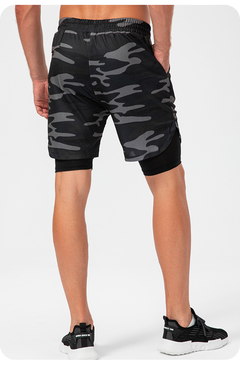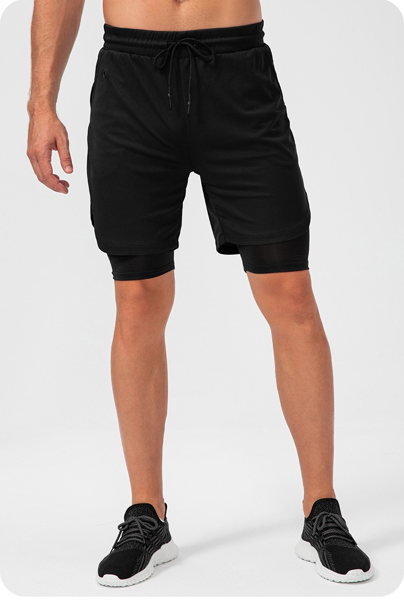 Men fitness shorts quick-dry running training headphone hole sweatpants with pocket inner