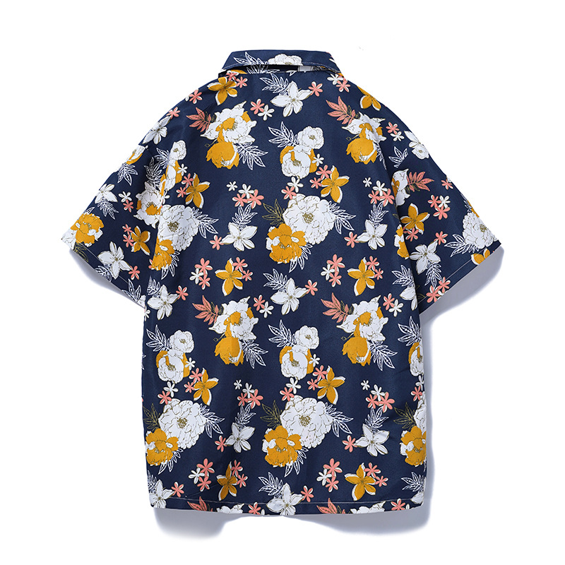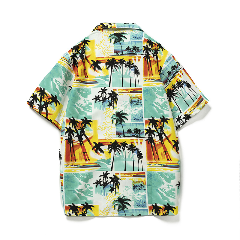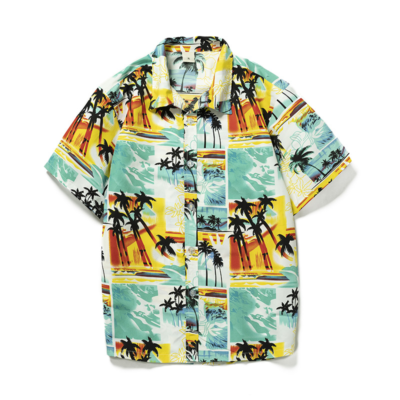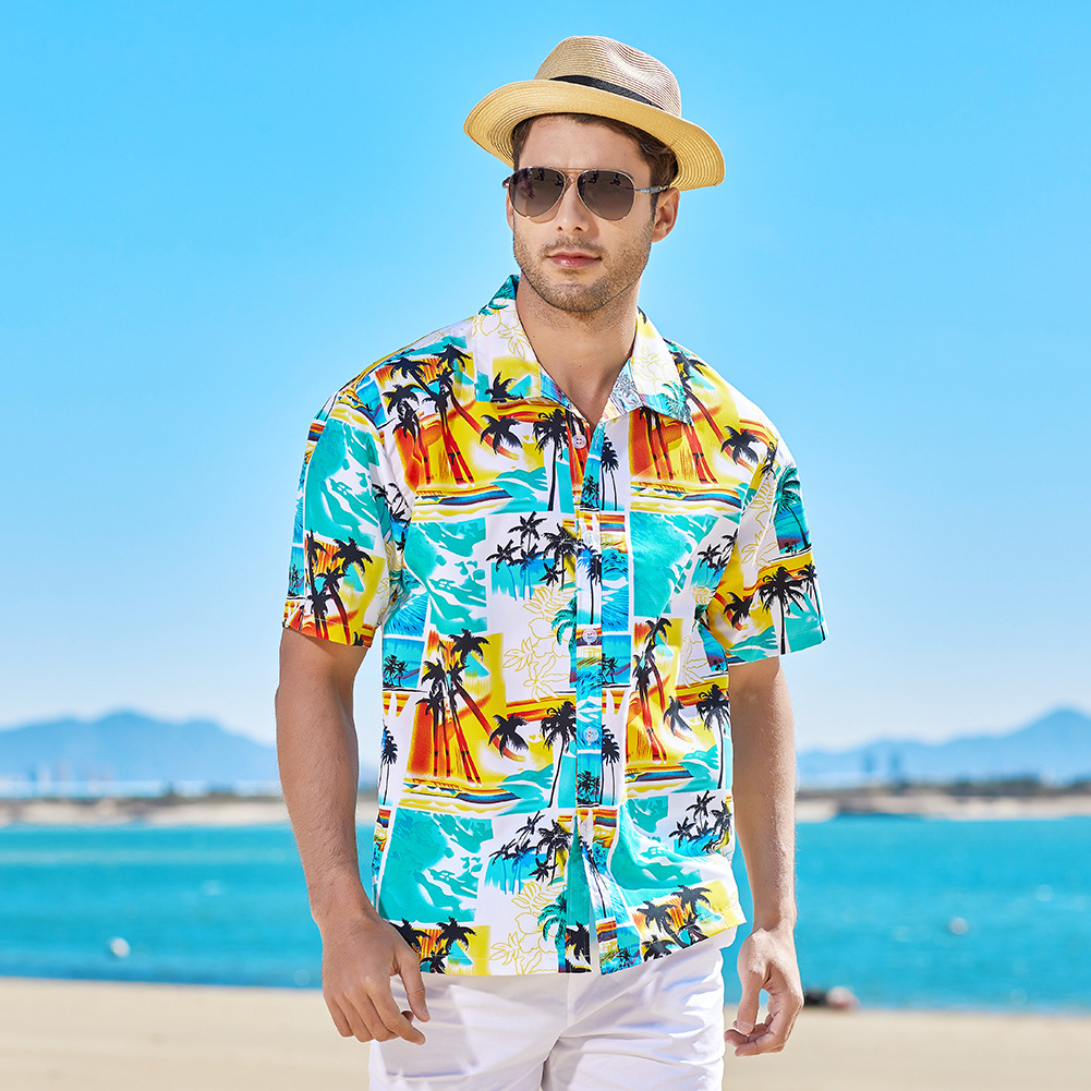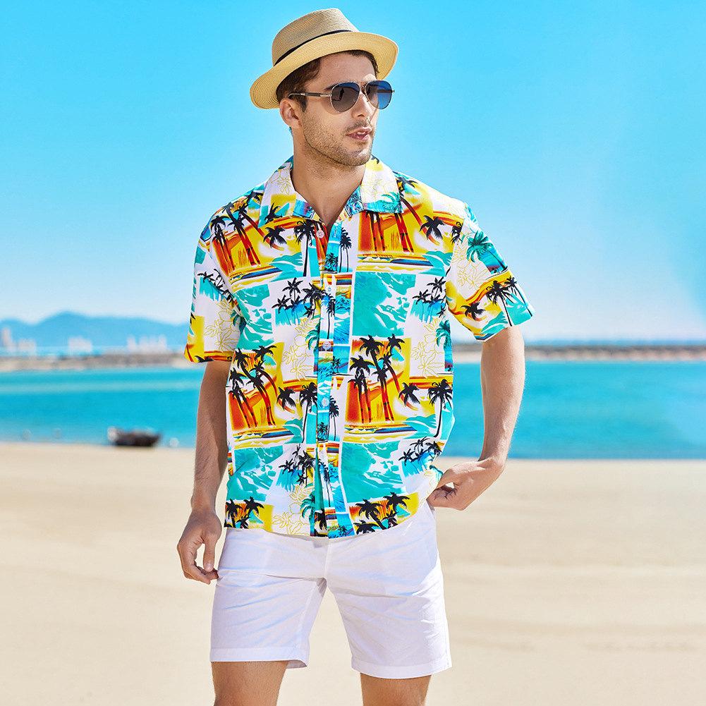 Men hawaiian beach shirts casual loose button down summer retro print short sleeve holiday Shirt