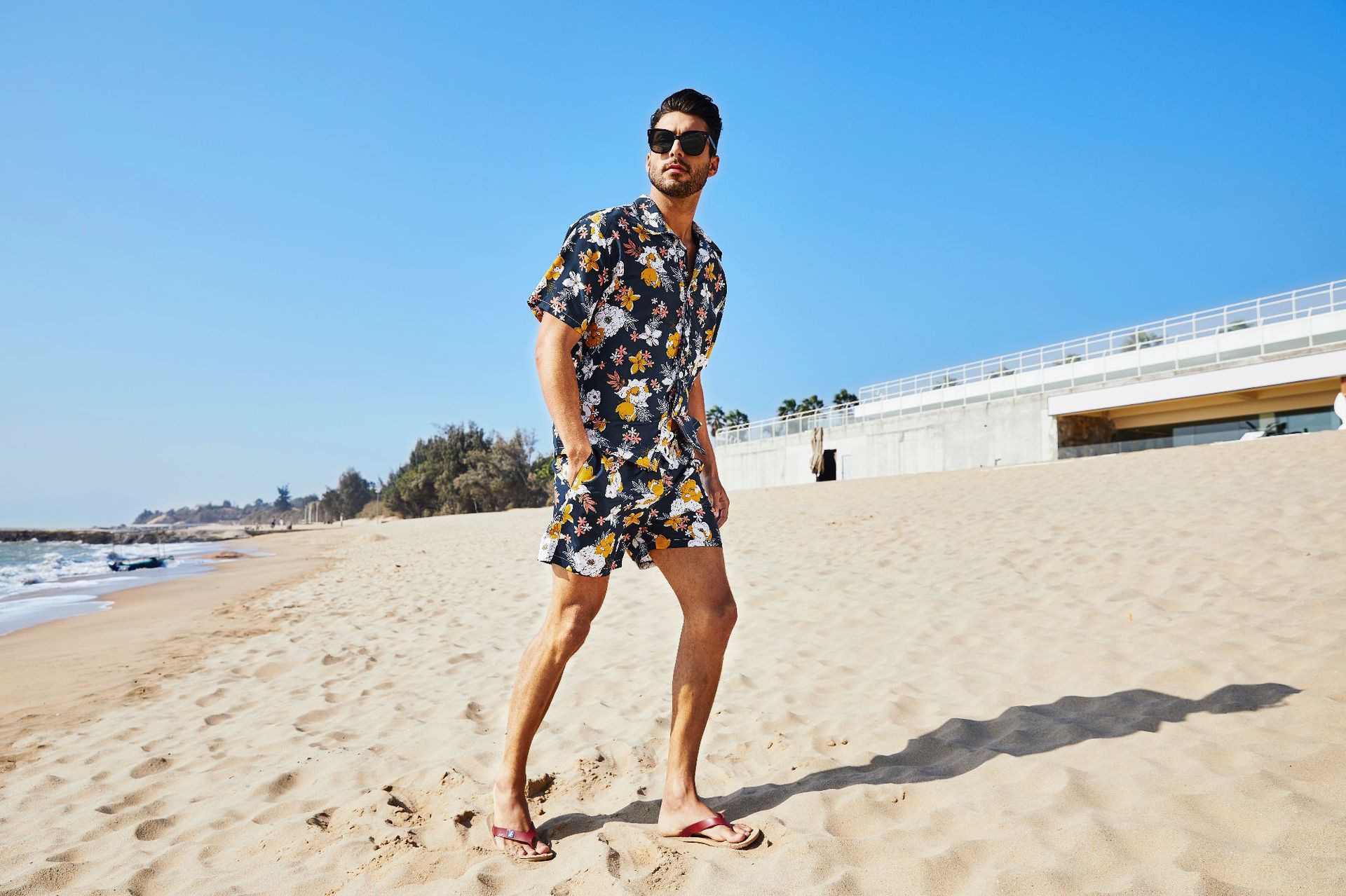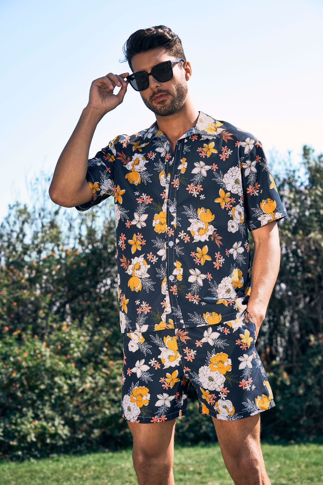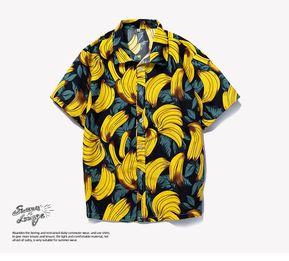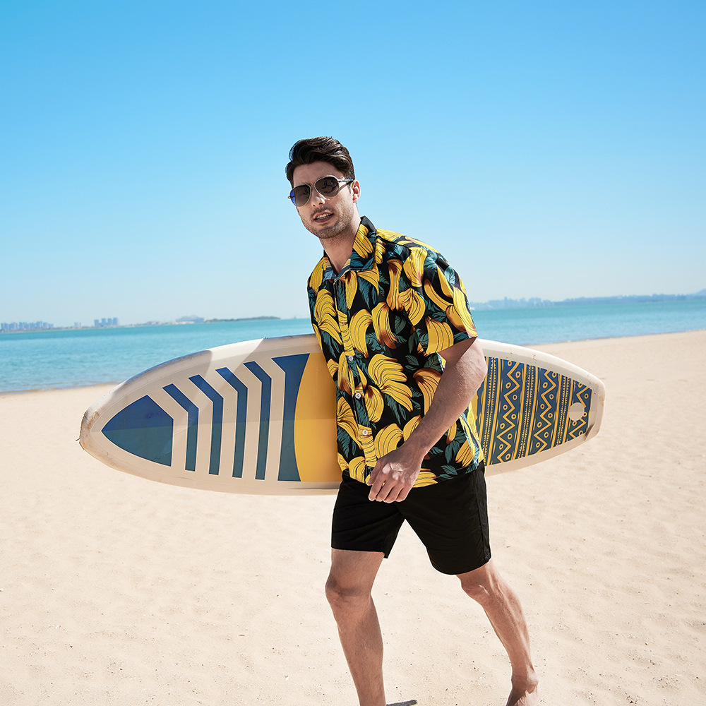 Men hawaiian beach shirts casual loose button down summer retro print short sleeve holiday Shirt