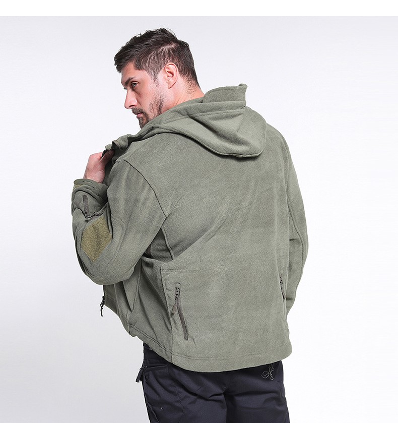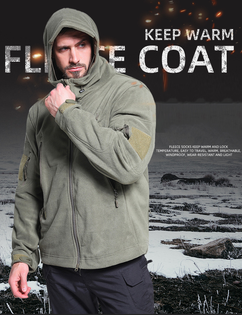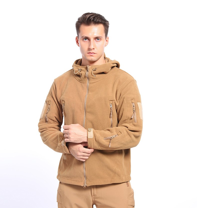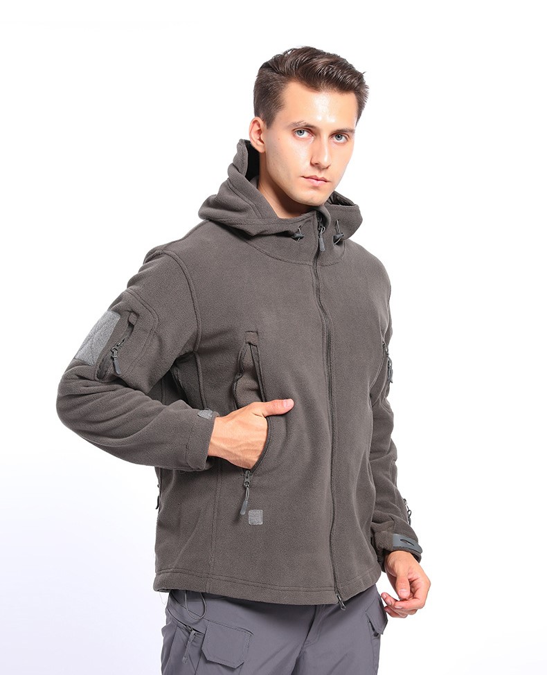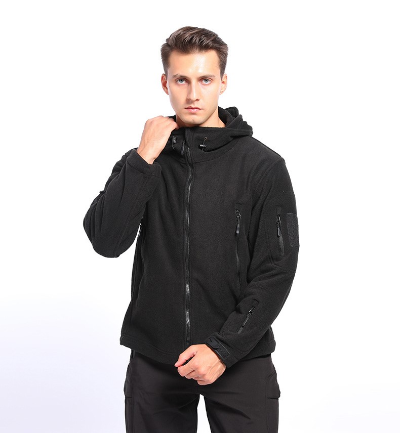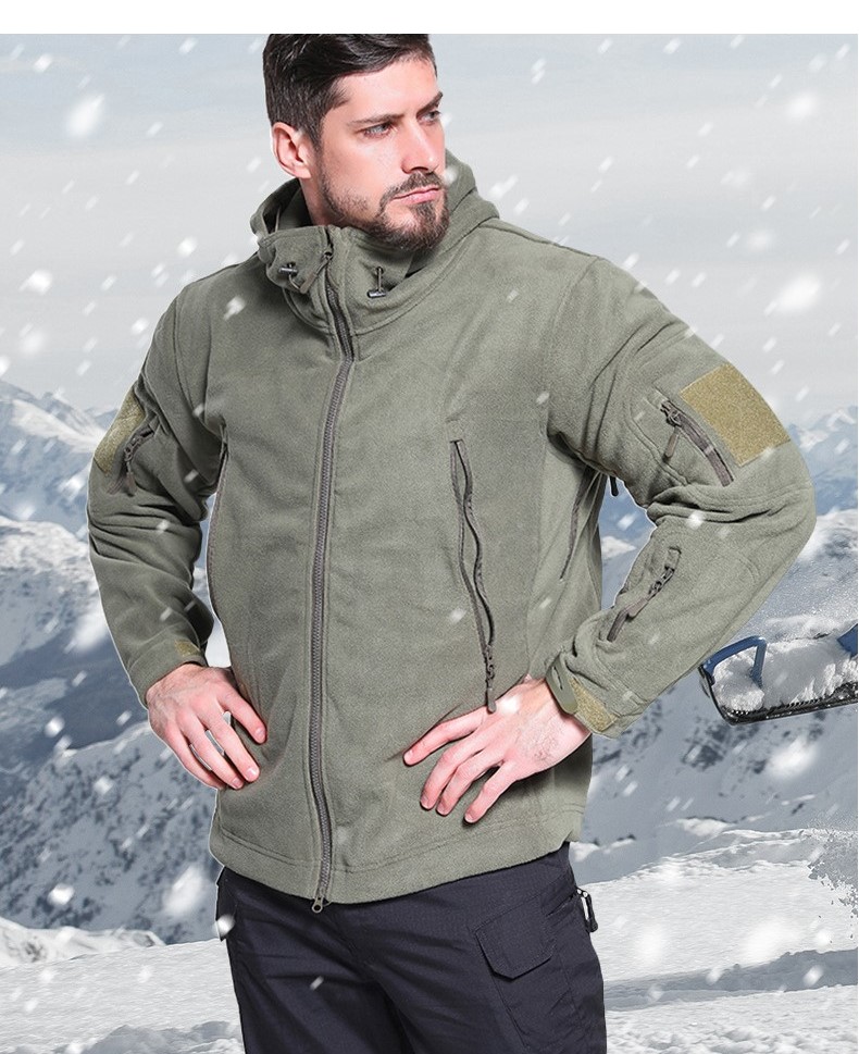 Men hooded polar fleece warm coat outdoor windbreak winter jacket with multi zip pockets