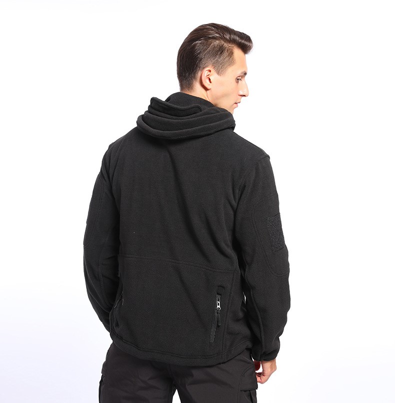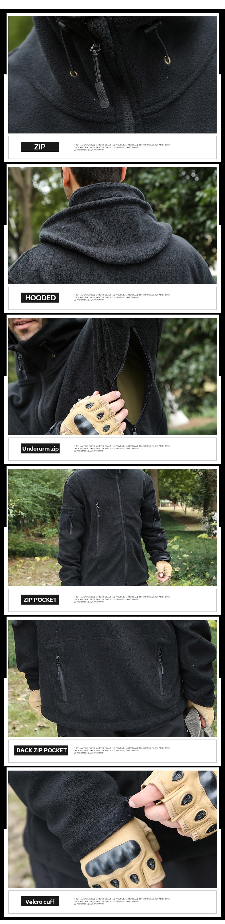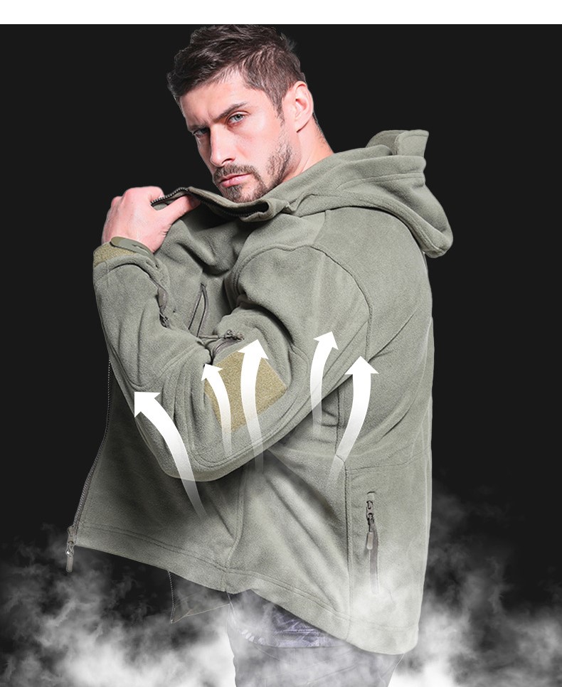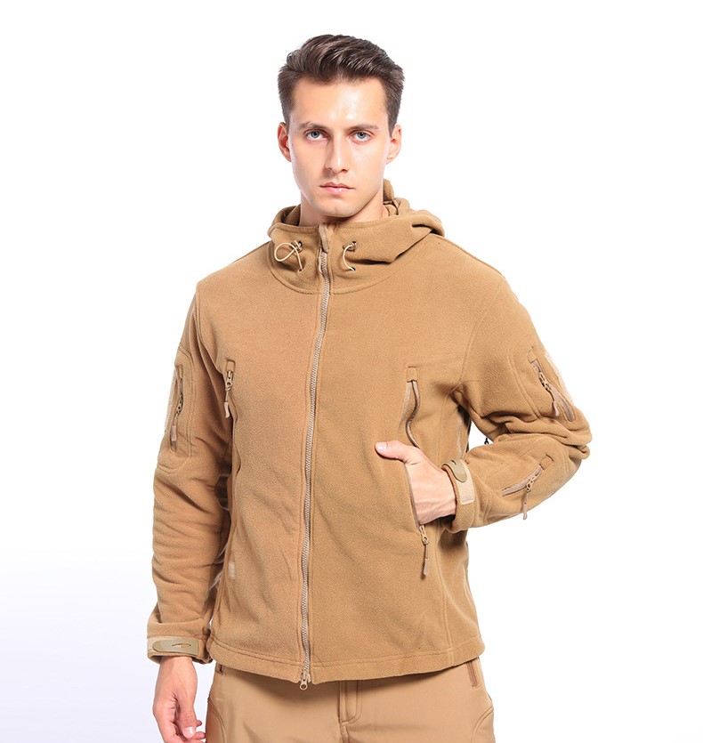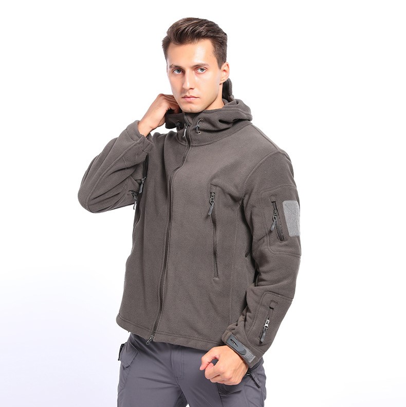 Men hooded polar fleece warm coat outdoor windbreak winter jacket with multi zip pockets