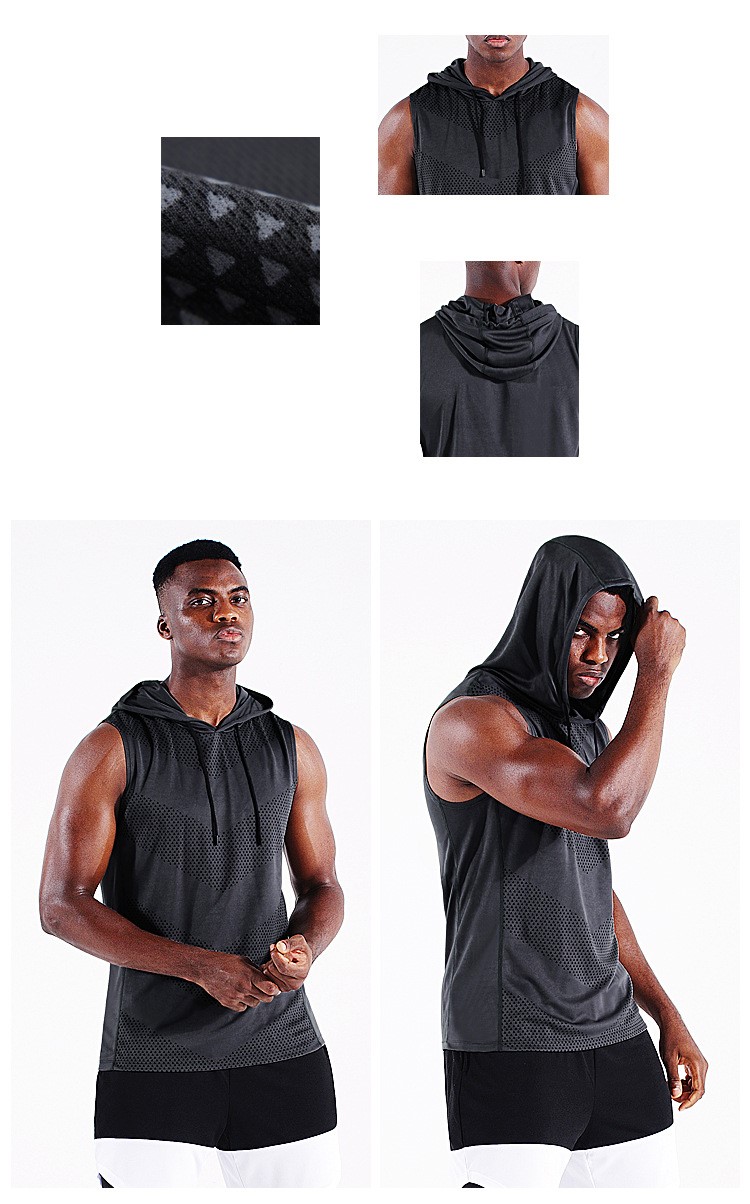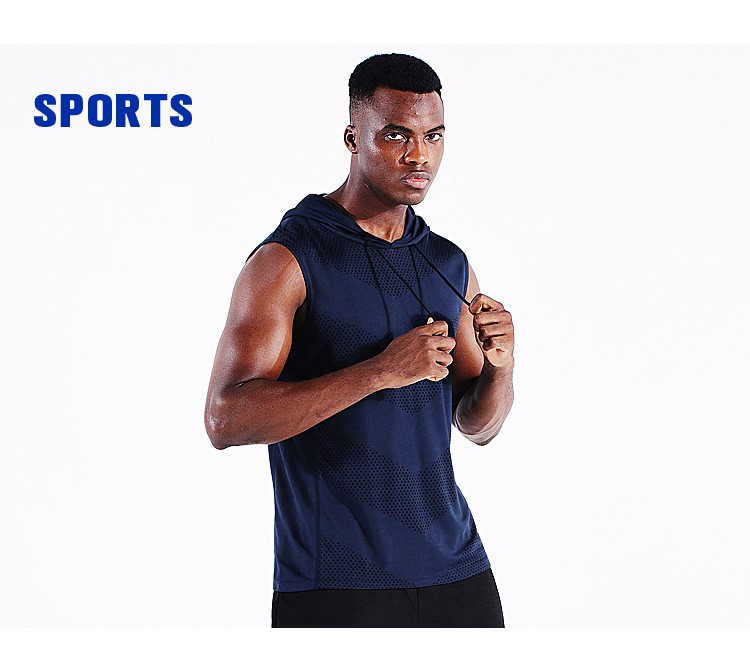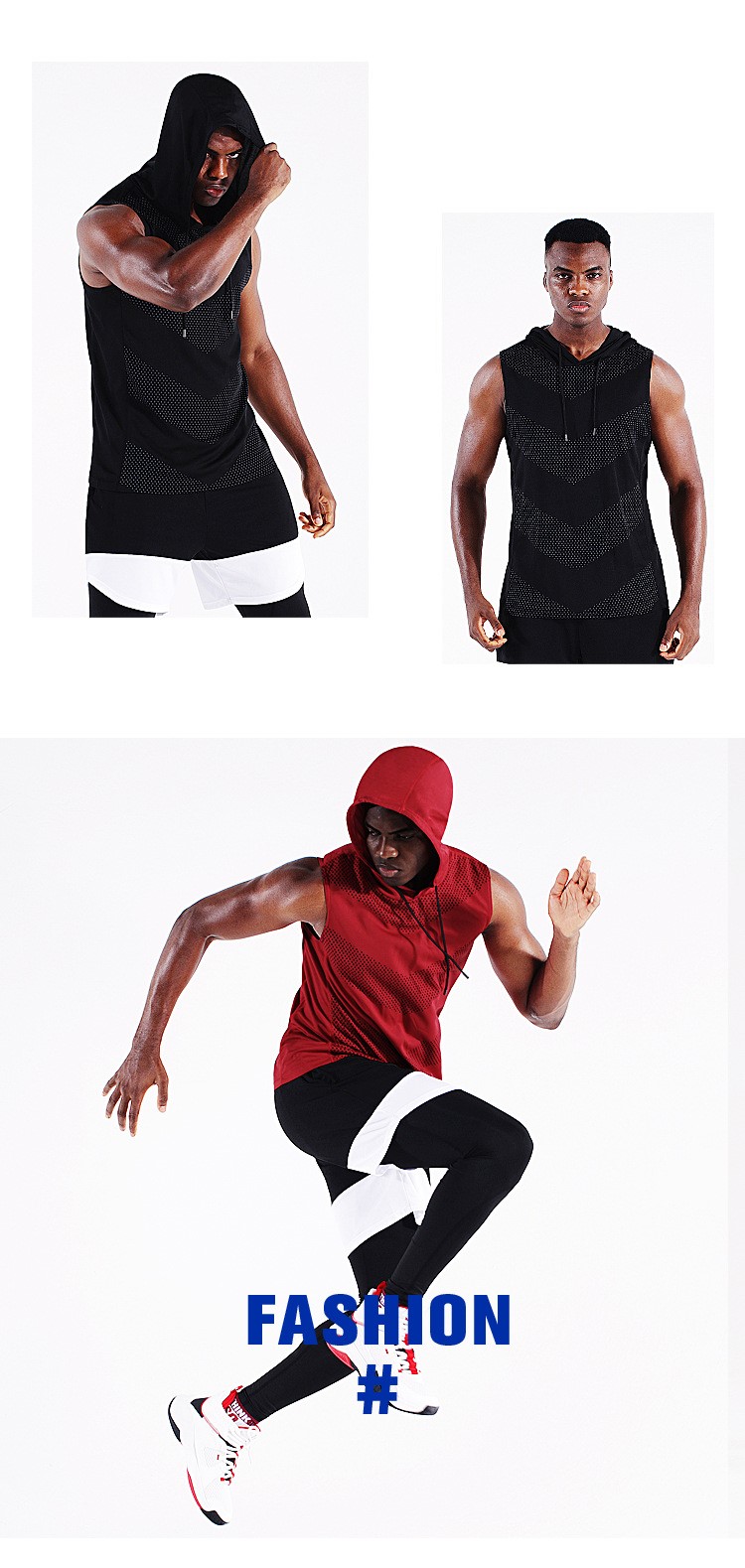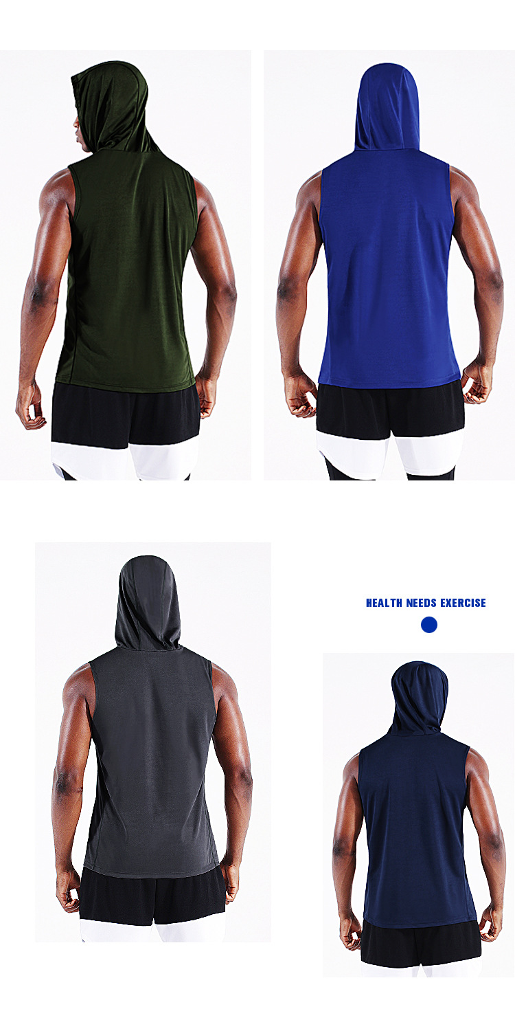 Men hooded tank top gym loose t-shirt fashion fitness workout running quick-dry sleeveless vest