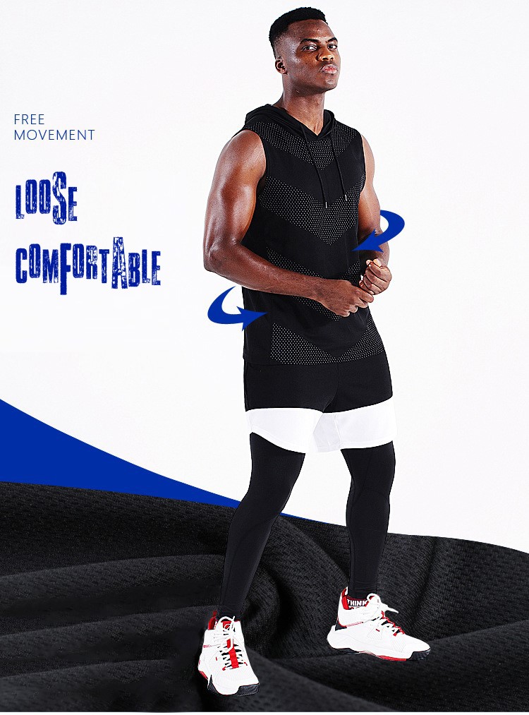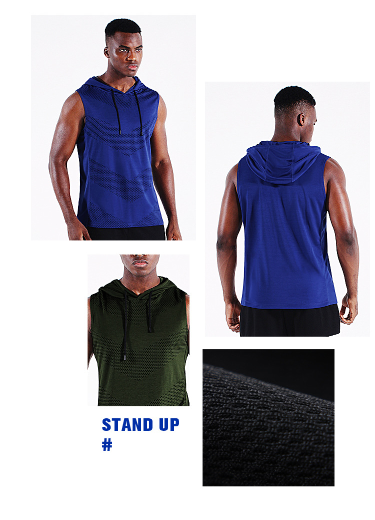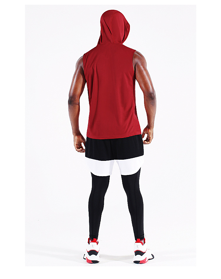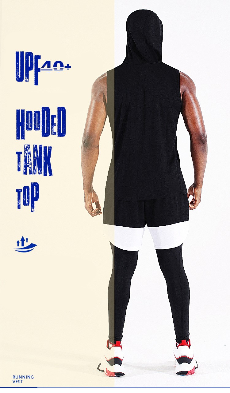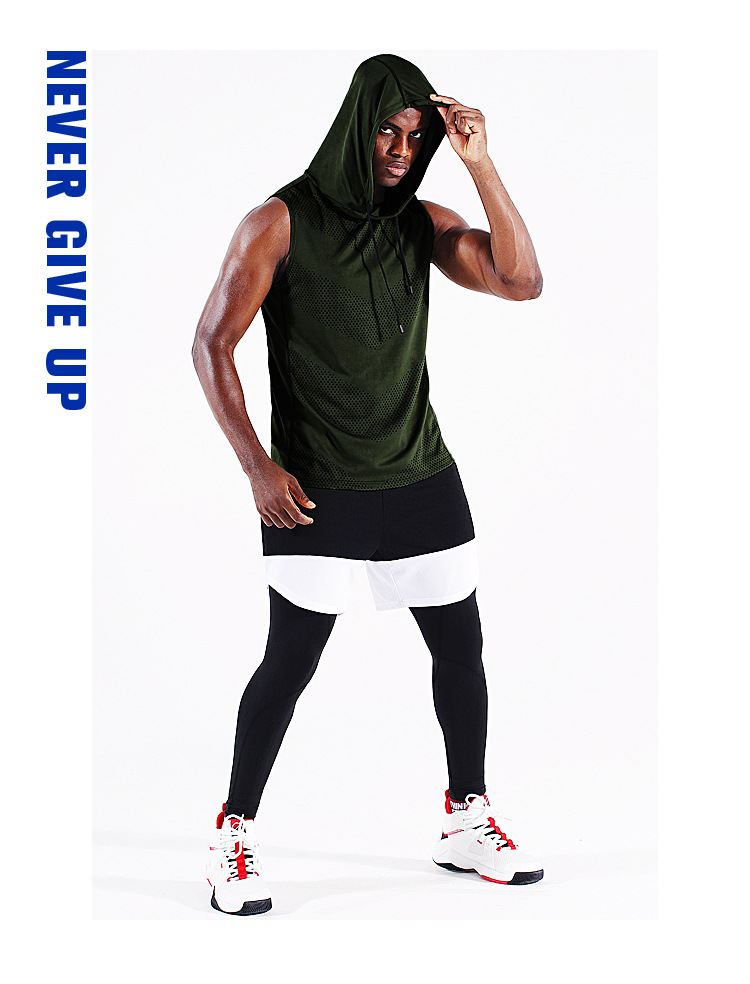 Men hooded tank top gym loose t-shirt fashion fitness workout running quick-dry sleeveless vest