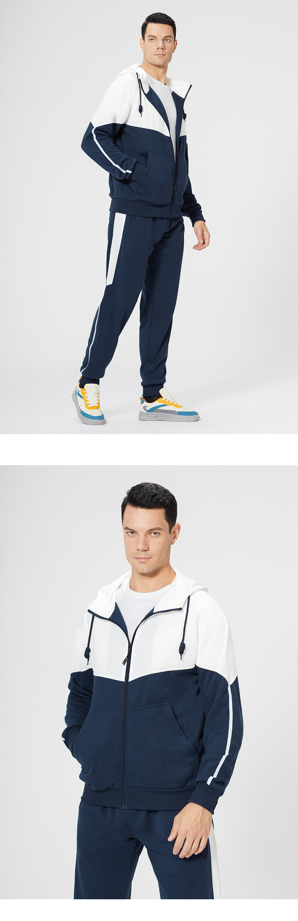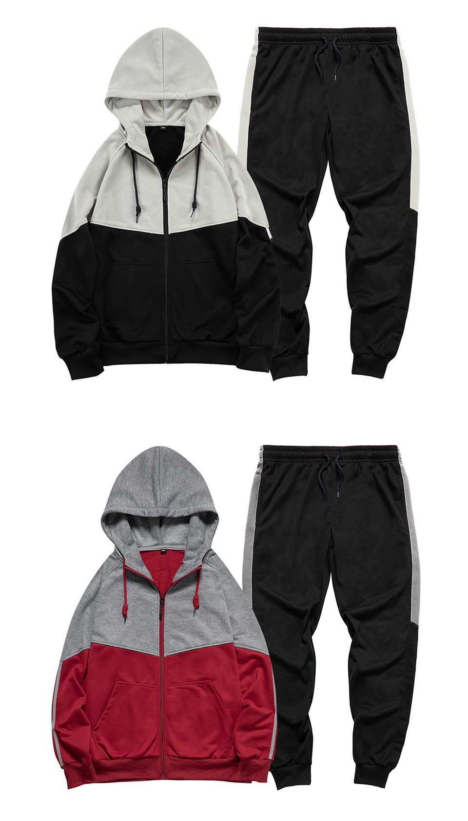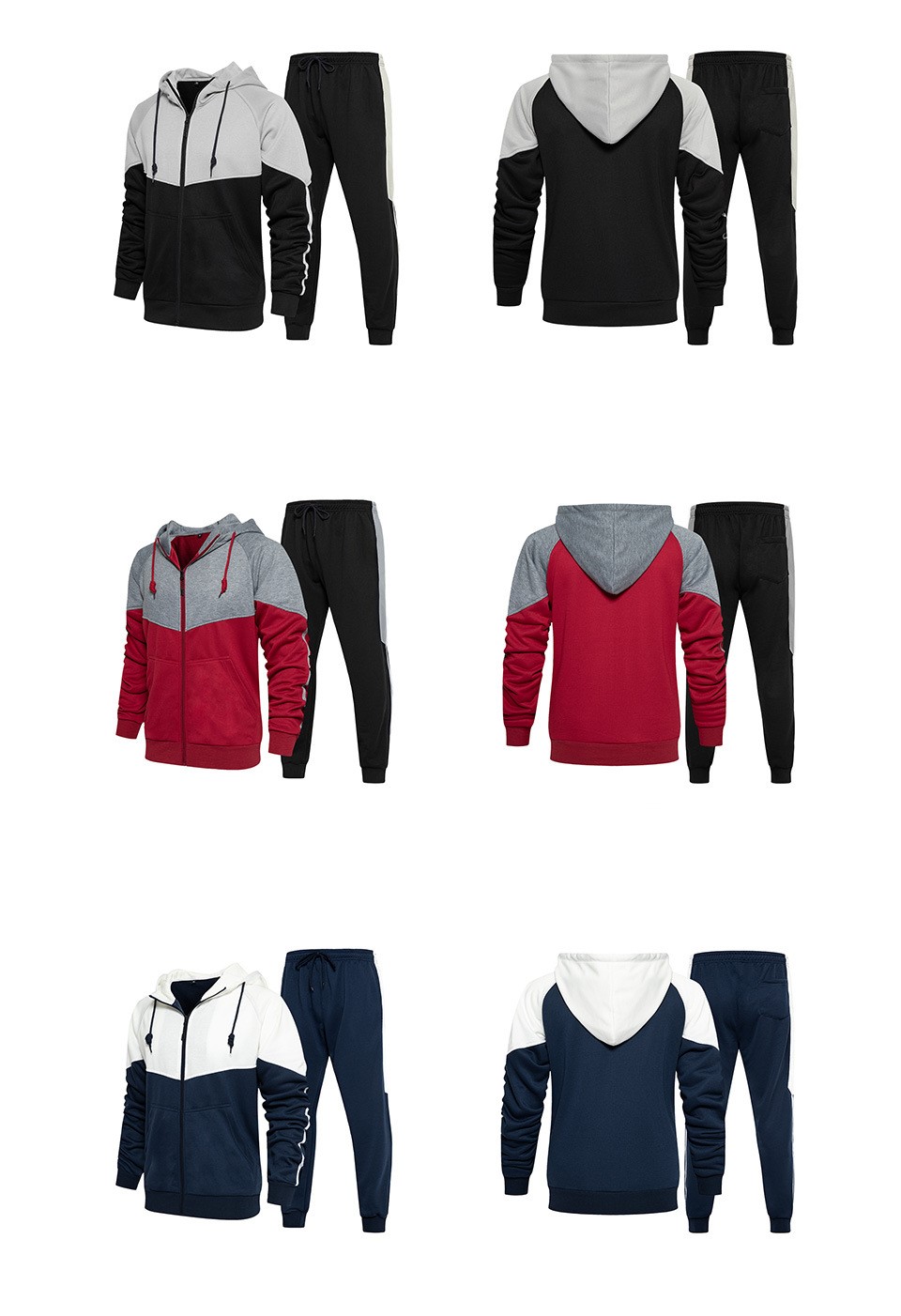 Men long sleeve tracksuits colorblock zip hoodies set running jogger pants two piece sweatsuits