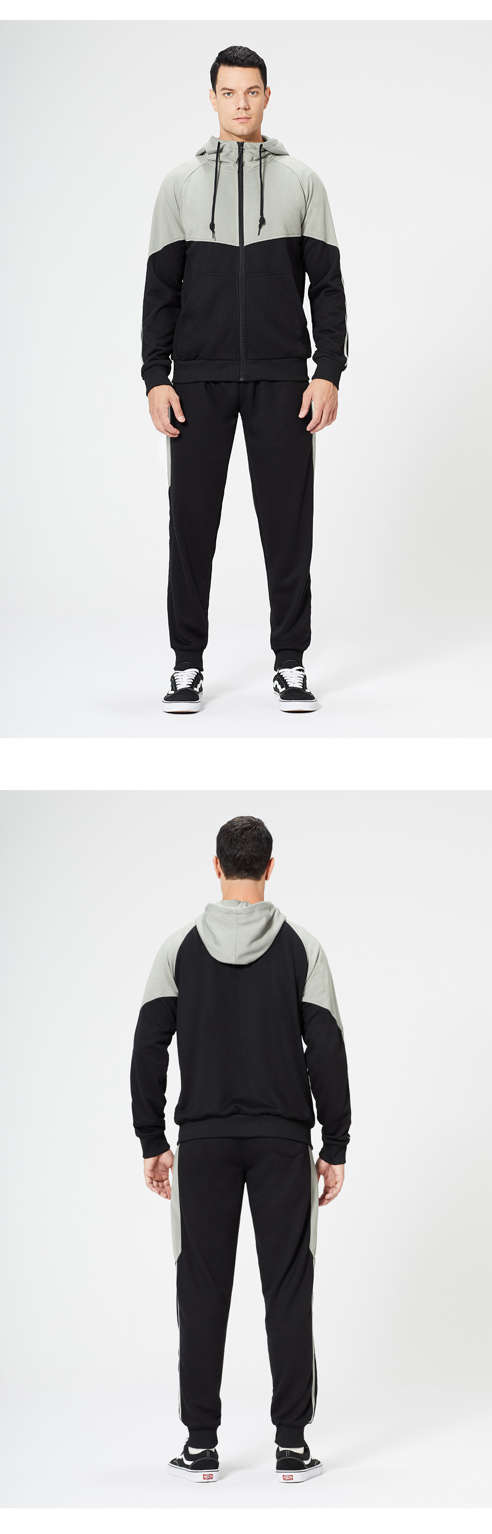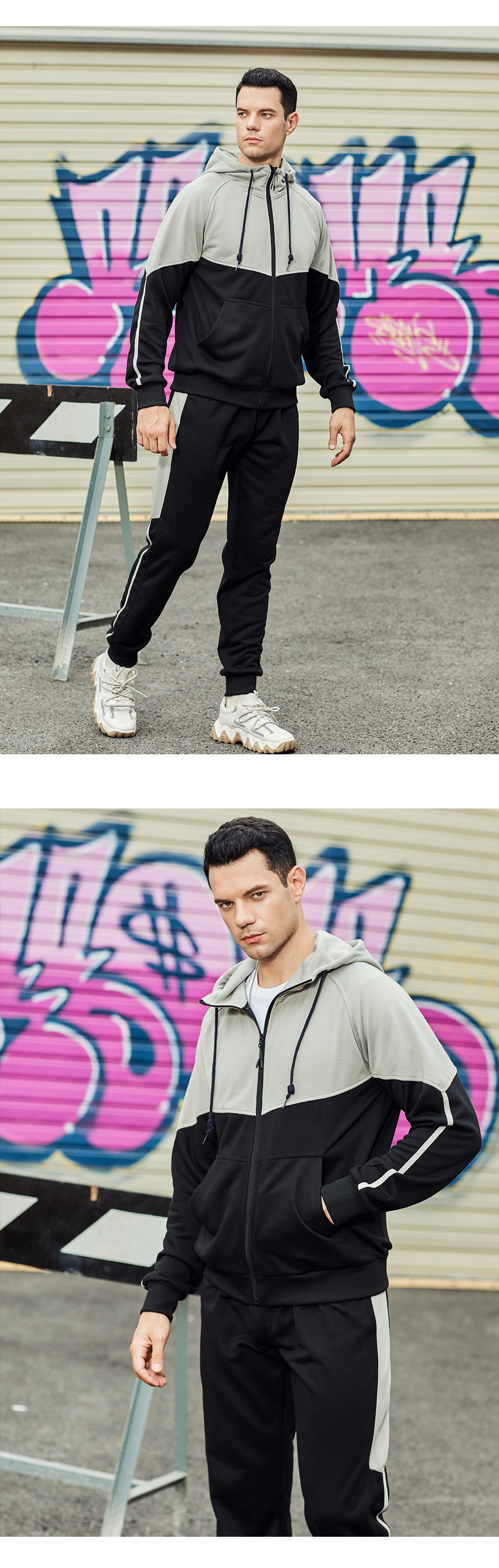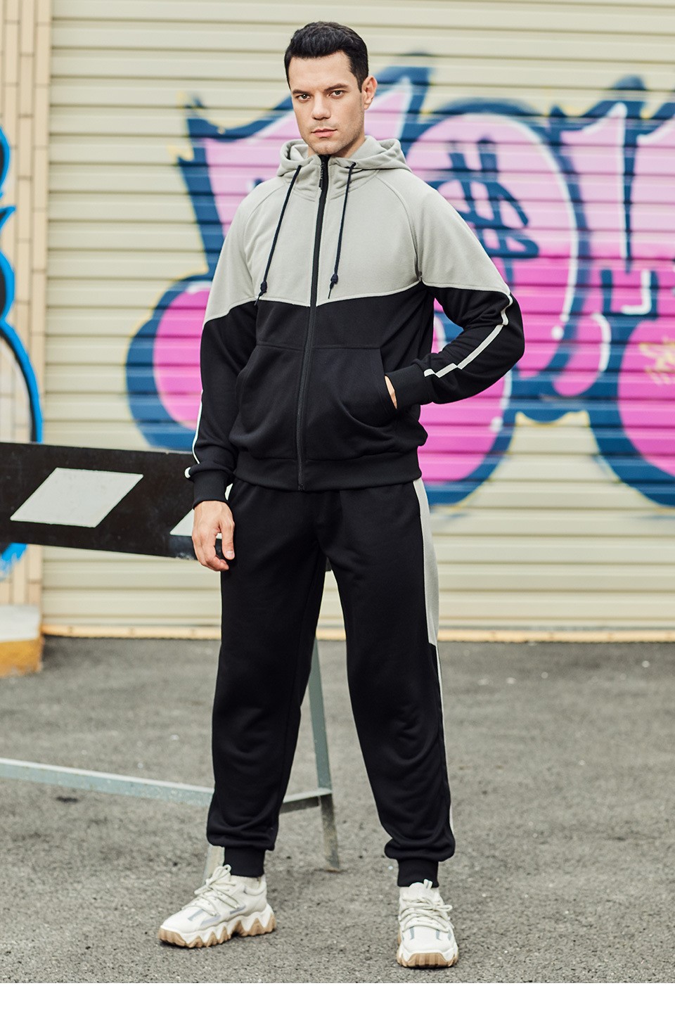 Men long sleeve tracksuits colorblock zip hoodies set running jogger pants two piece sweatsuits