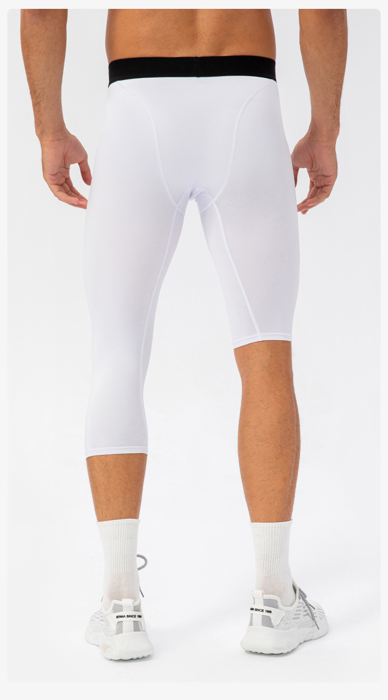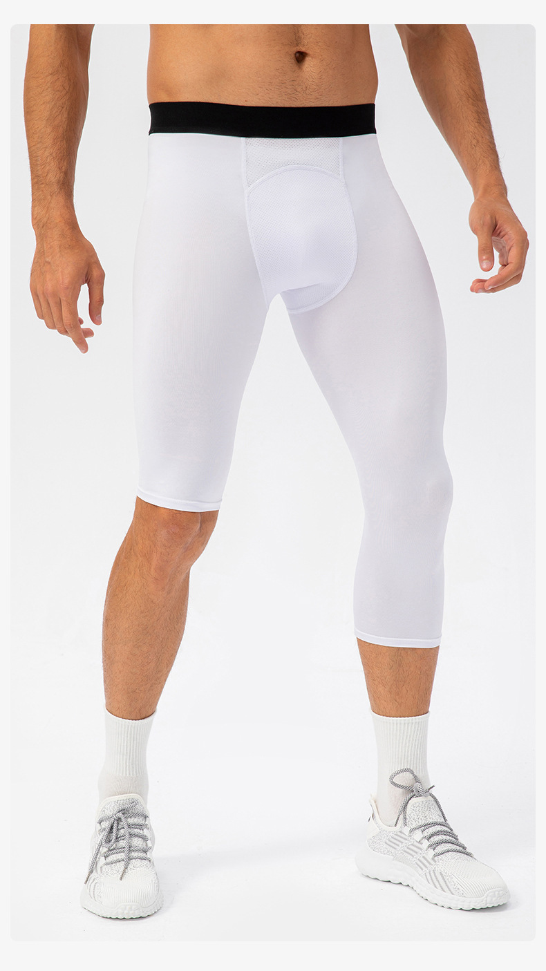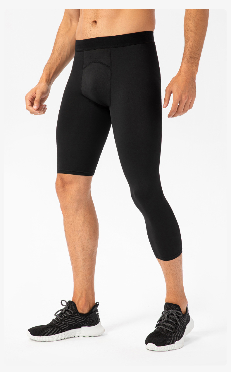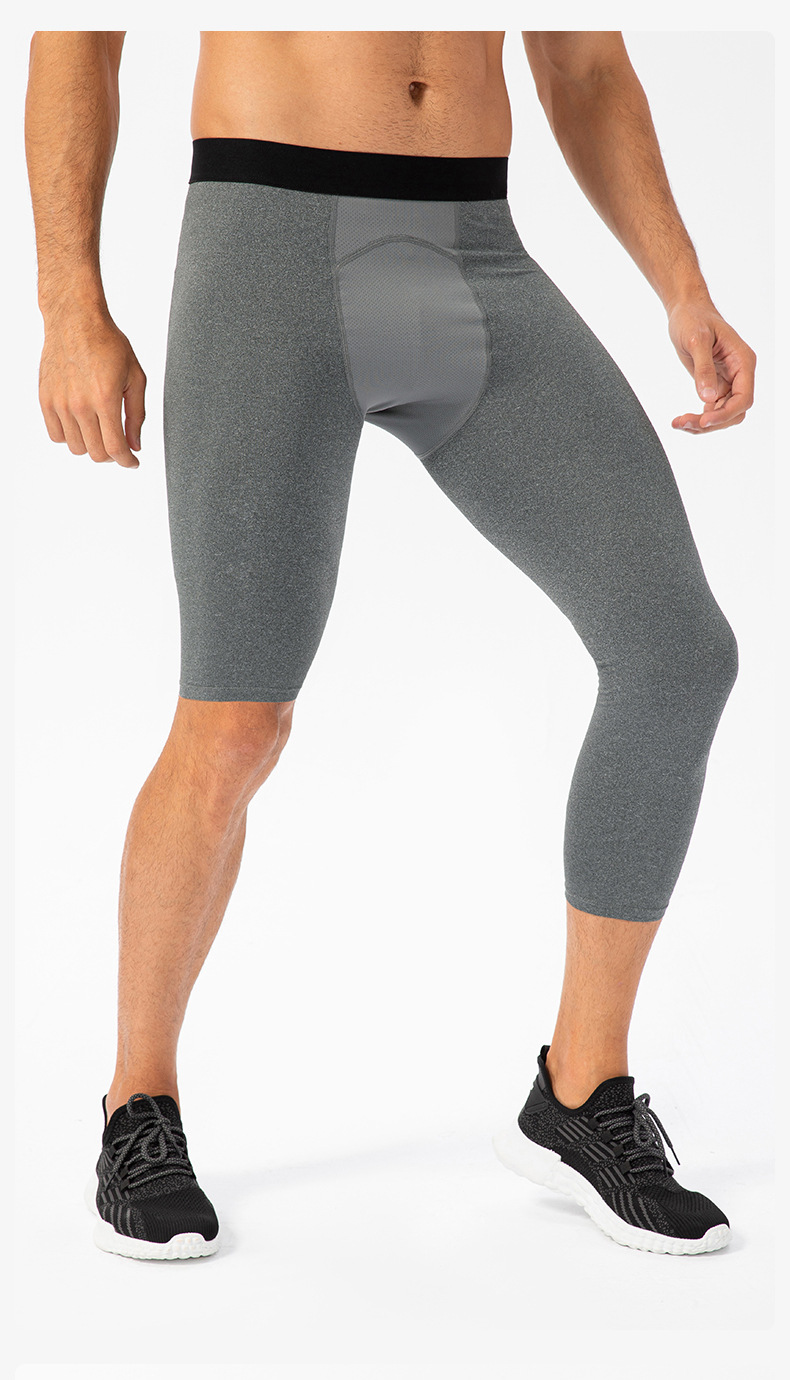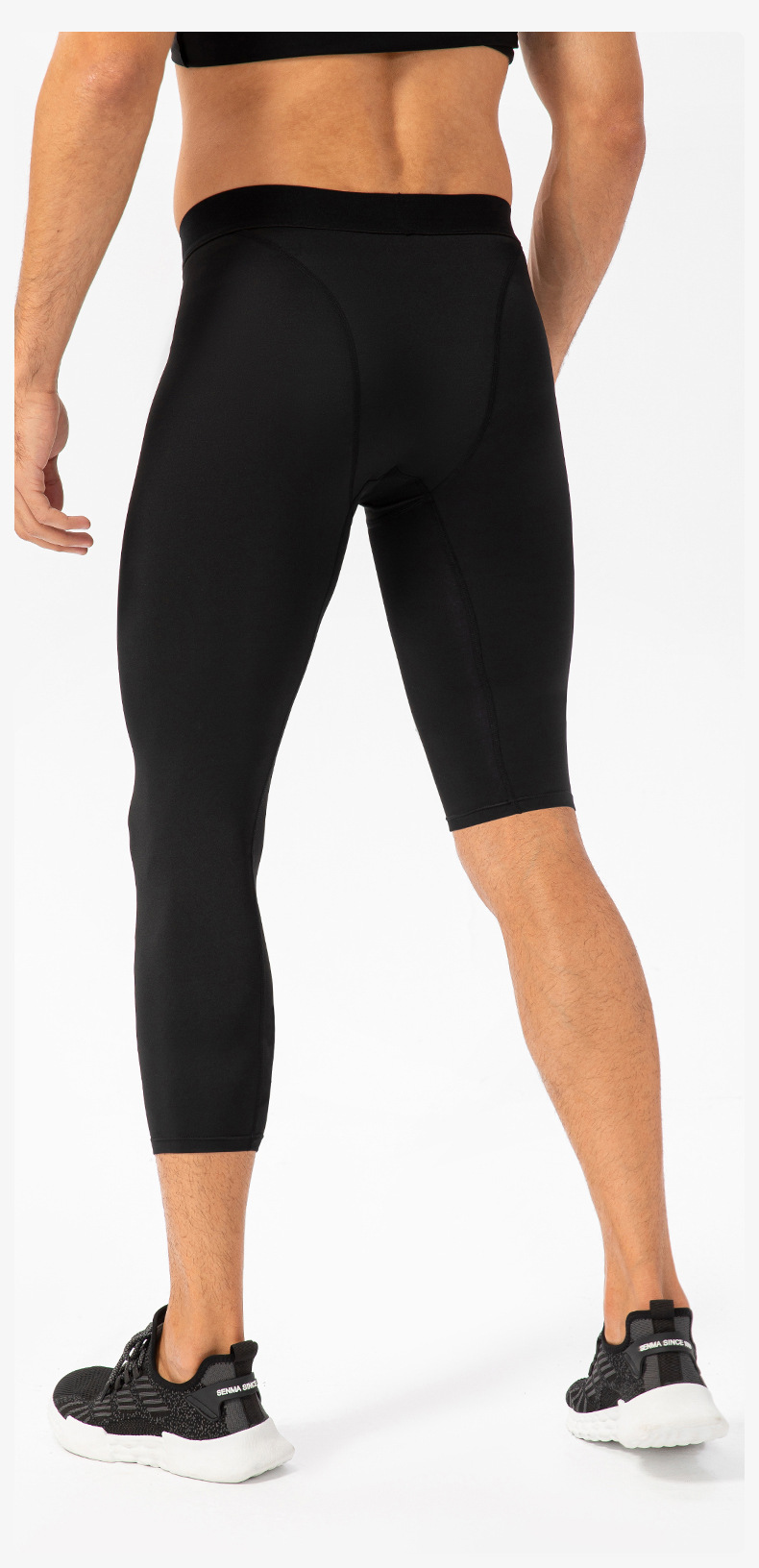 Men quick-dry sweatpants one leg fitness cropped stretch breathable training compression pants