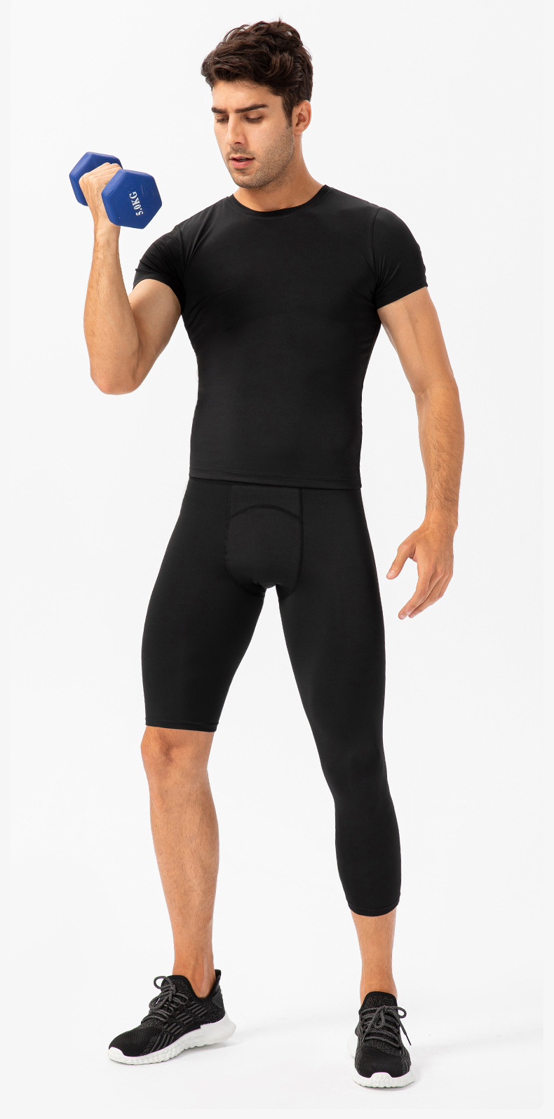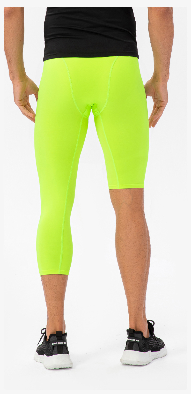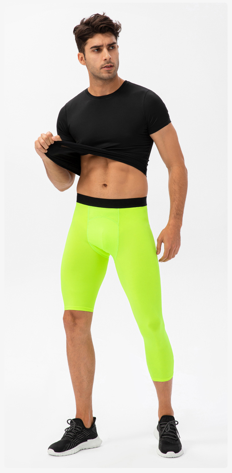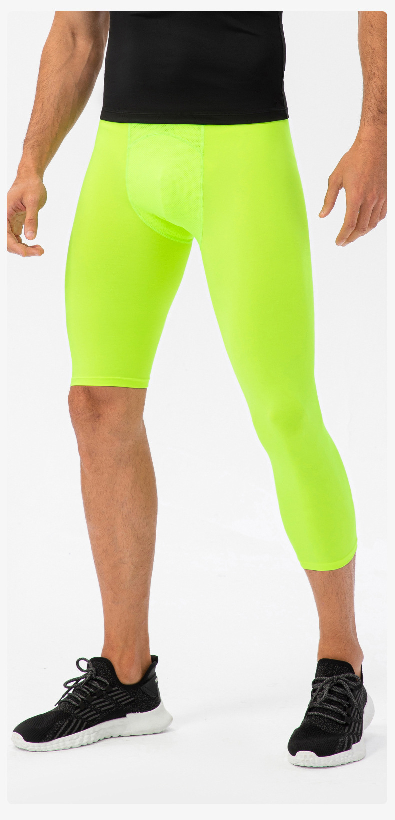 Men quick-dry sweatpants one leg fitness cropped stretch breathable training compression pants