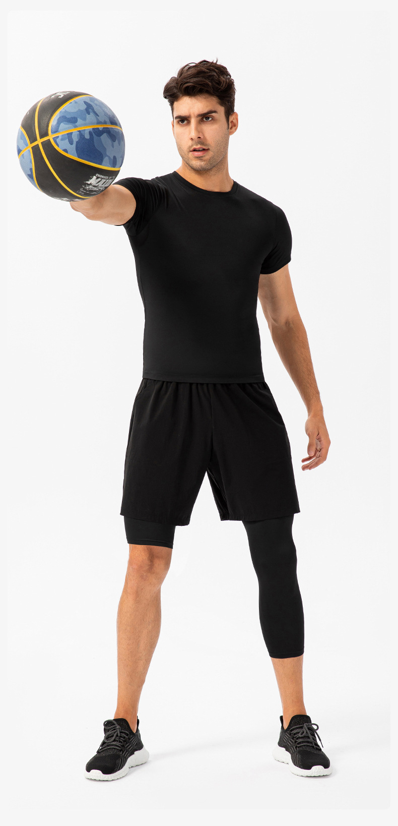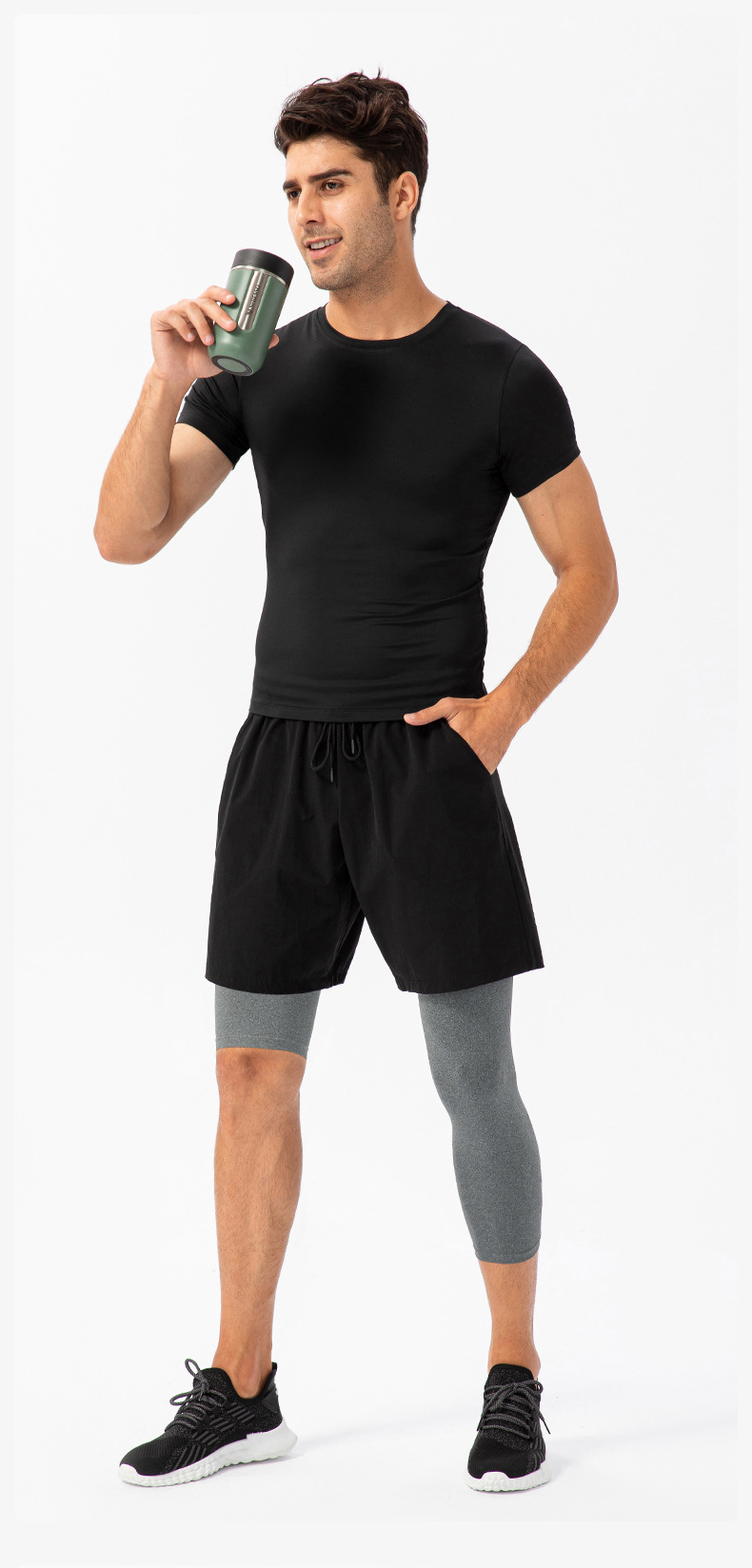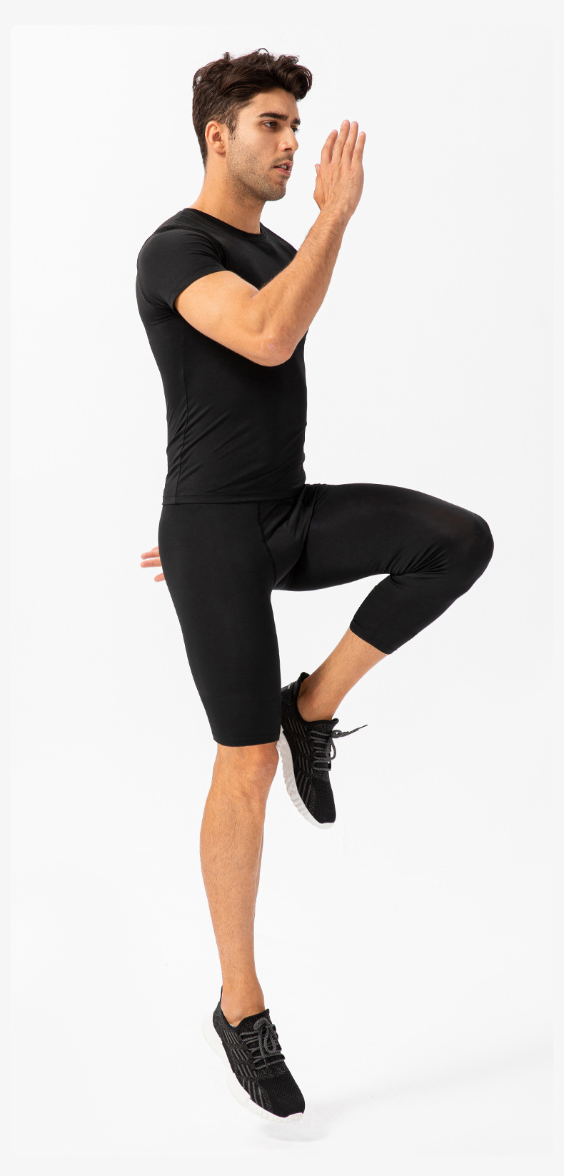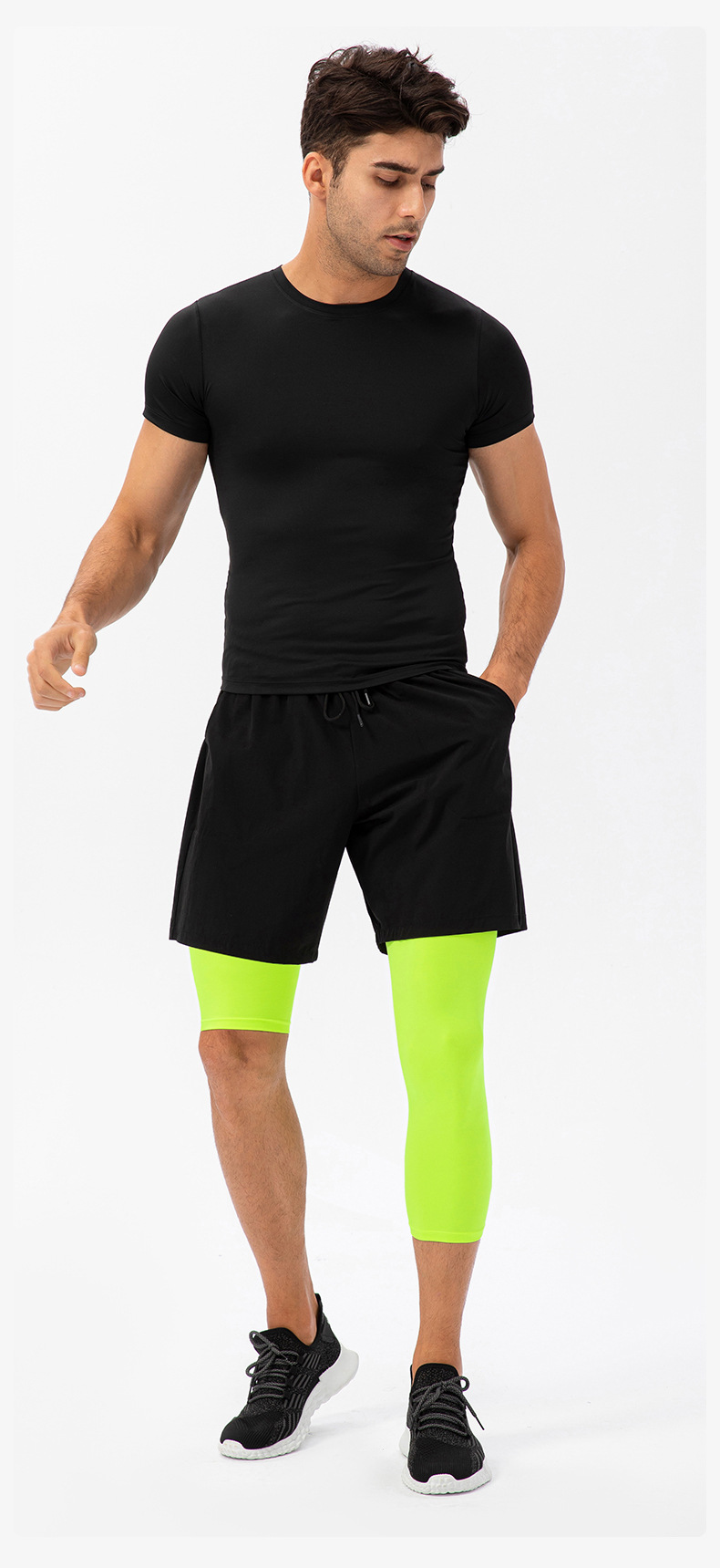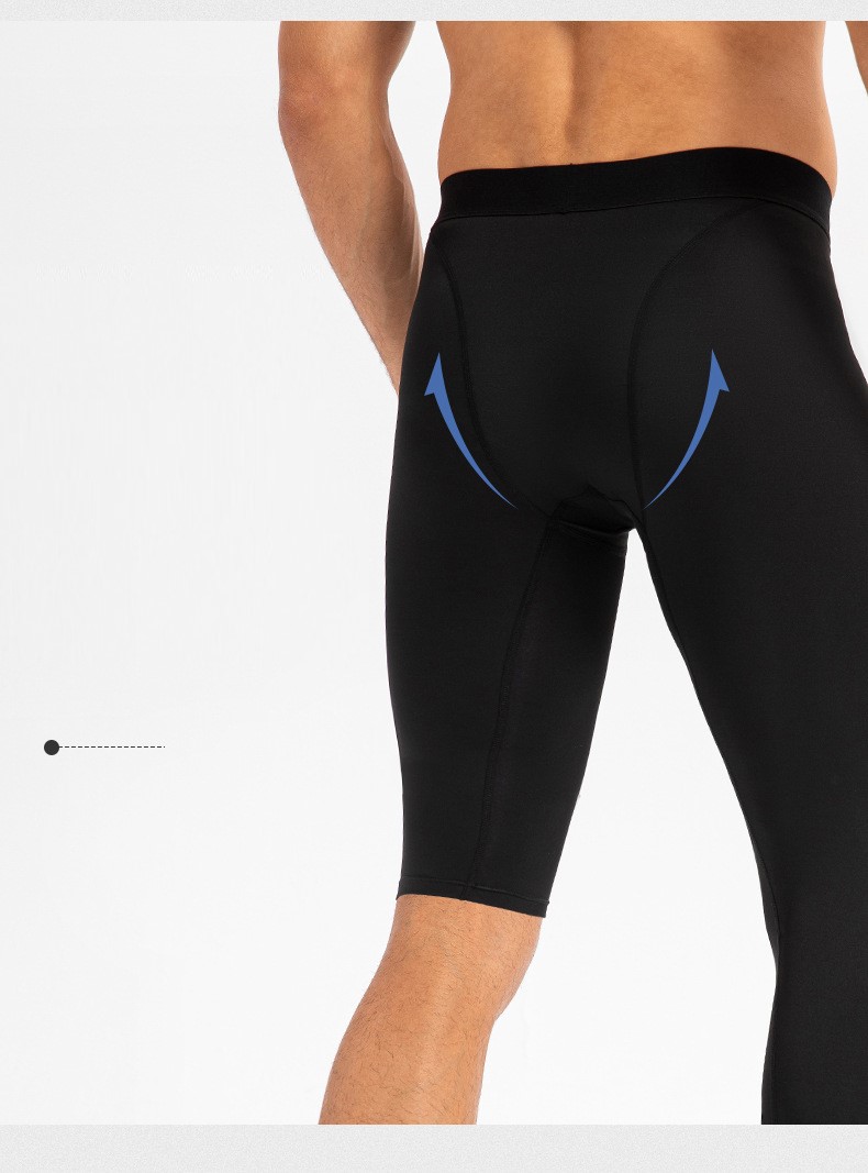 Men quick-dry sweatpants one leg fitness cropped stretch breathable training compression pants