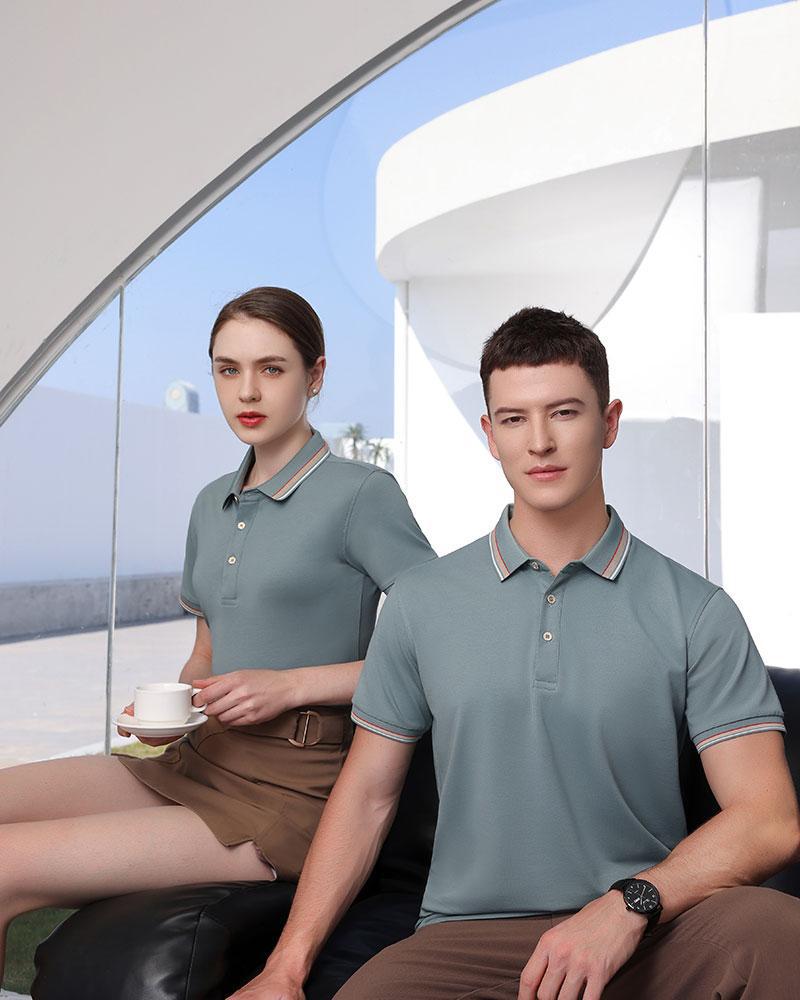 Men striped collar laple sports t-shirt summer active 3-button short sleeve cotton golf polo shirt